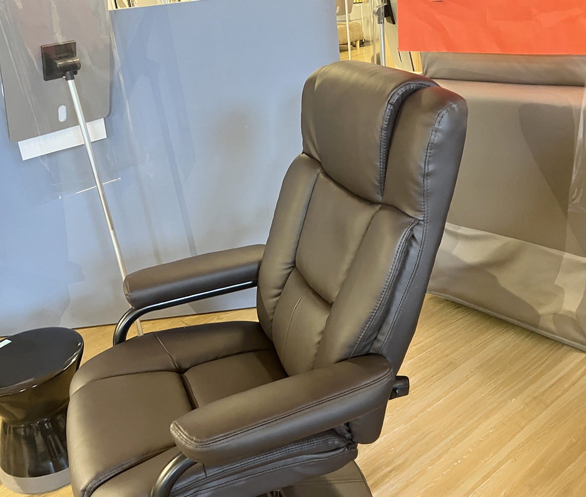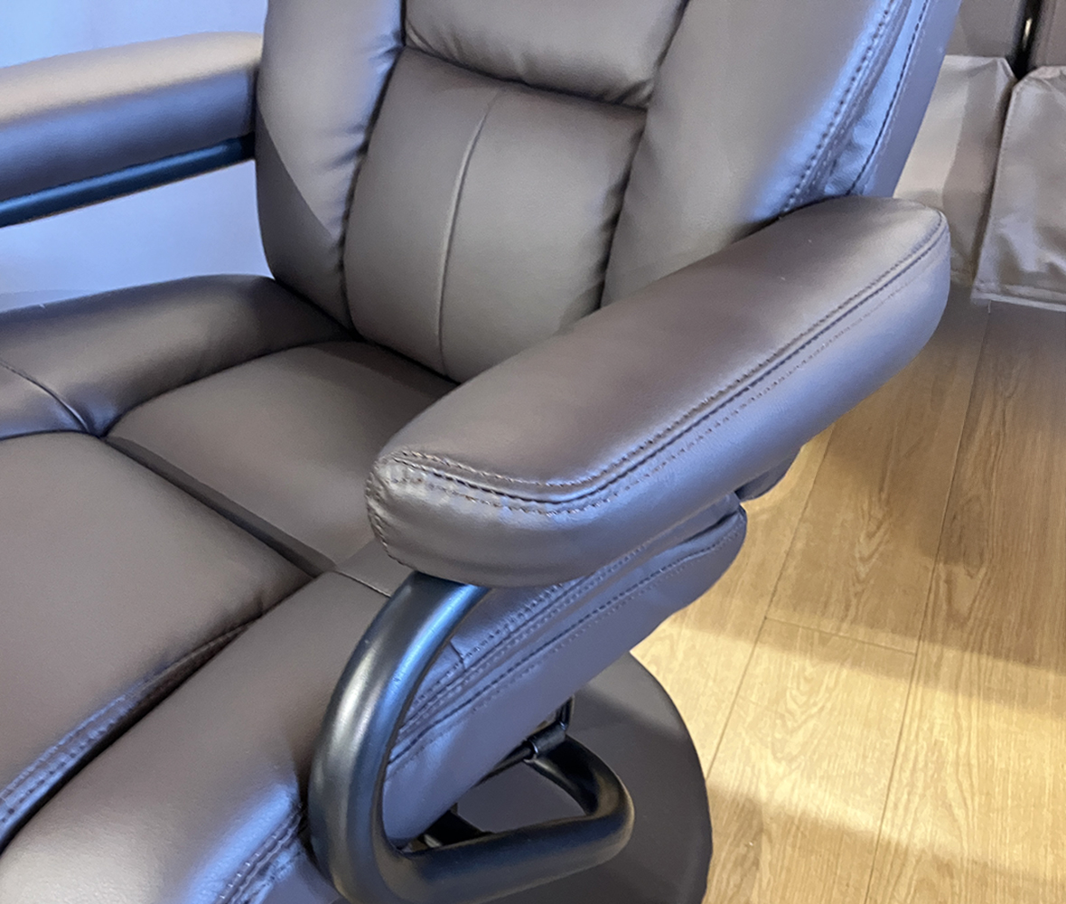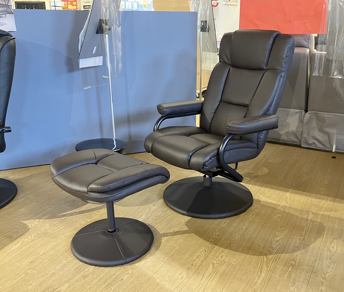 日常のくつろぎ時間をより上質にしてくれる◎オットマン付き #パーソナルチェア。脚を伸ばしてリラックスできるから、読書や映画鑑賞、ちょっとしたお昼寝にもピッタリ!素材には合成皮革を使用していて、汚れや水滴もサッと拭き取れてお手入れ簡単!