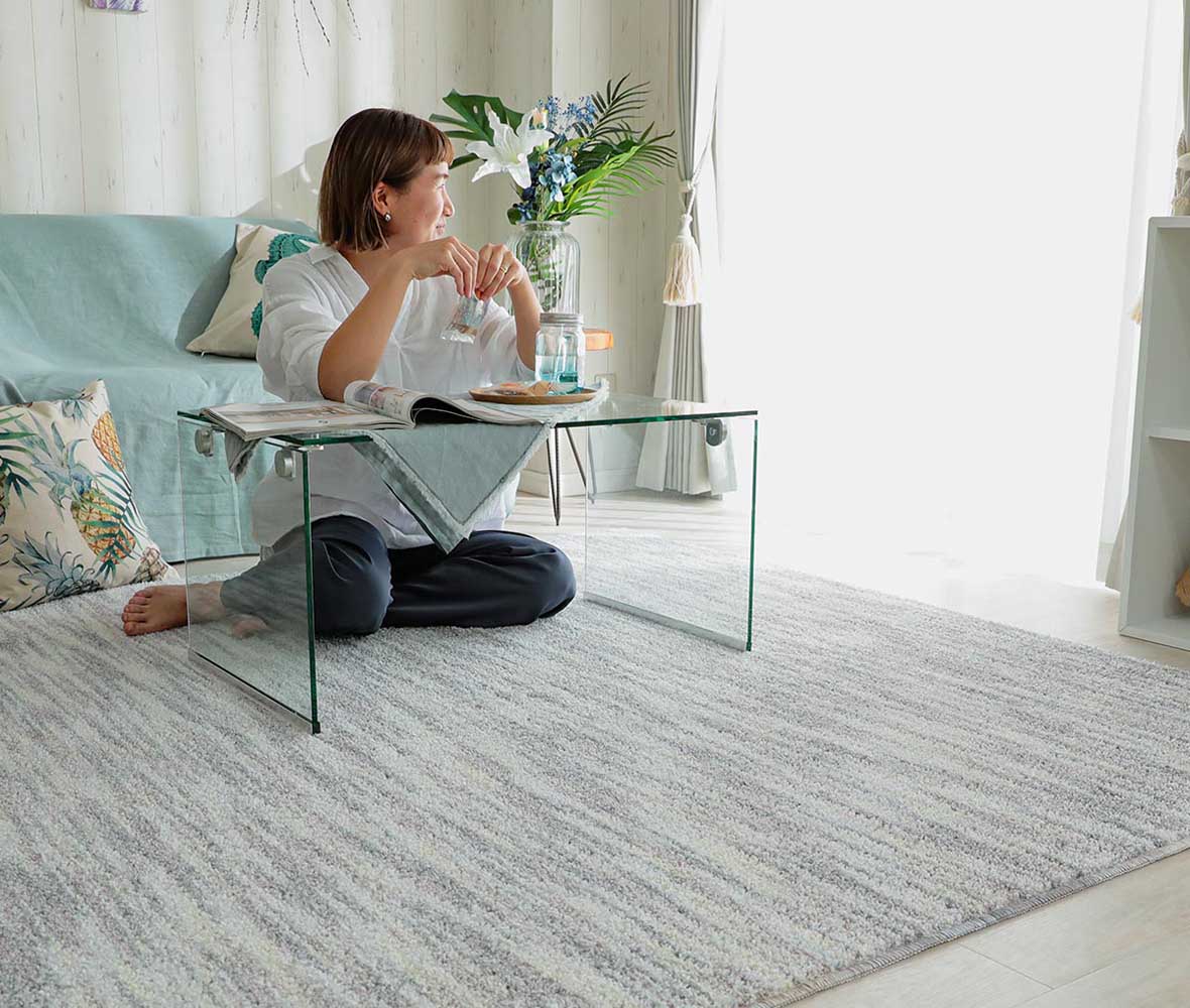 ミックスカラーがオシャレ!機能盛沢山のラグ!日本製で、消臭・抗菌・防臭・防ダニなど機能付き!ホットカーペットや床暖房対応◎さらりとして肌触りが良く、接触冷感機能も!手洗い可能で清潔に保てます。裏面に滑り止め付き!