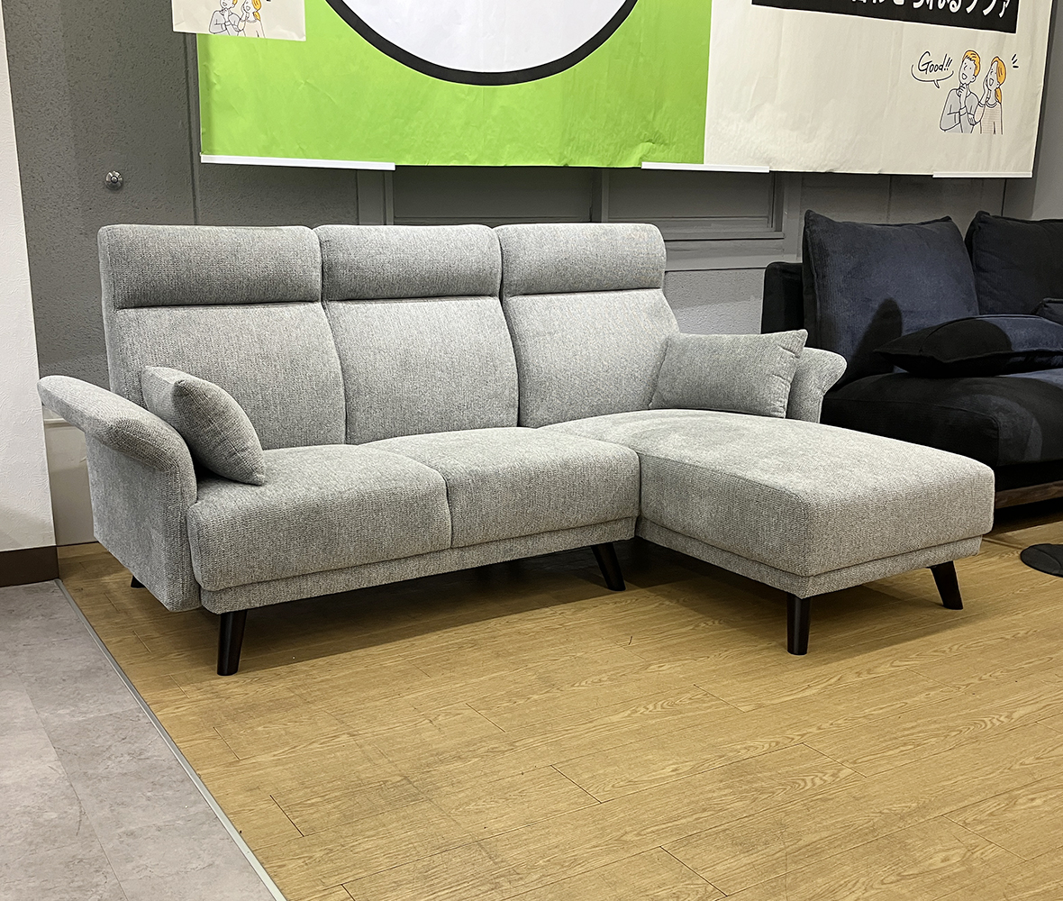 うっかり飲み物をこぼしてもサッと拭くだけでOK!撥水機能付き #カウチソファ。にウェーブした高めの背もたれが、頭までしっかり支えてくれ、ゆったりリラックス♪座面は、やわらかすぎず硬すぎない、ちょうどいい座り心地で◎