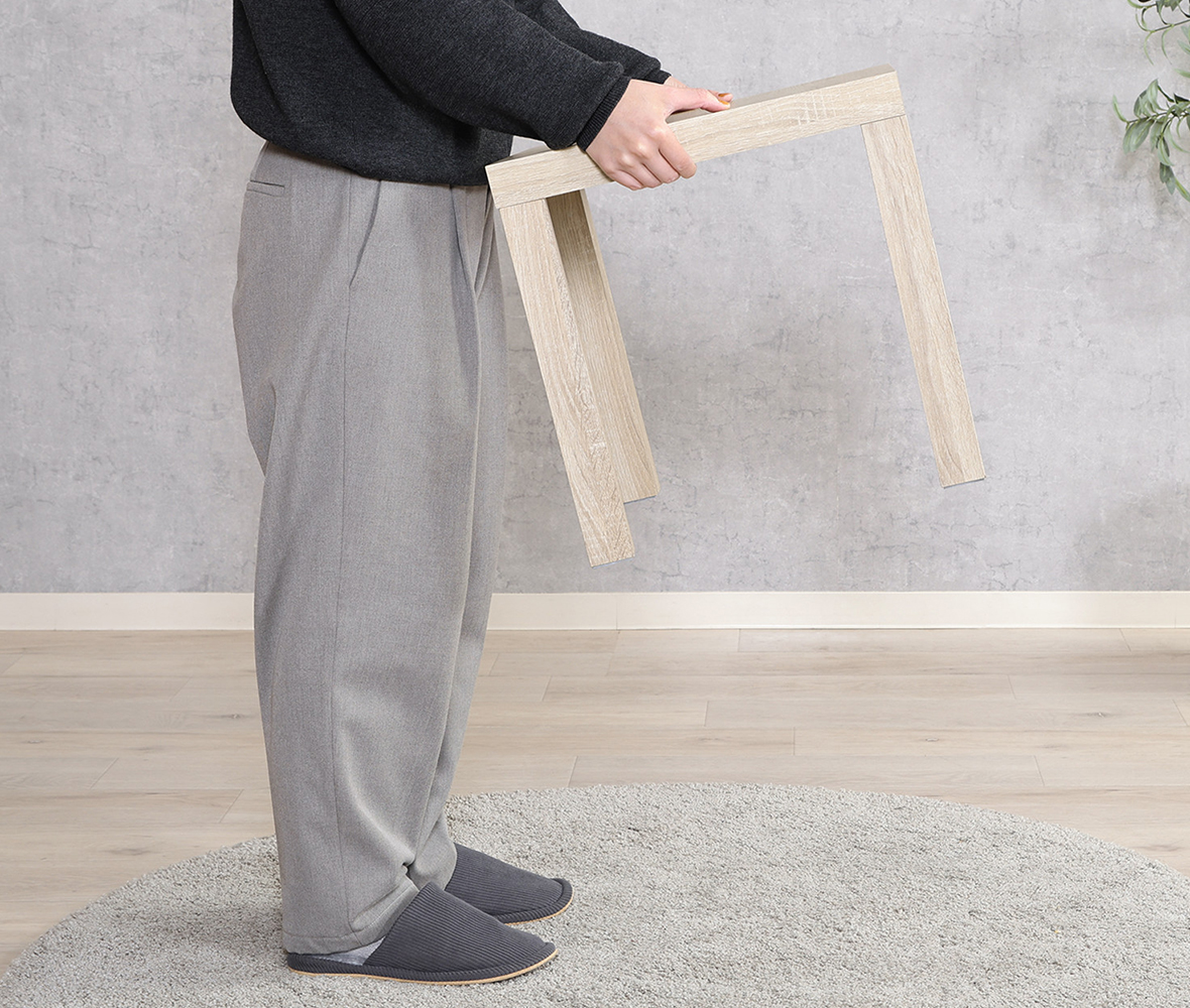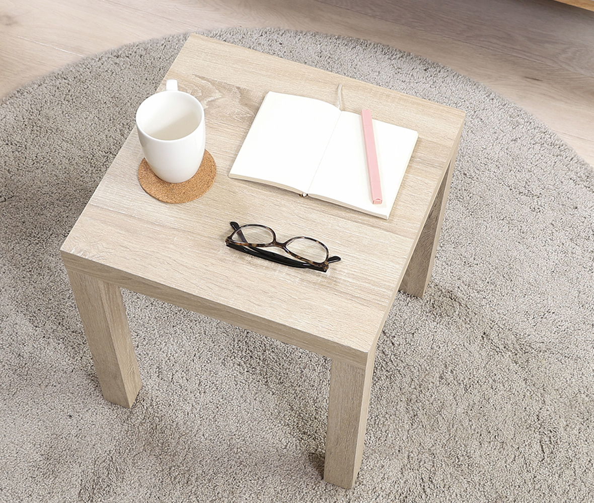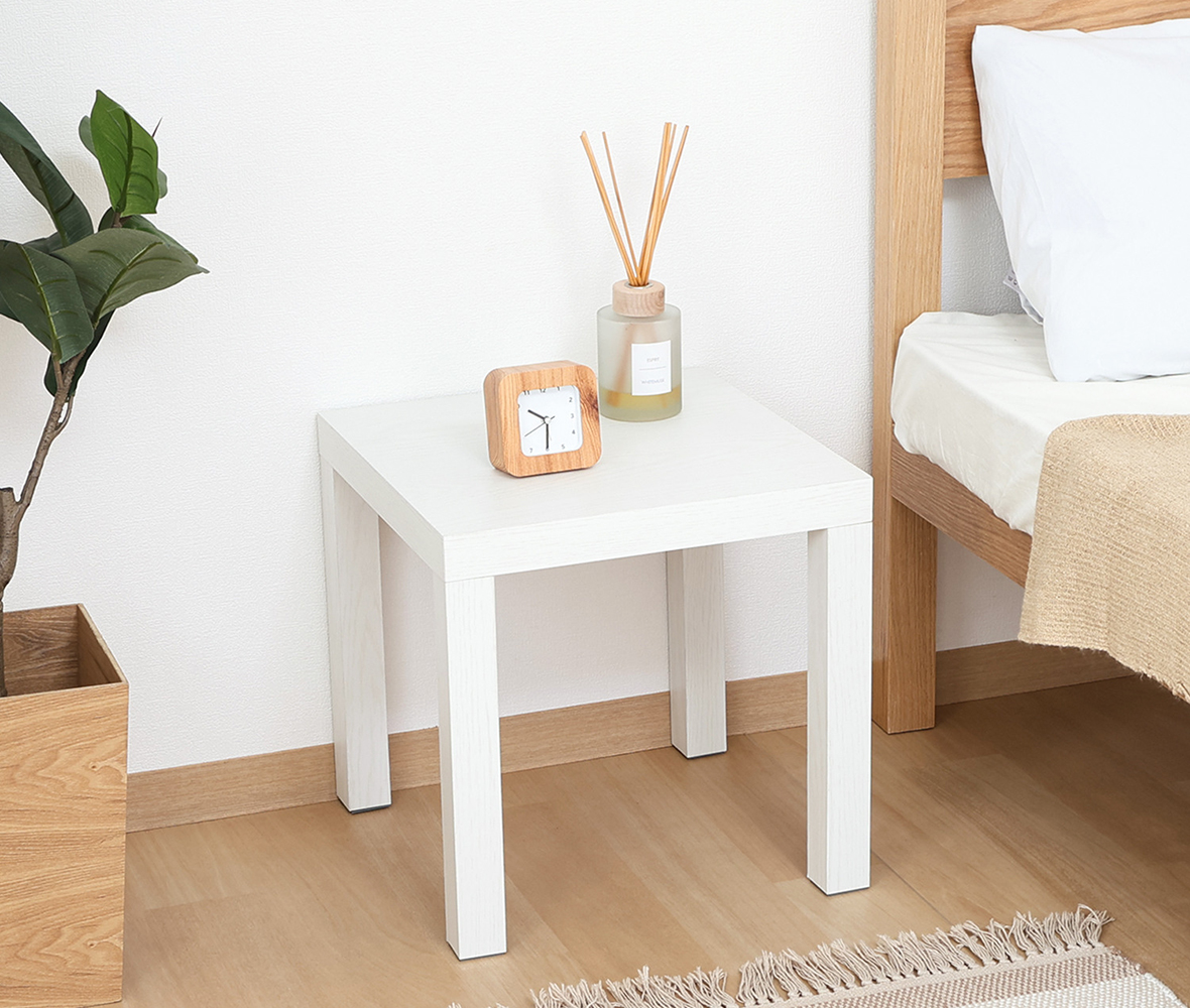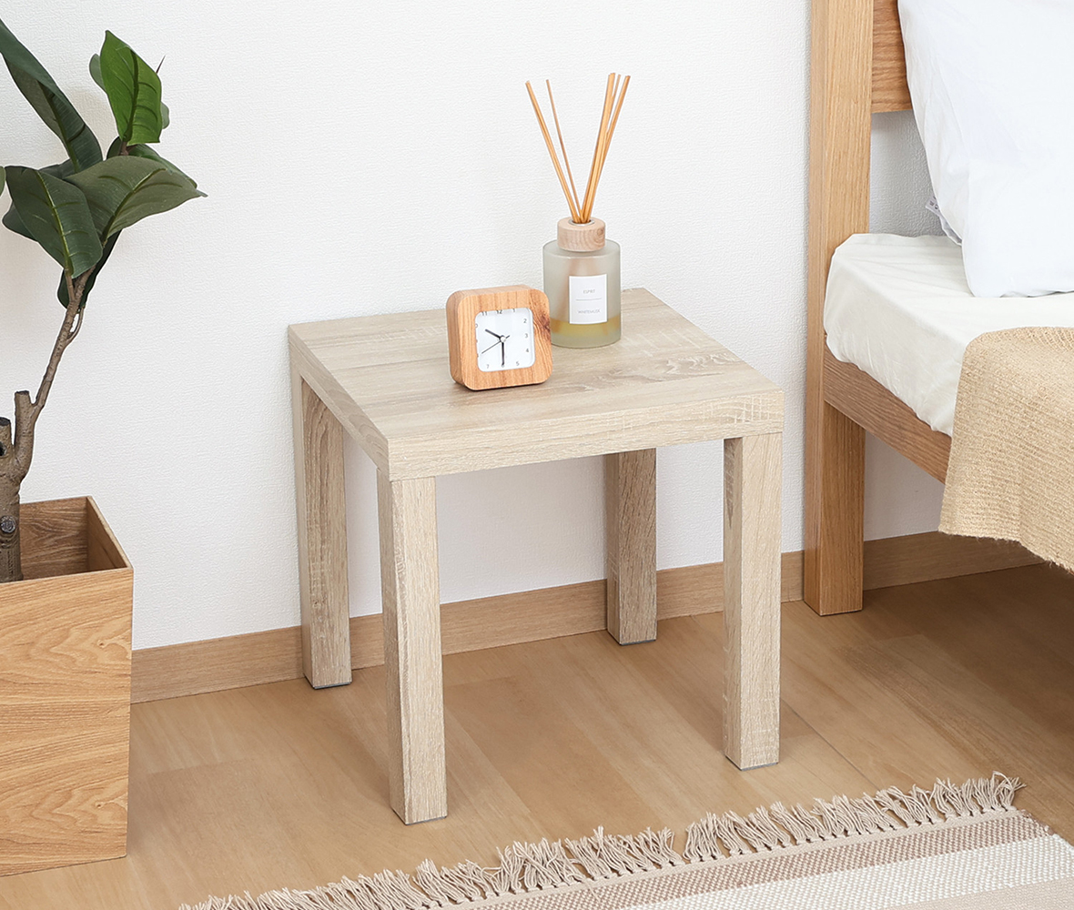 脚部を回して差し込むだけの簡単組立!木目デザインがお部屋に優しく馴染む、省スペースで便利な #小物テーブル!一辺40cmのコンパクトサイズで、パソコン作業や一人での食事にもぴったり◎ 軽量なので持ち運びもラクラク♪ベッド横のサイドテーブルやお子様用テーブルなど、様々なシーンで大活躍します。