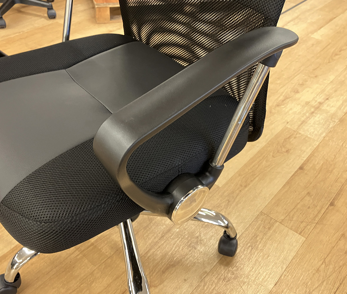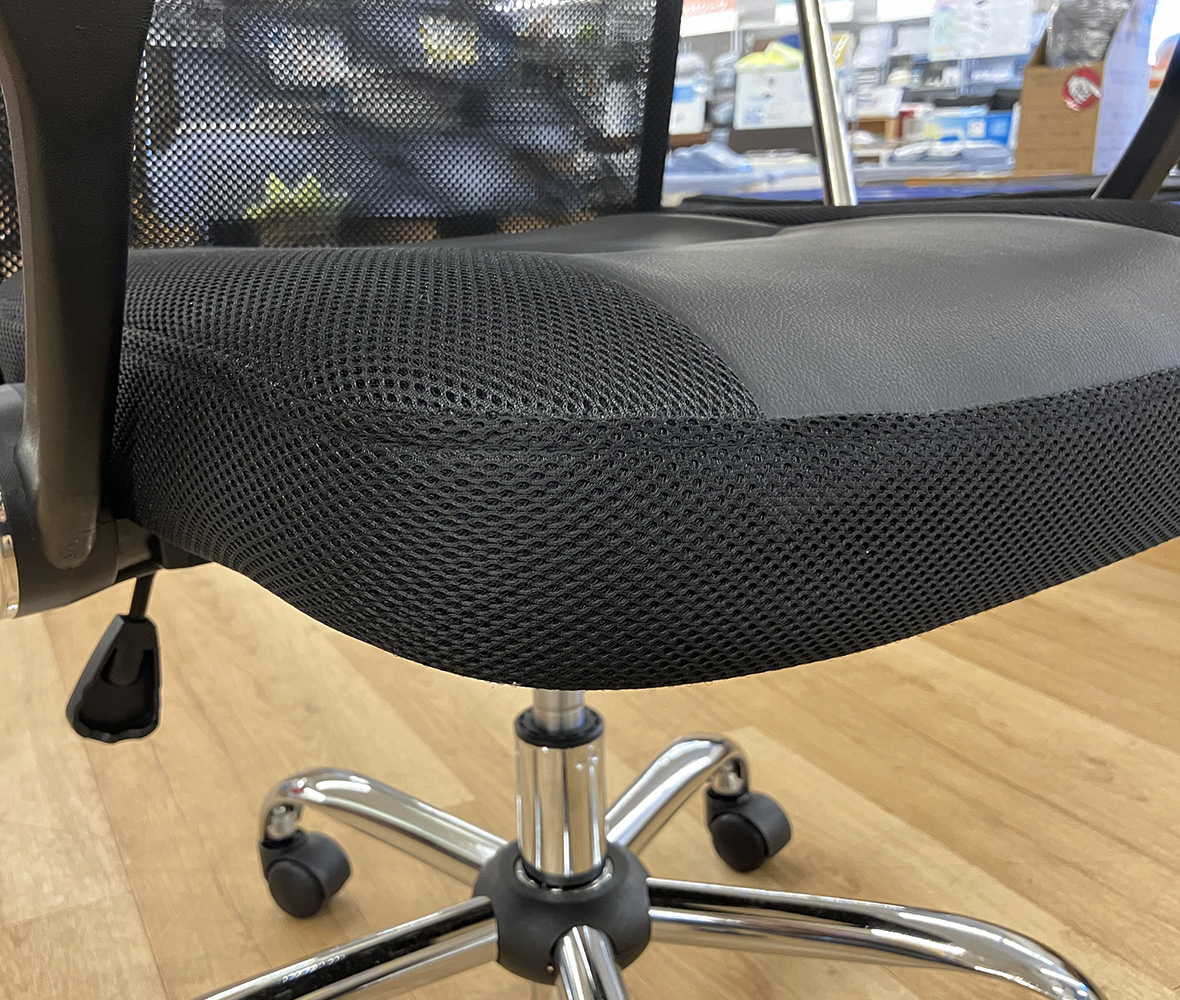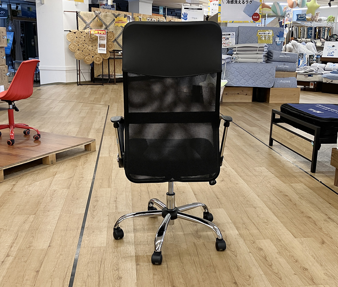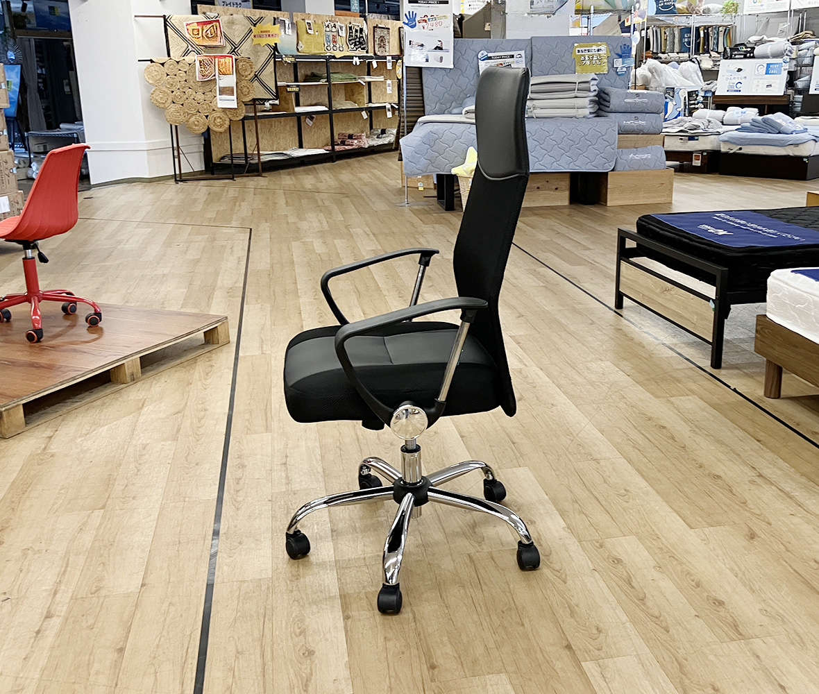 頭までしっかり支えるハイバック背もたれ!長時間座っても快適な座り心地の #オフィスチェア。肘置き付きだから、腕や肩への負担を軽減し、リラックスした姿勢をキープ!背面と座面には通気性抜群のメッシュ生地を採用し、ムレにくく◎