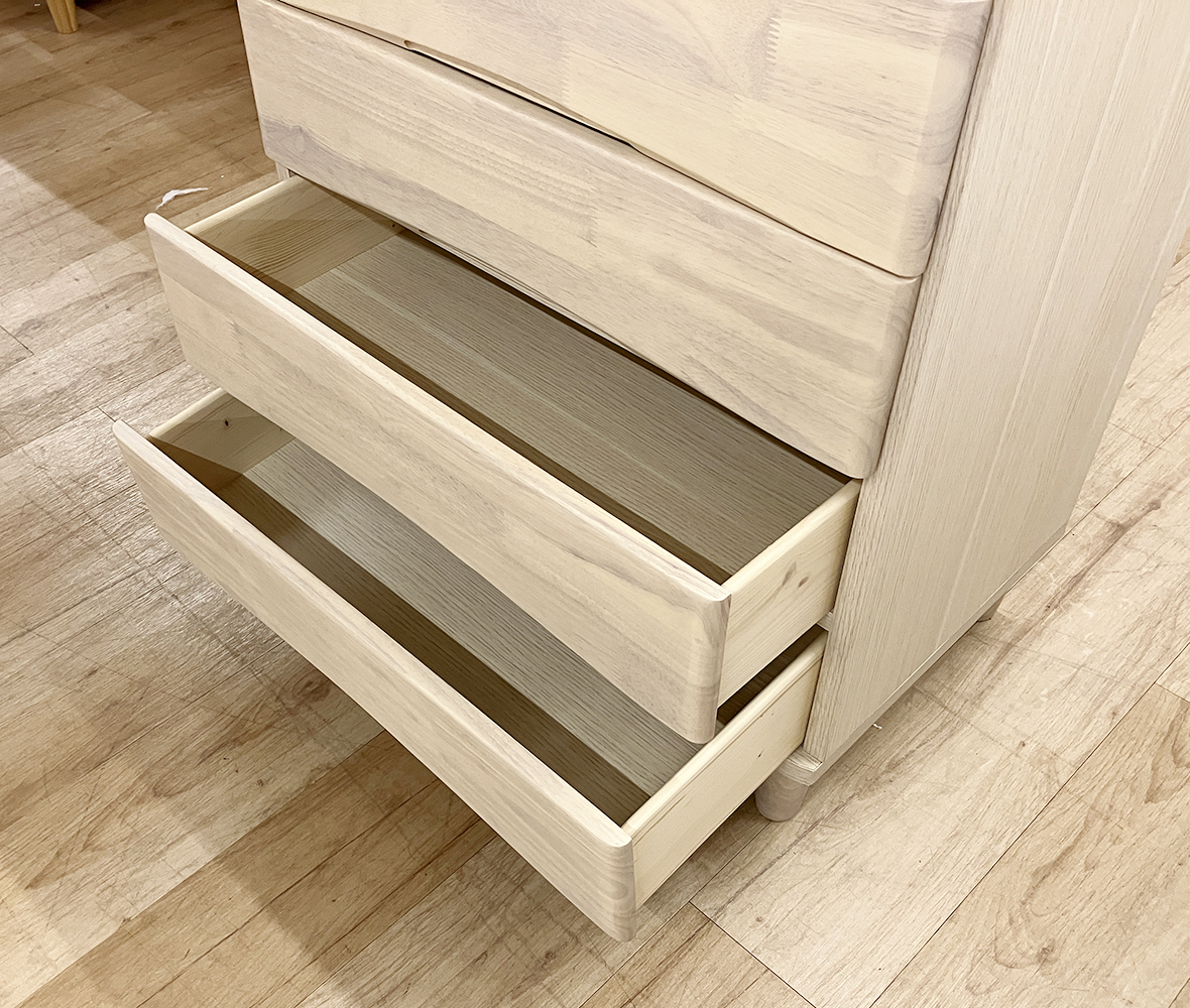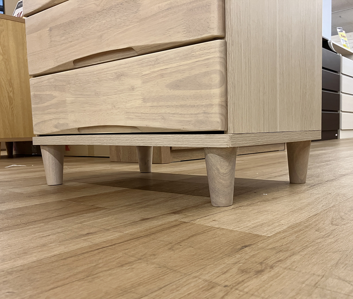 リビングや寝室の小物収納に最適な可愛らしい北欧スタイル#チェスト。引出しの前板は「天然木」で温かみのある風合に仕上がり、脚が付いてお掃除も楽にでき通気性も抜群です!60cm幅コンパクトサイズでも引出し5杯付き◎