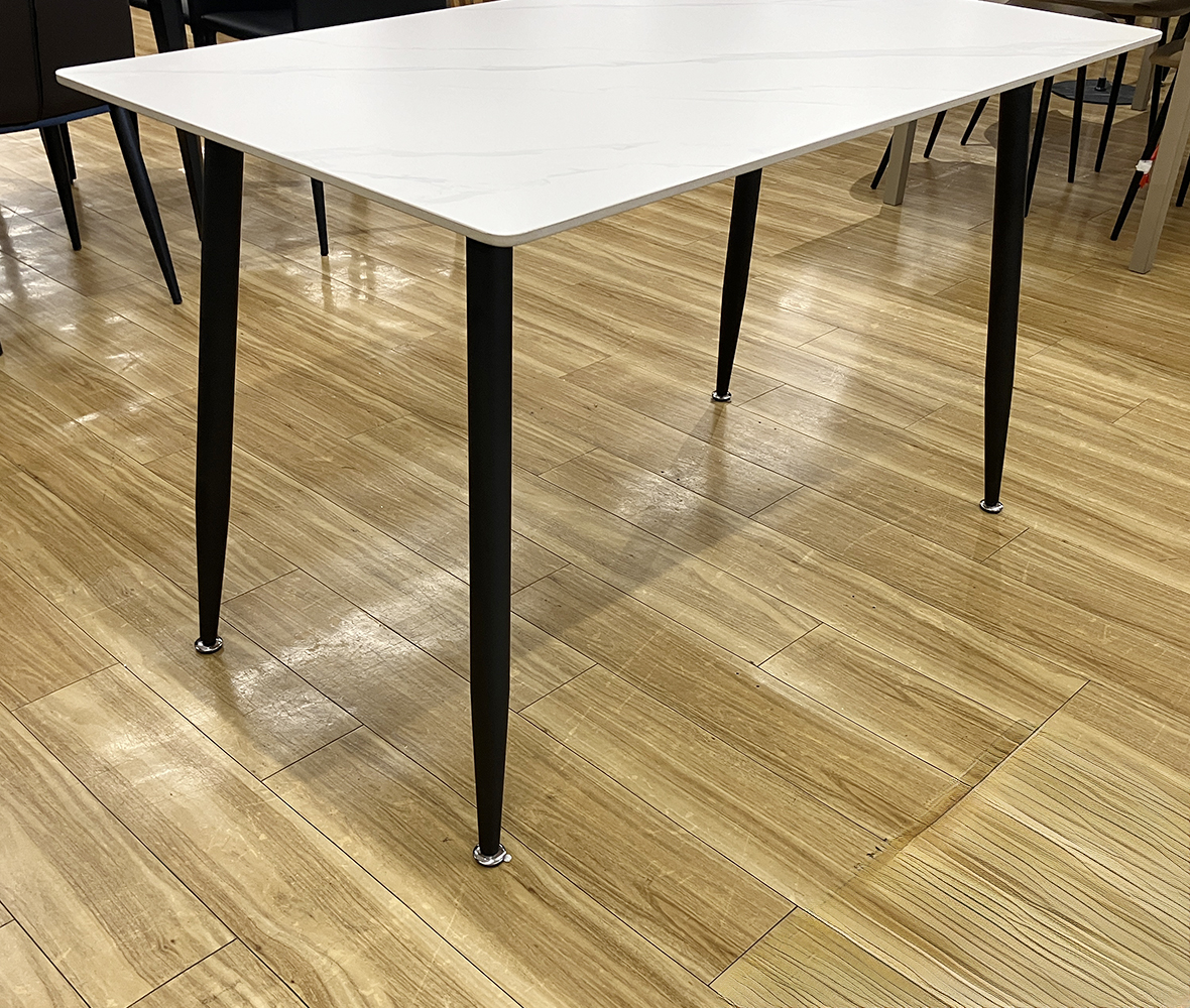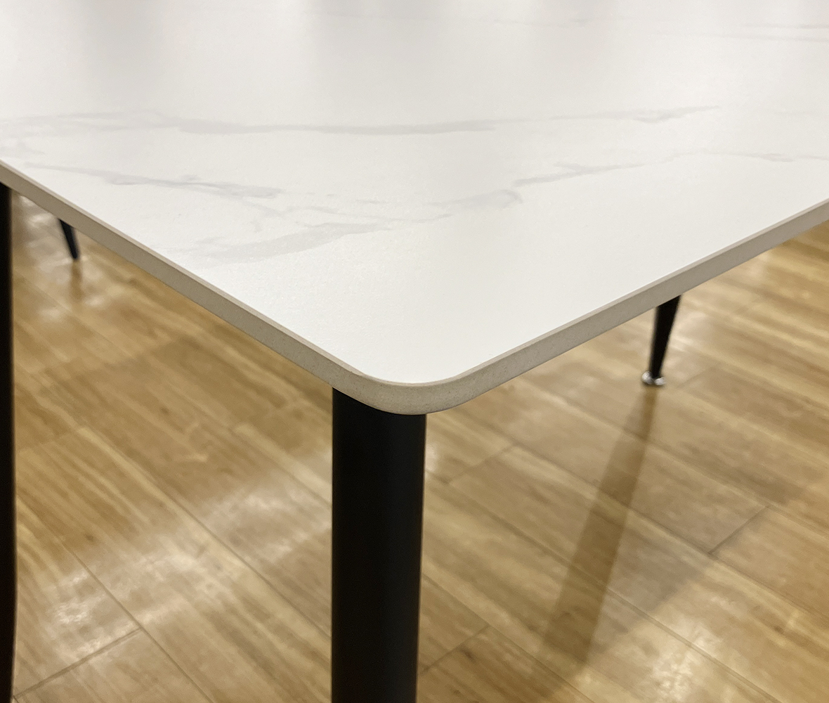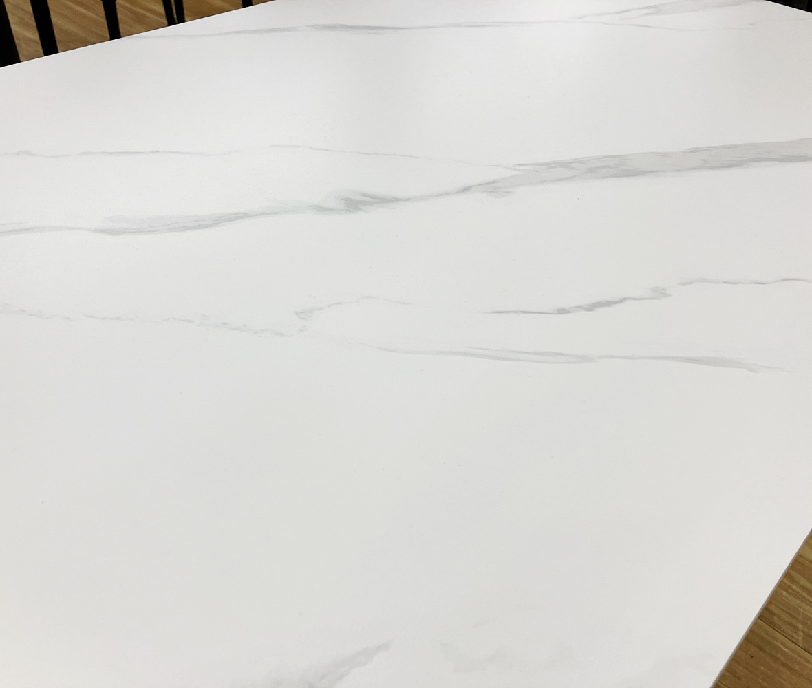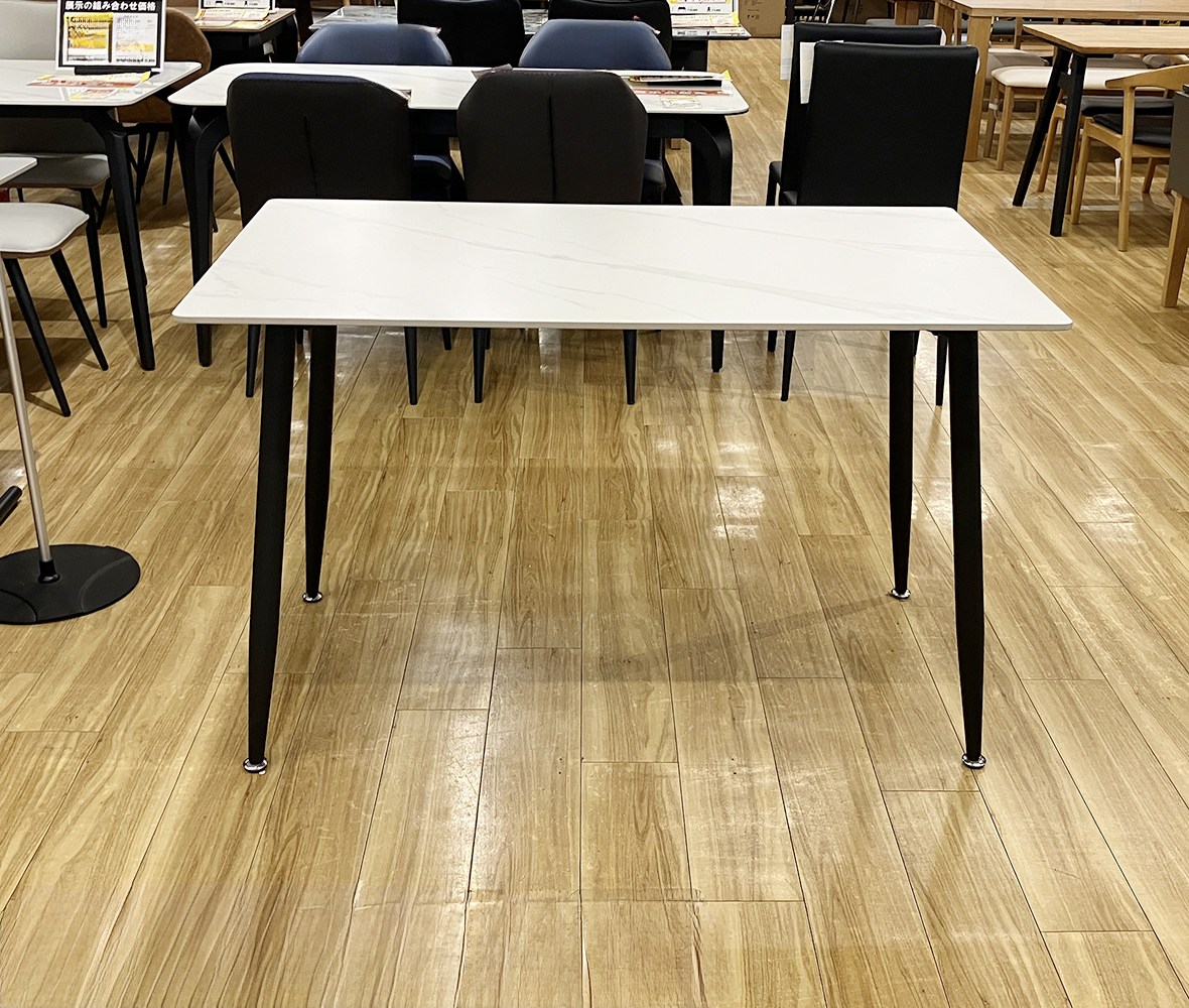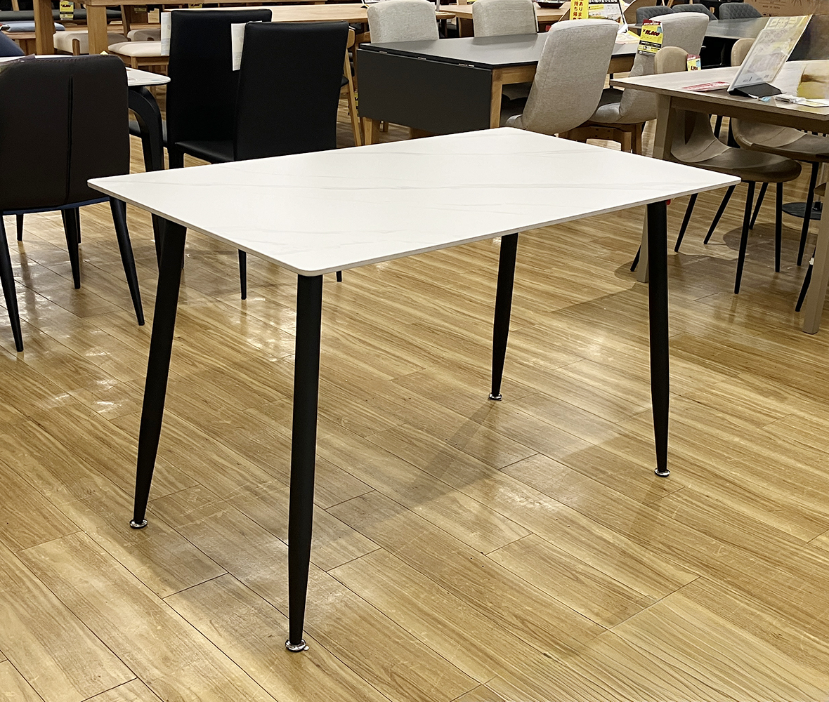 高温のポットやカップも安心◎熱やキズに強い #セラミック天板テーブル。ホワイト石目調の美しいデザインが、ダイニングやリビングを洗練された上質でモダンなお部屋を演出します。