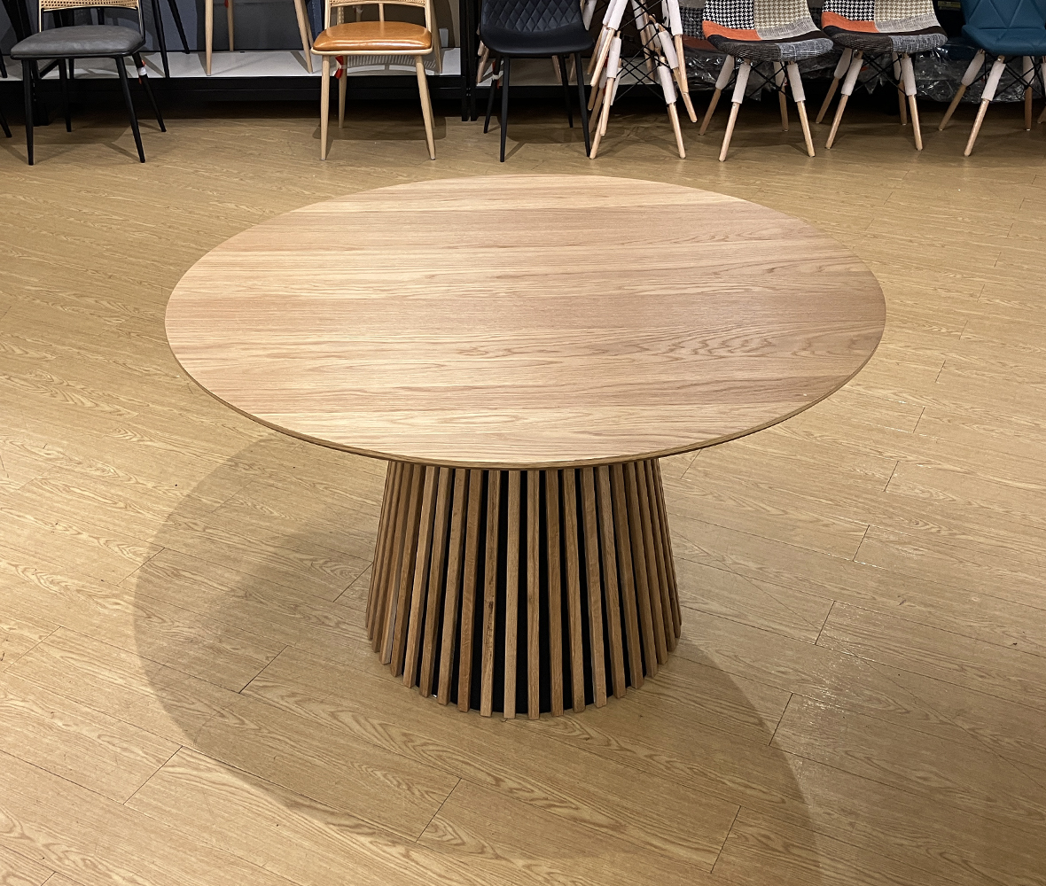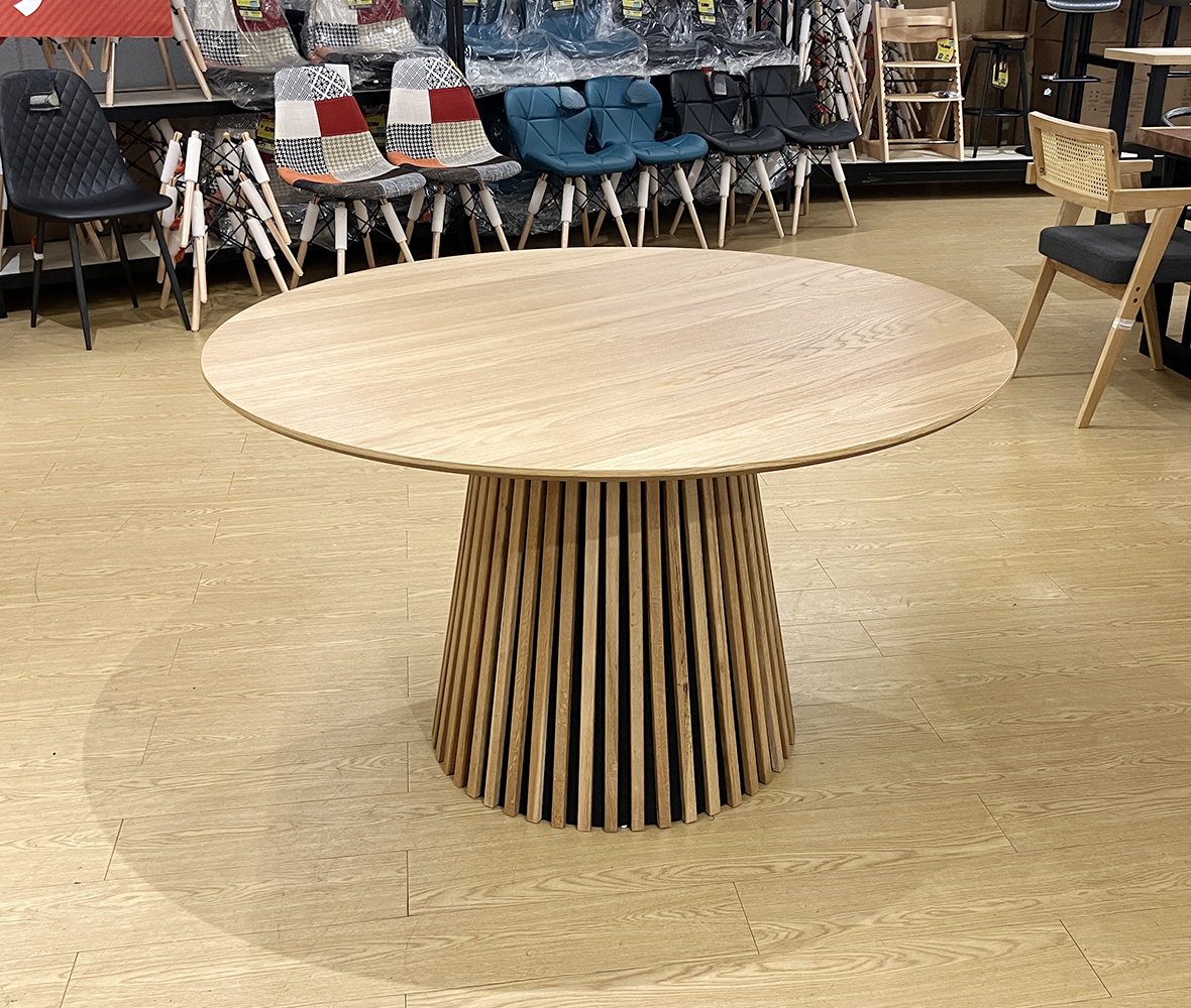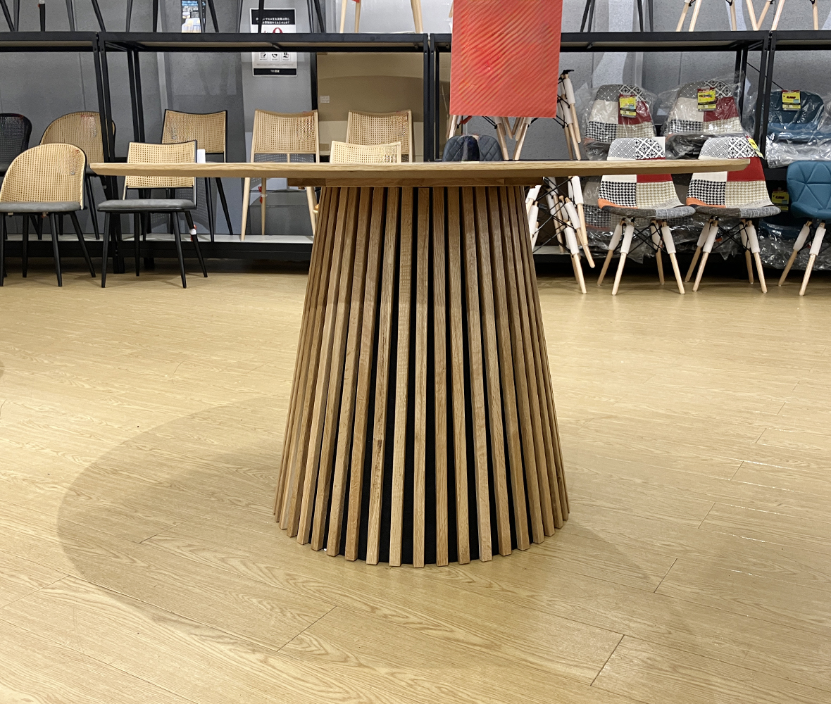 人気の円形テーブルでお部屋をもっとおしゃれに!チェアの配置を自由にできる1本脚デザインだから、レイアウトもスムーズ。家族や友人と会話が弾む、やさしい雰囲気の #円形テーブルです。