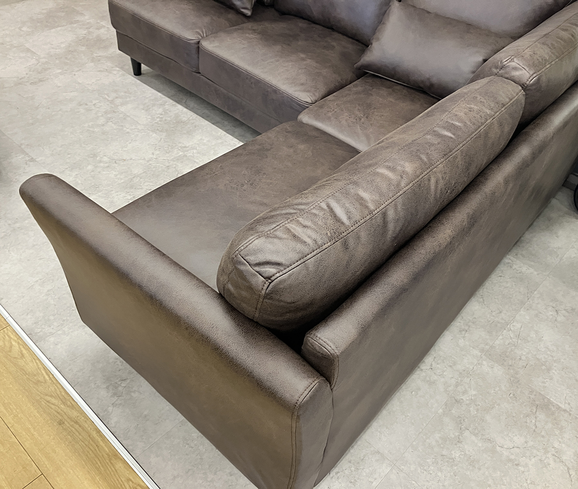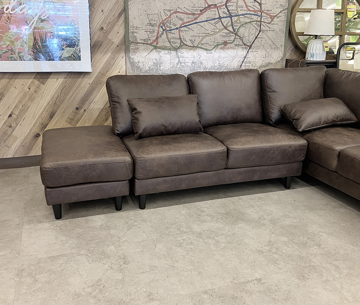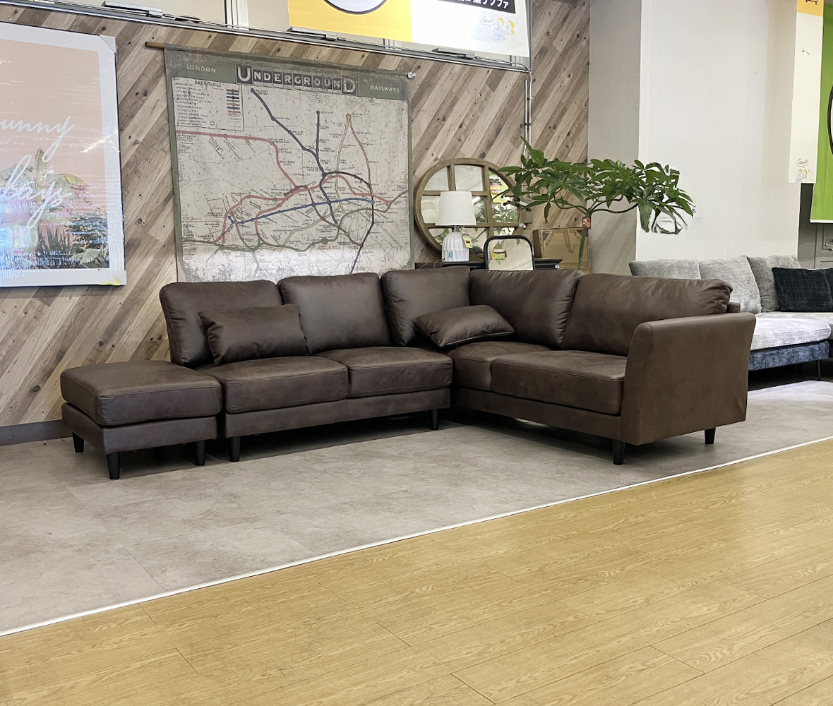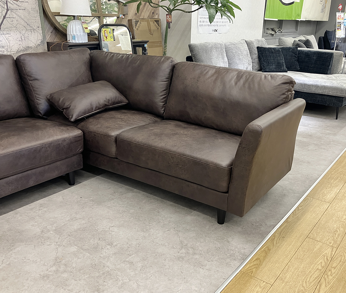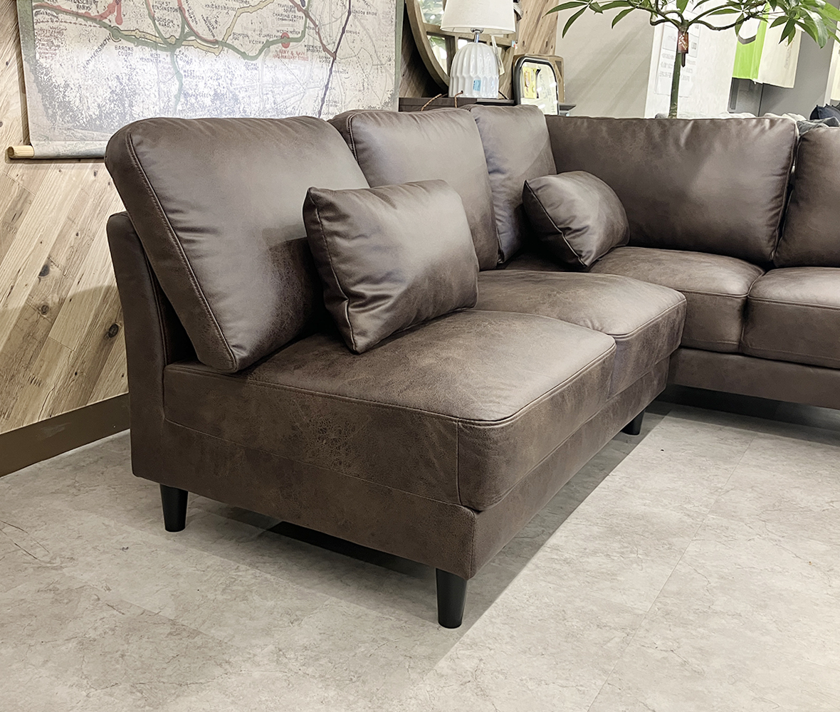2人掛け×2人掛け+スツールに、さらにクッション付きでお得感◎お部屋に合わせて自由にレイアウトできる #コーナーソファ。ファブリックレザー素材だから、キズや汚れに強くお手入れラク◎