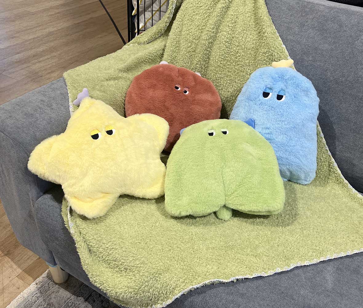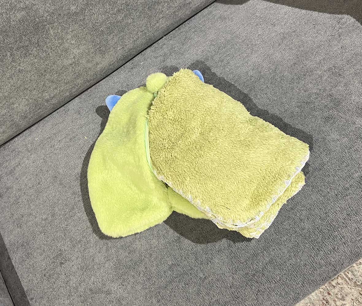 ギフトに喜ばれること間違いなし!可愛いモンスターがふわふわ #ブランケットに!ぬいぐるみみたいな見た目で、ファスナーを開けるとブランケット登場。スナップボタンで羽織や腰巻きにできて冷房対策にも◎ お部屋でもお出かけでも大活躍です!