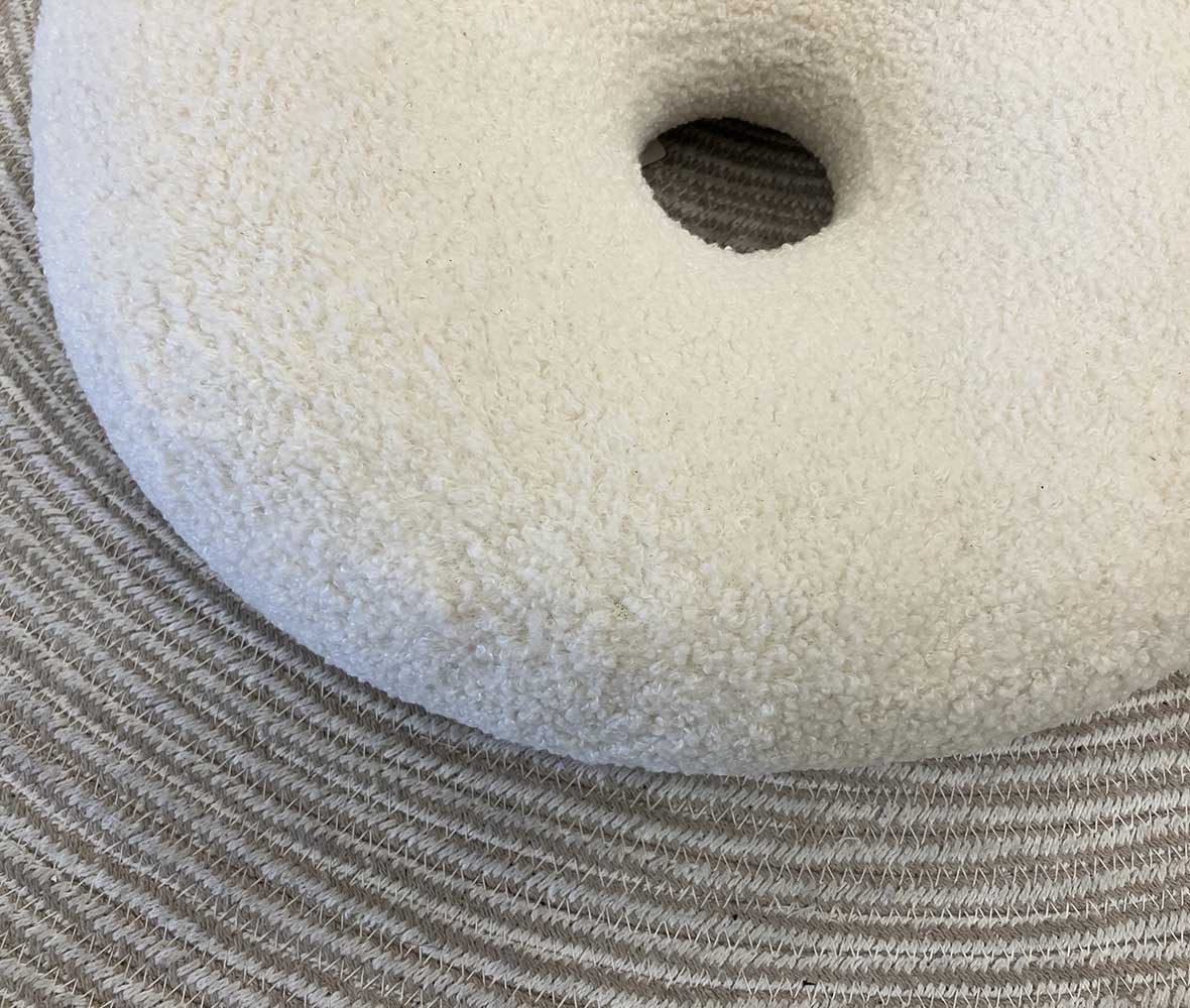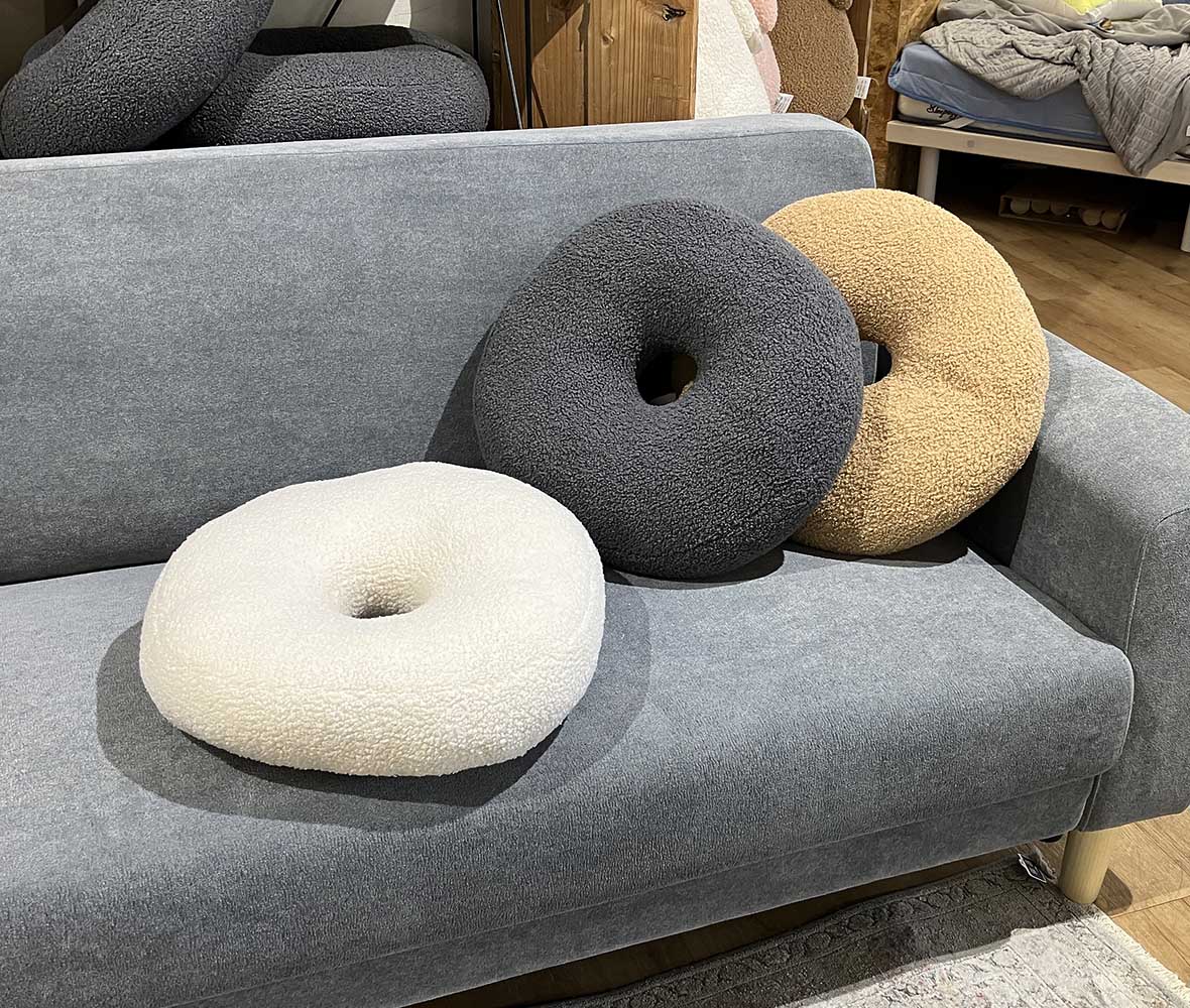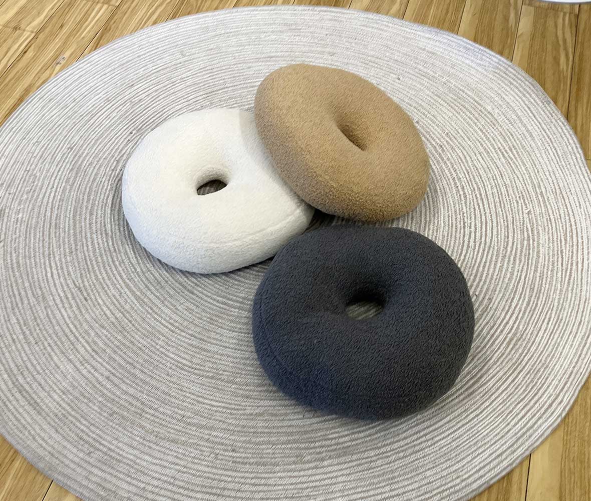 見た目もシンプルでオシャレ◎デスクワークやリラックスタイムのお供にピッタリな #ドーナッツクッション。真ん中から少しずれたくぼみが、腰やお尻にしっかりフィットして、長時間座っていても快適です。