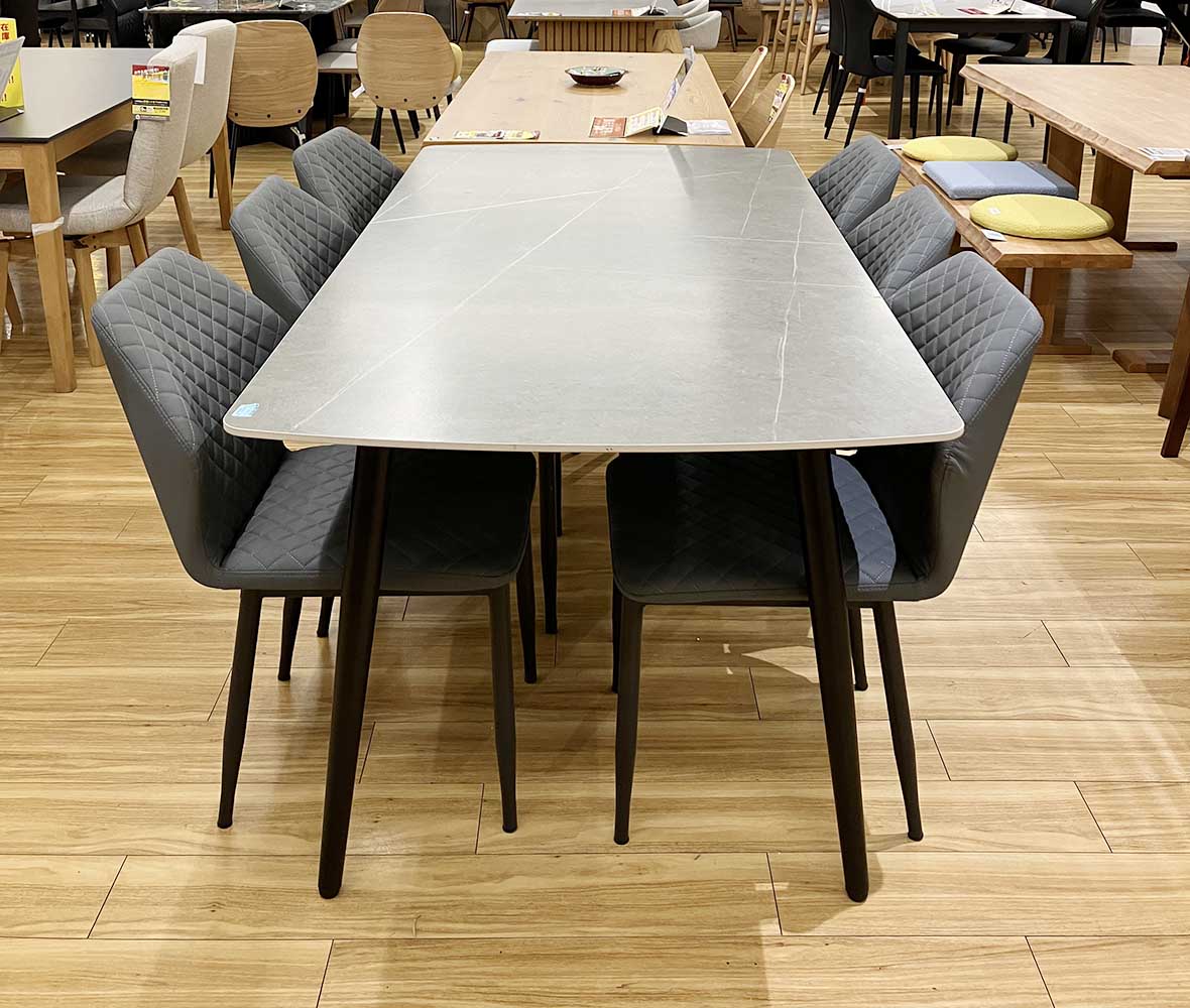 耐熱性が高くキズに強い#セラミック天板食卓7点セット。鍋やフライパンを置いても変形や変色しにくい、さらに汚れやアルコール食毒にも強いからお手入れが簡単!機能性とデザイン性に優れたダイニングセット