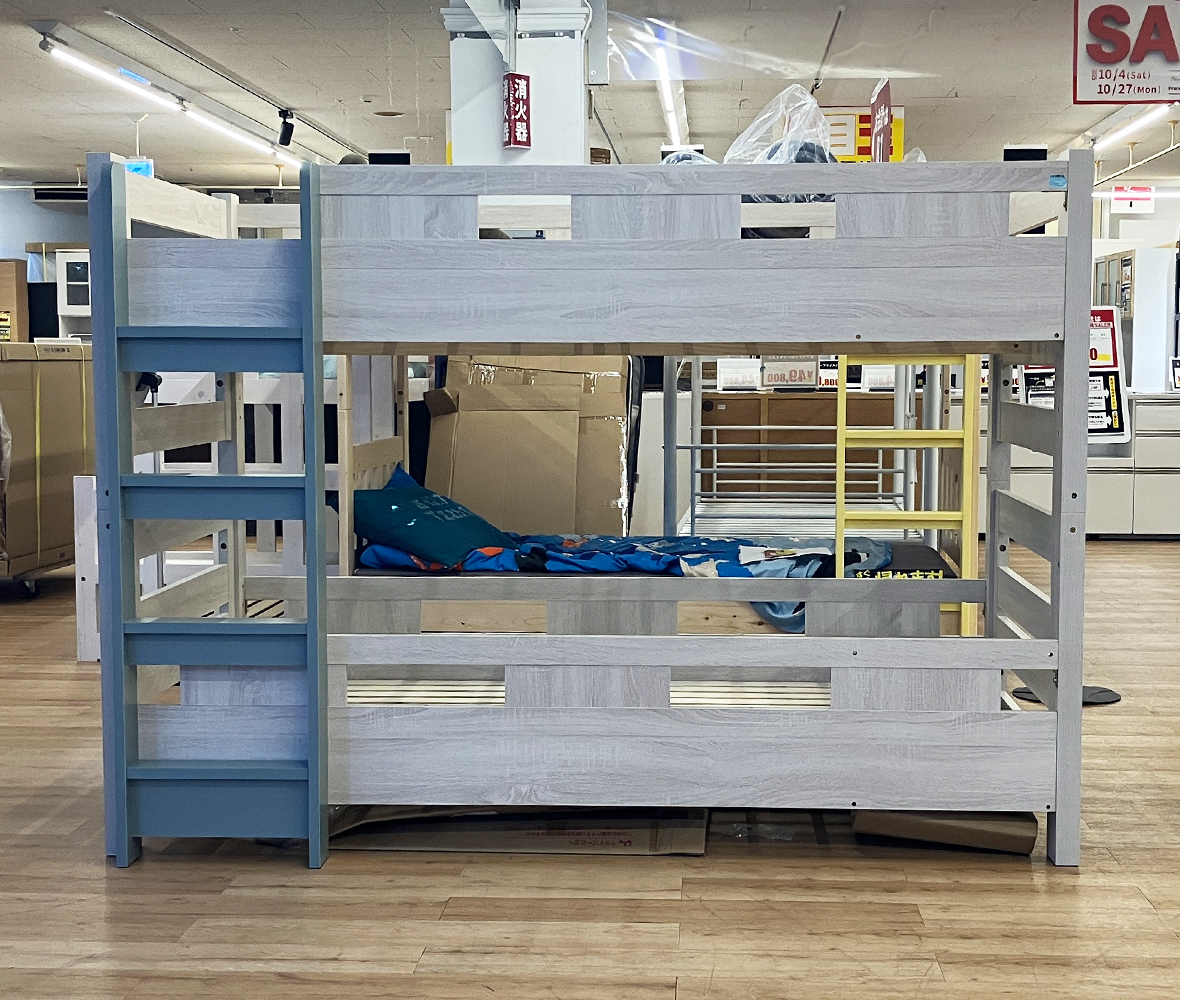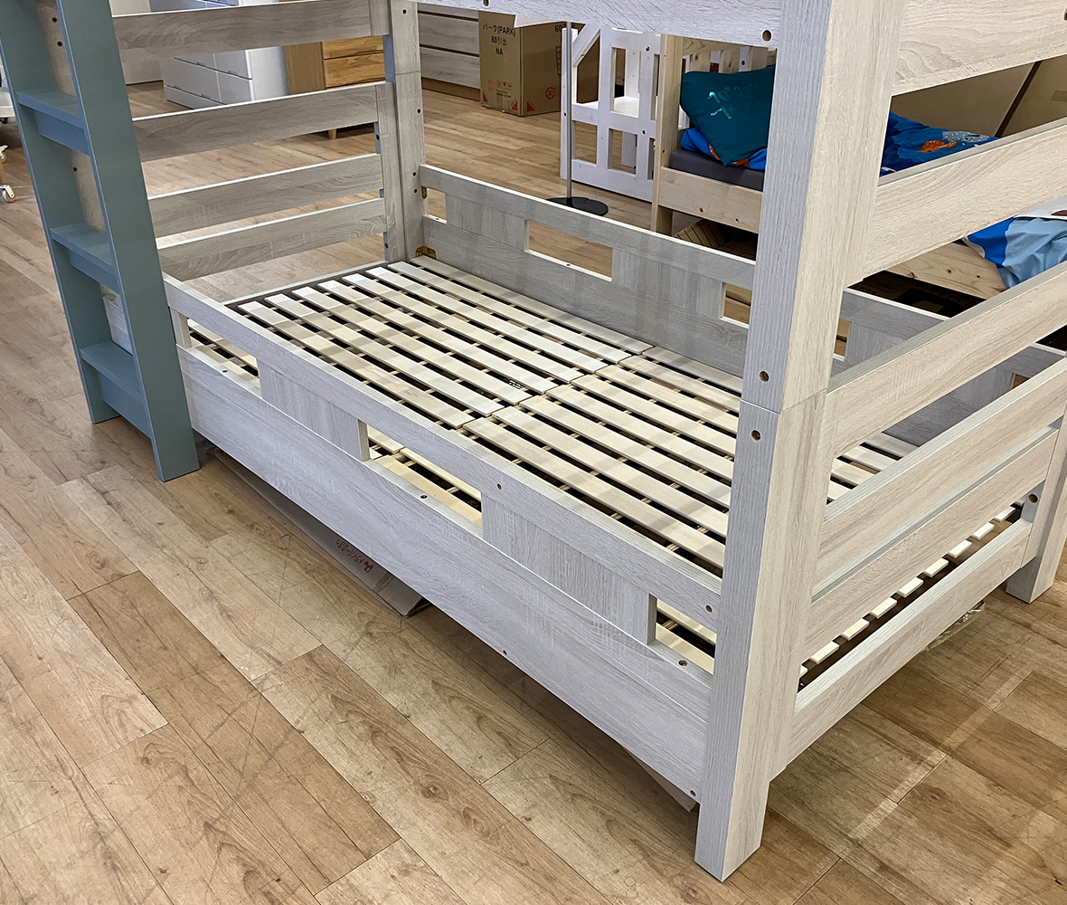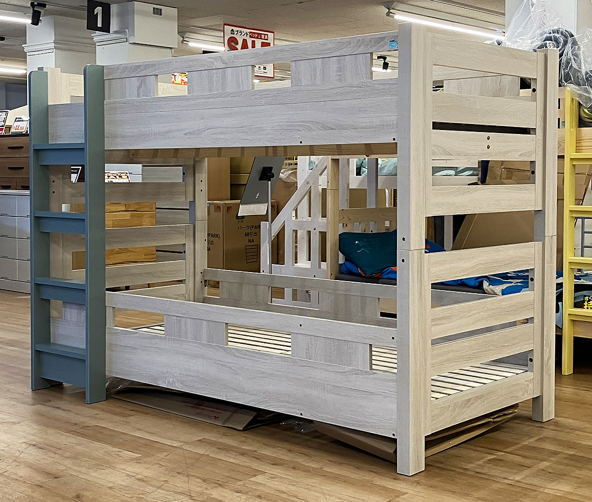 成長しても使える2WAY仕様!パステルカラーのはしごがアクセントの #二段ベッド。垂直はしごだから場所を取らず、お部屋もスッキリ!上下を分けてシングルベッド2台としても使える、成長に合わせて長く活躍◎