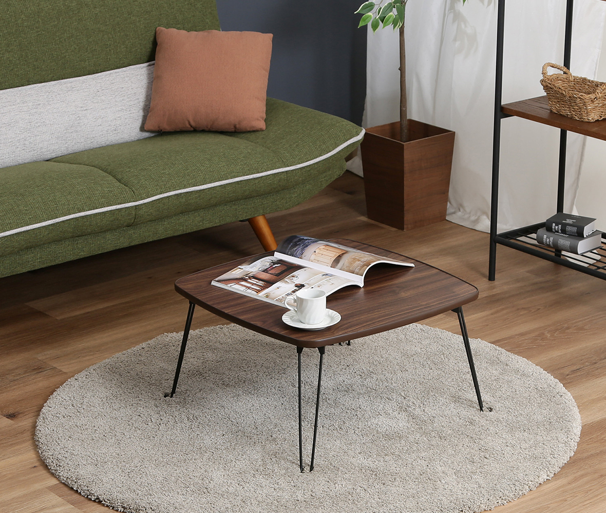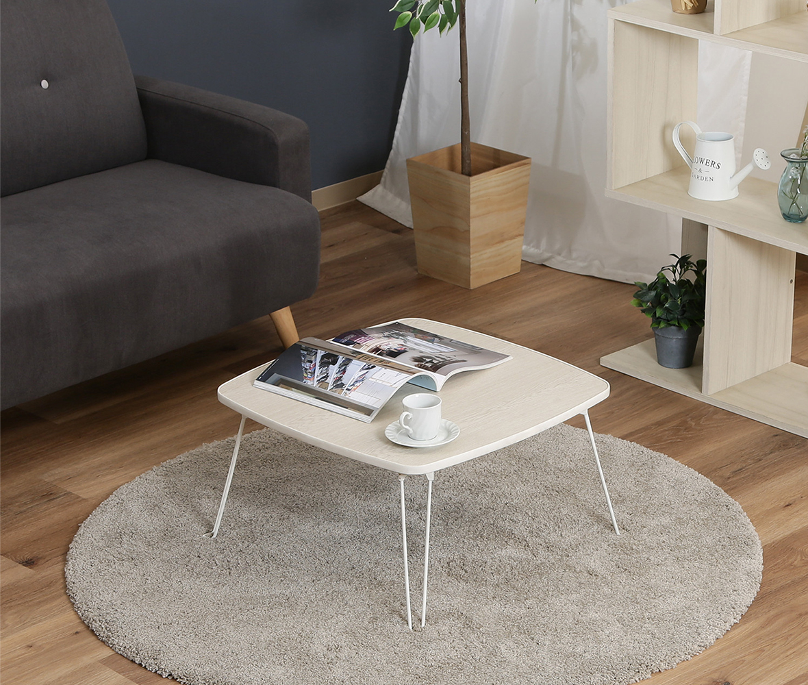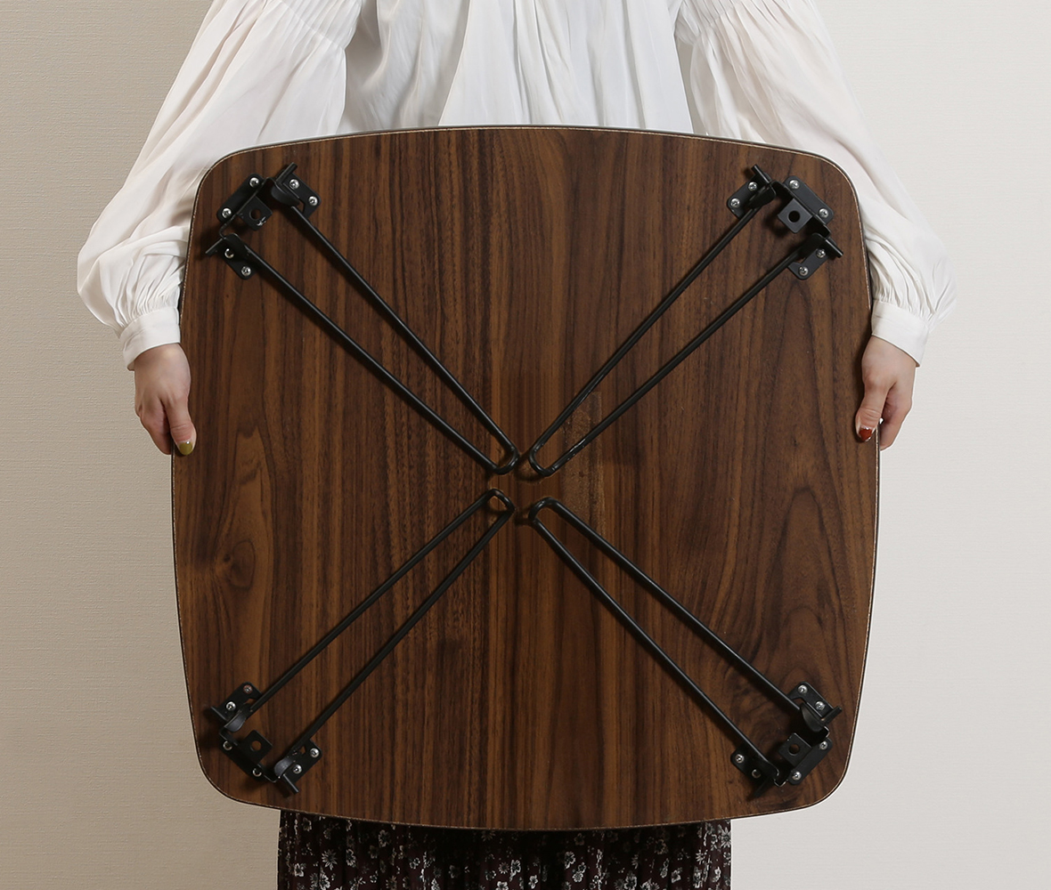 少し丸みのあるスクエア型がおしゃれな折り畳みテーブル! 軽量5.4KGで持ち運びも楽々です!