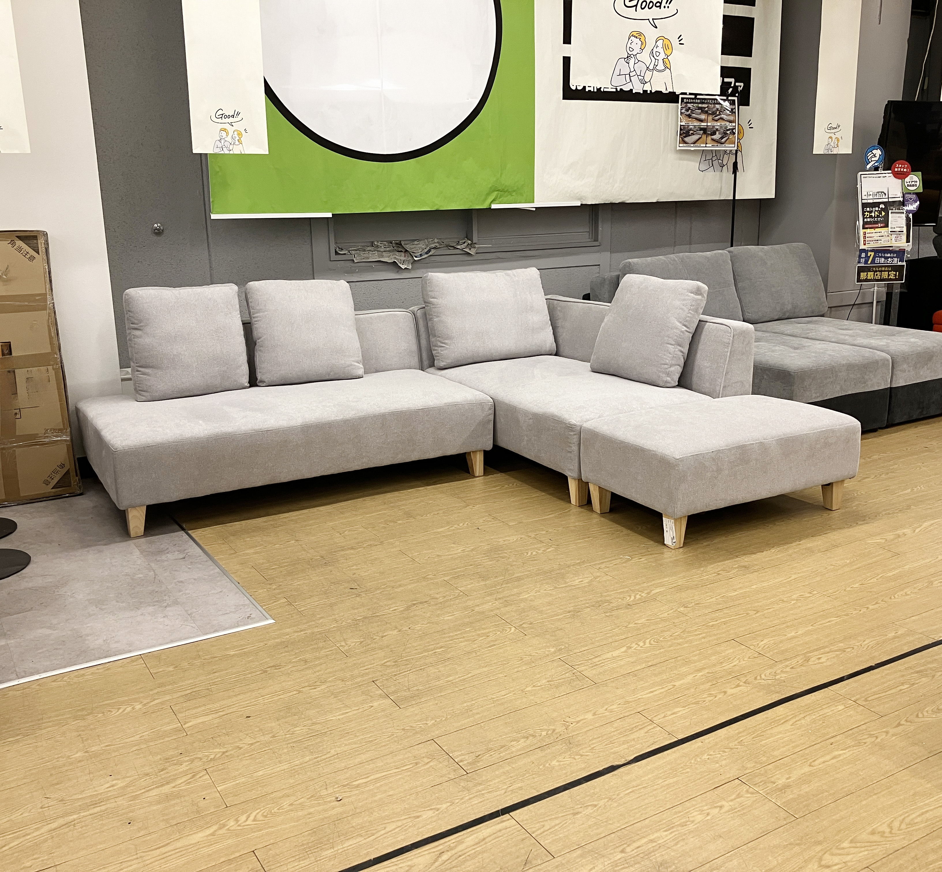 毎日の団らんがもっと心地よく◎家族みんなでくつろげるレイアウト自由自在の #スツール付きカウチソファ。組み合わせを変えるだけで、お部屋にピッタリフィット!嬉しいクッション4つ付きです。