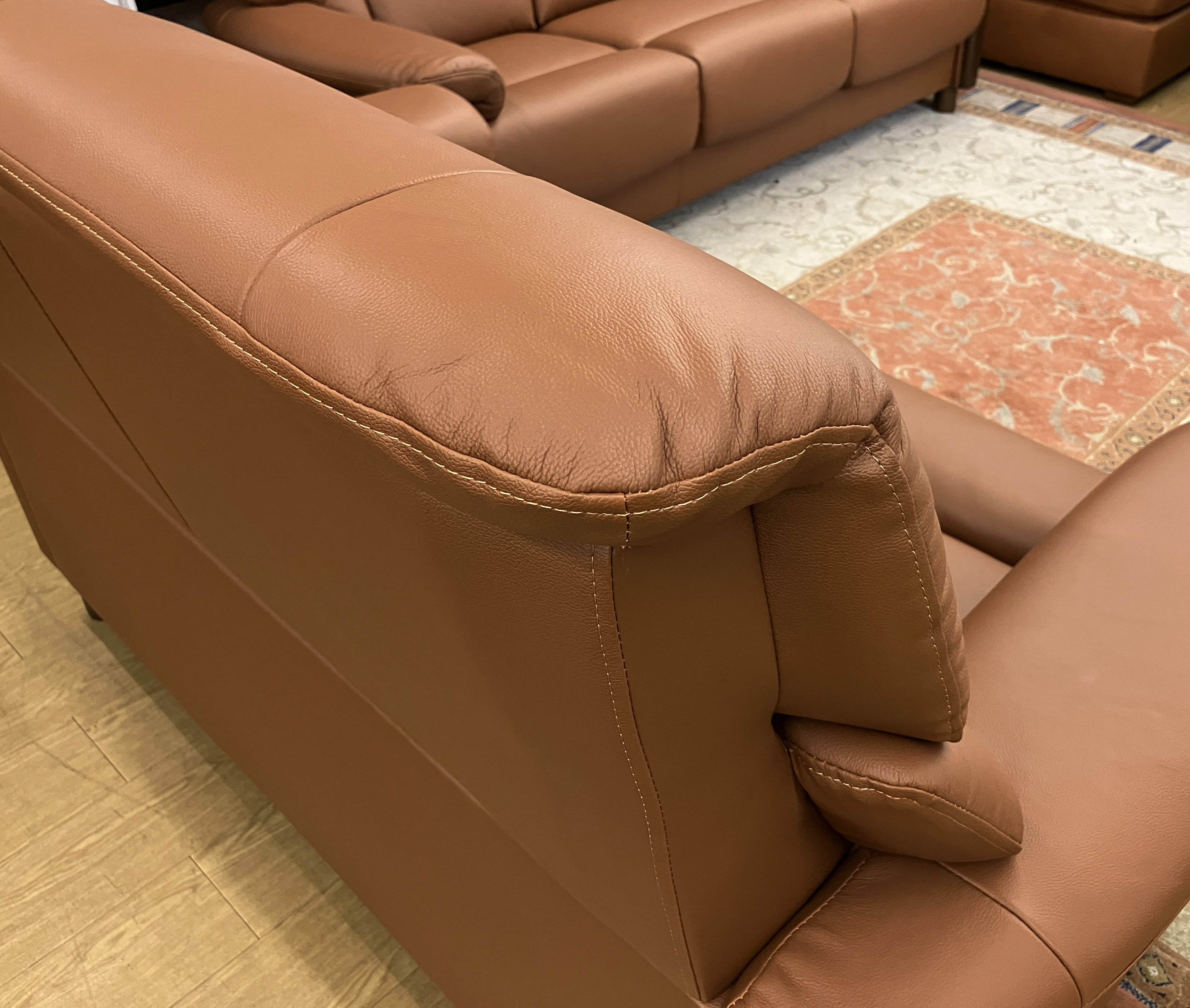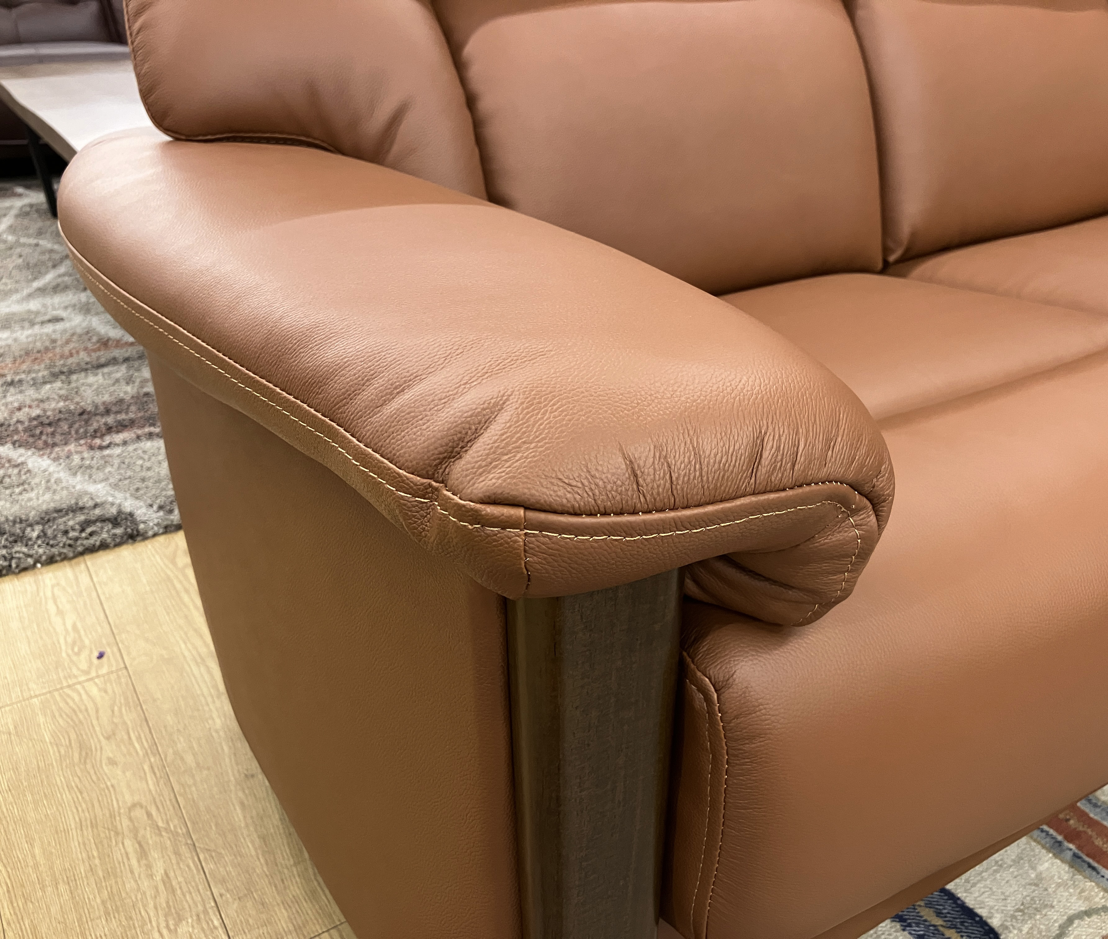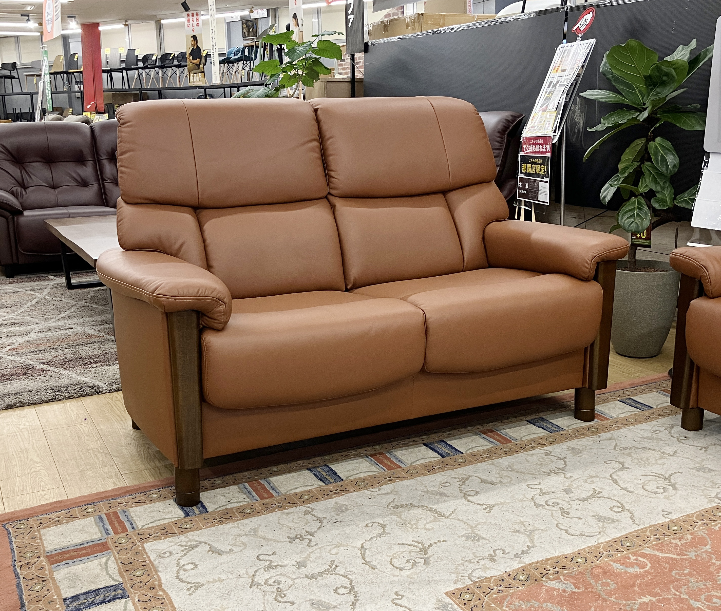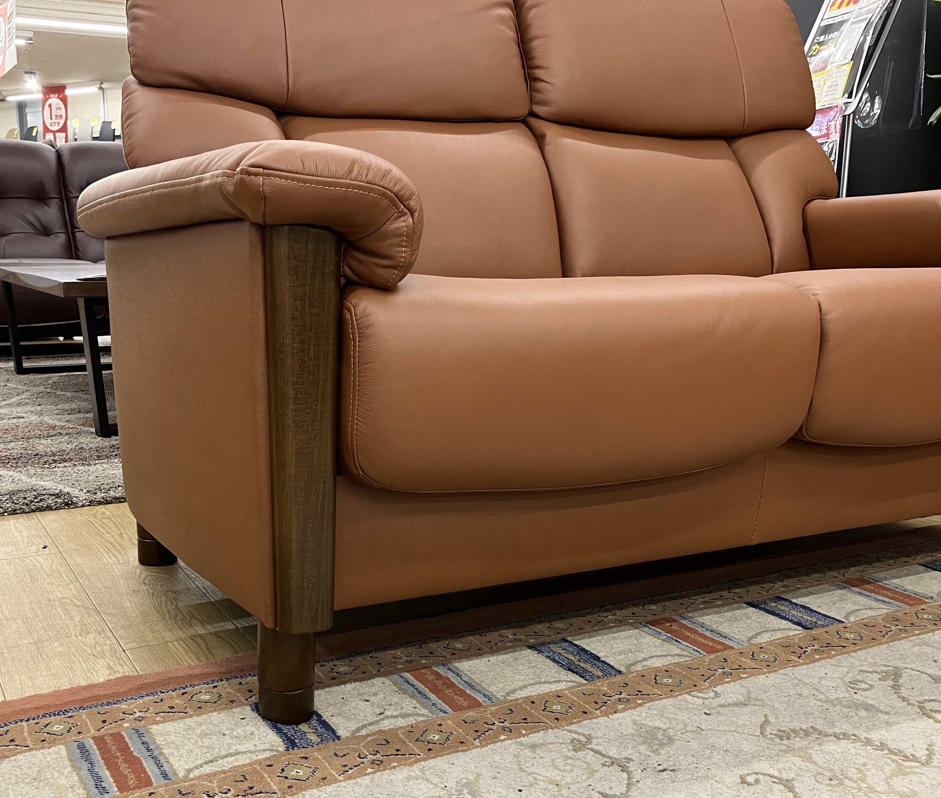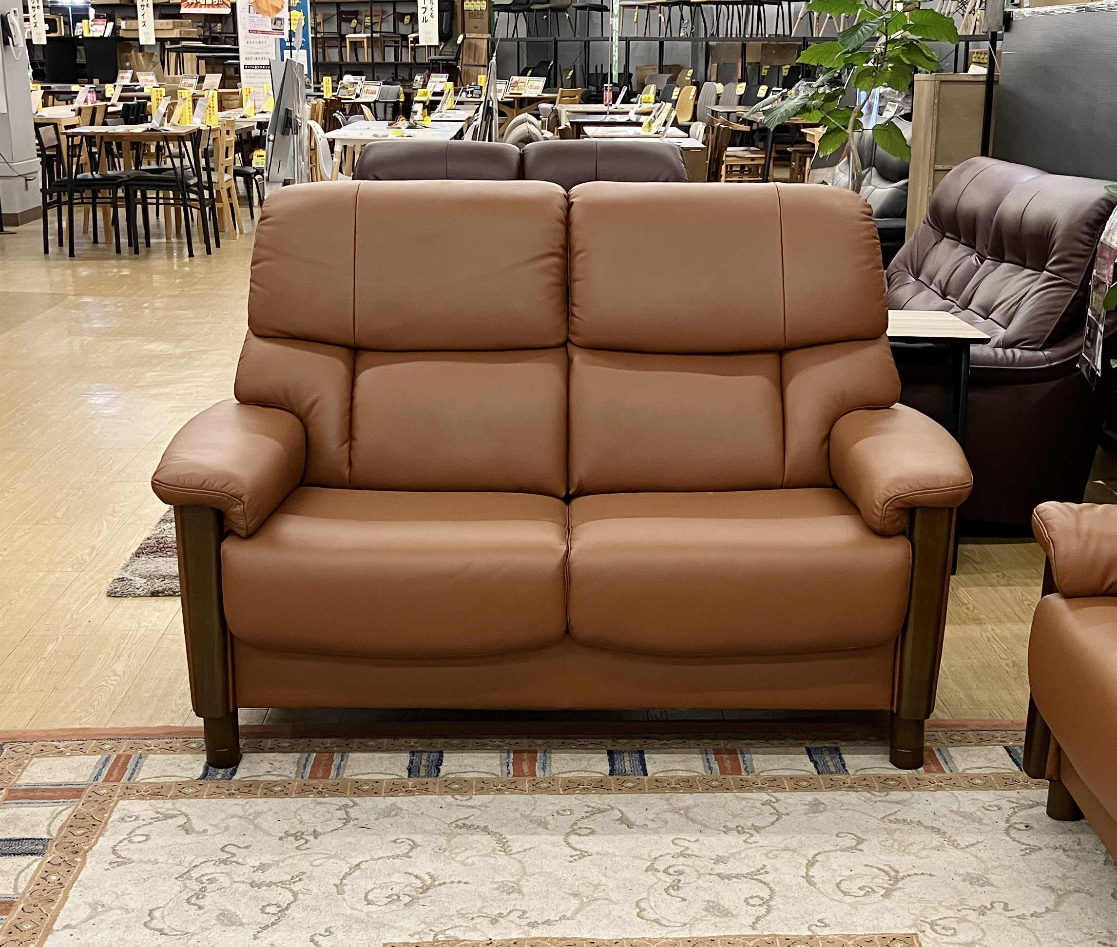 落ち着きのあるカラーの皮革と木材の組み合わせがGOOD!座面の高さ45・41・37cmの3段階で調整ができる #本革2人掛けソファ。自分に合った姿勢が作れるから長時間座っても疲れにくい◎お掃除ロボットもOK!