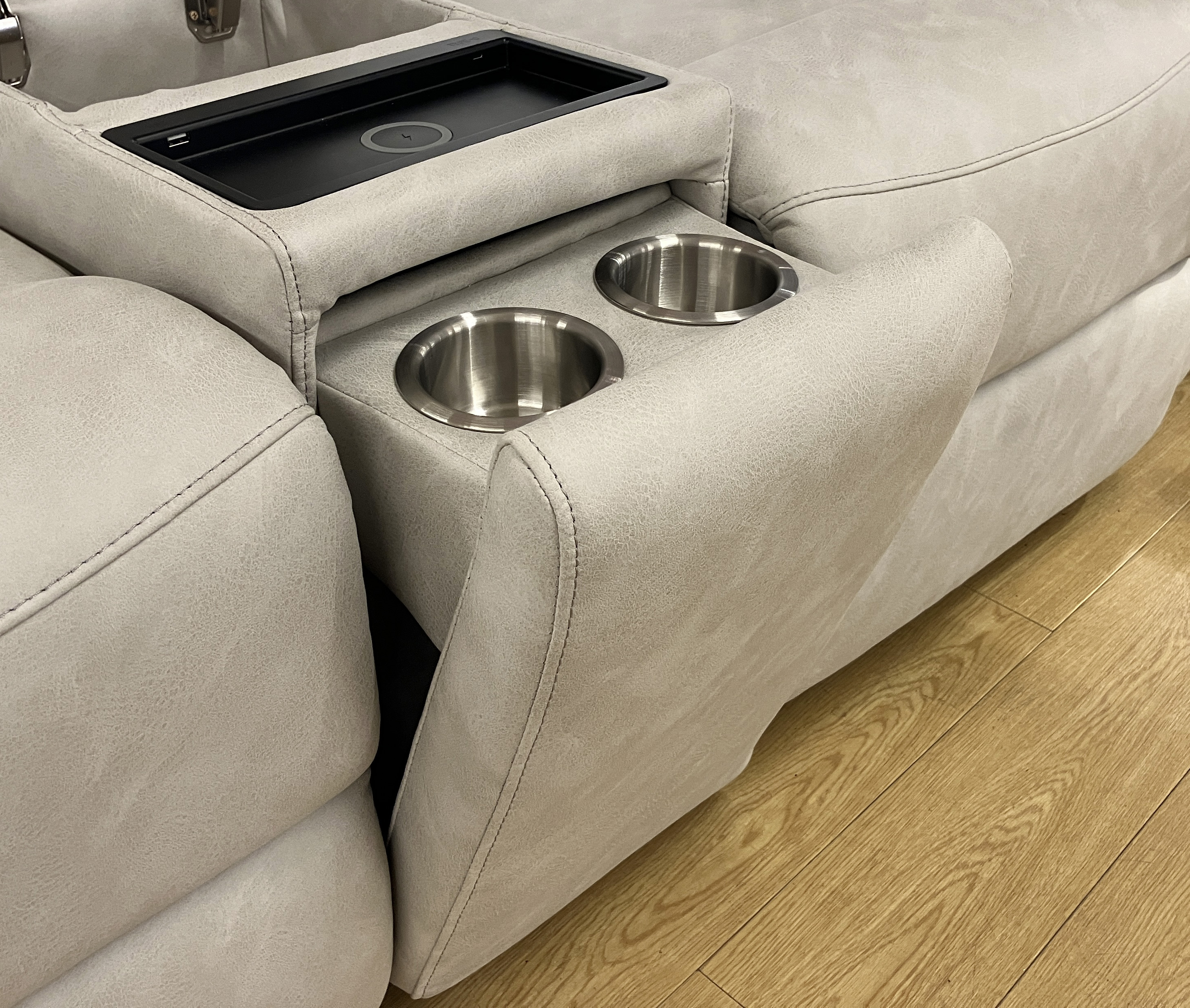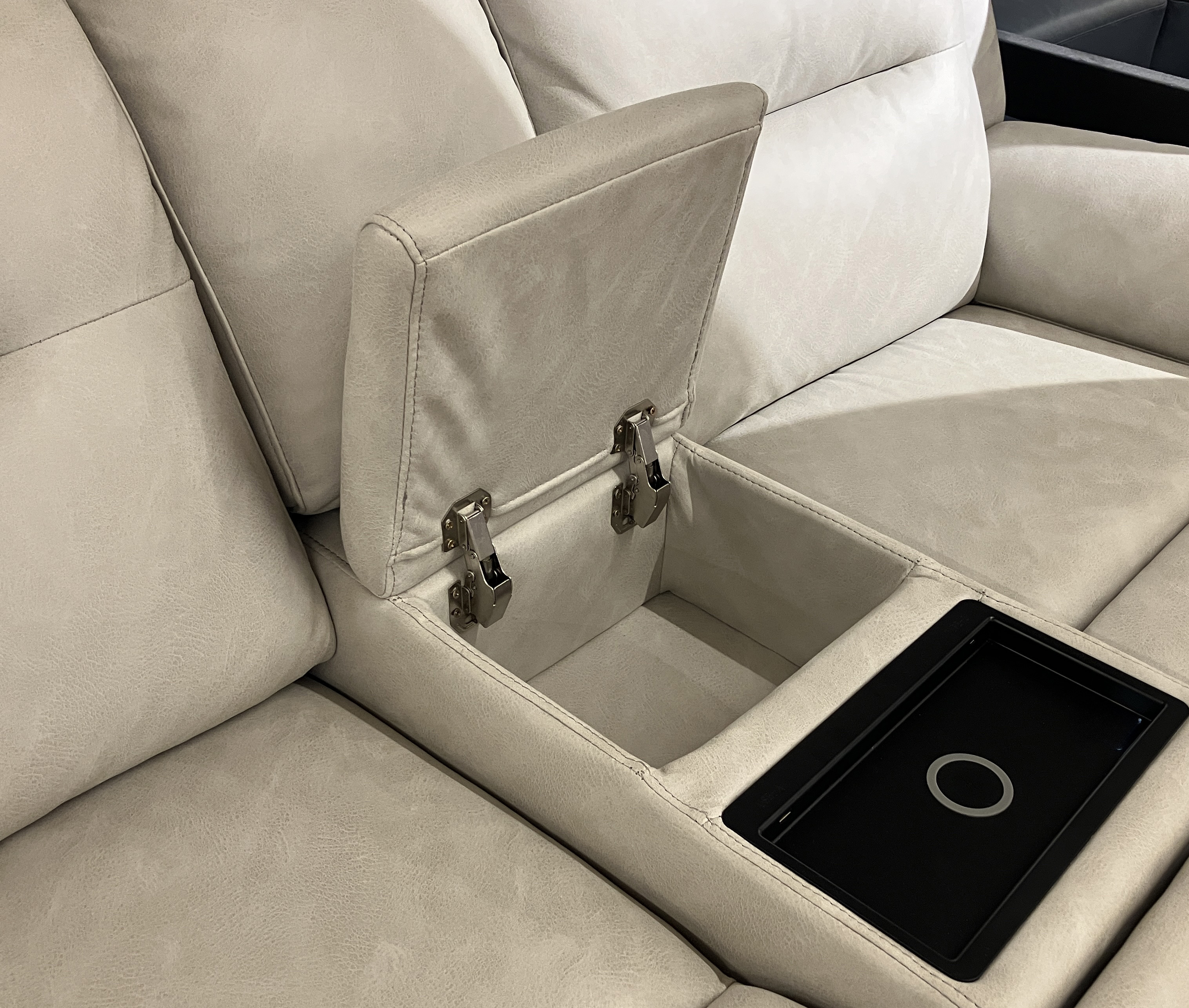 ドリンクが置けて、収納もできて、スマホ充電までOK!必要なものが手元で完結する #電動リクライニングソファ。ふかふかの座り心地は長時間座っても疲れにくく、映画やドラマタイムにピッタリです。