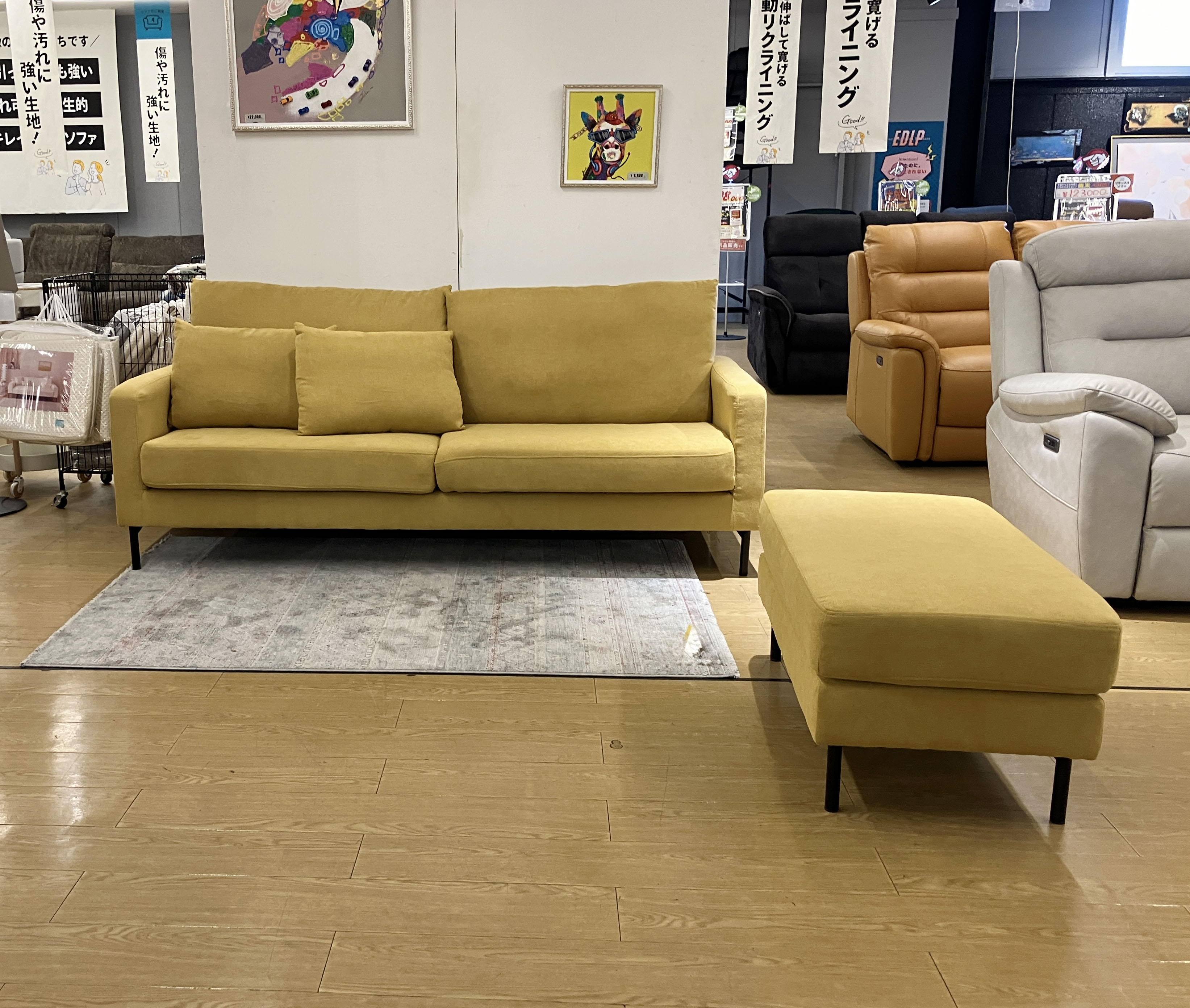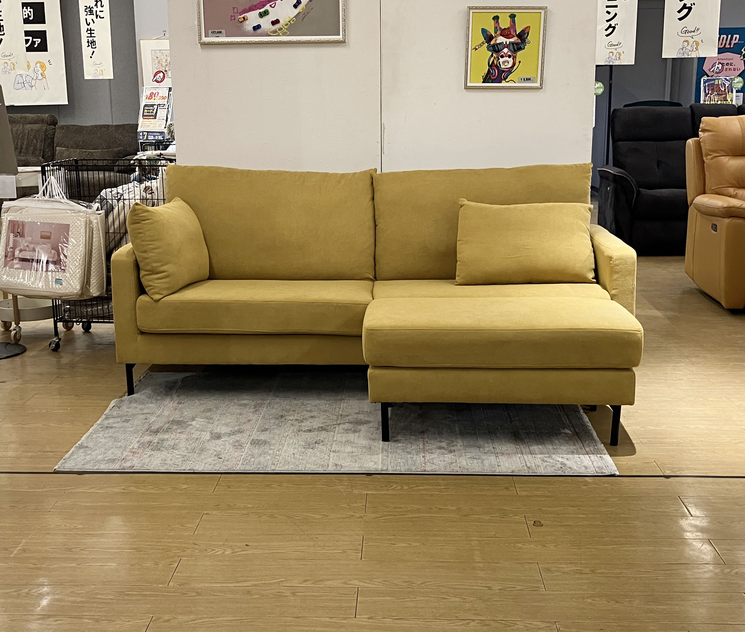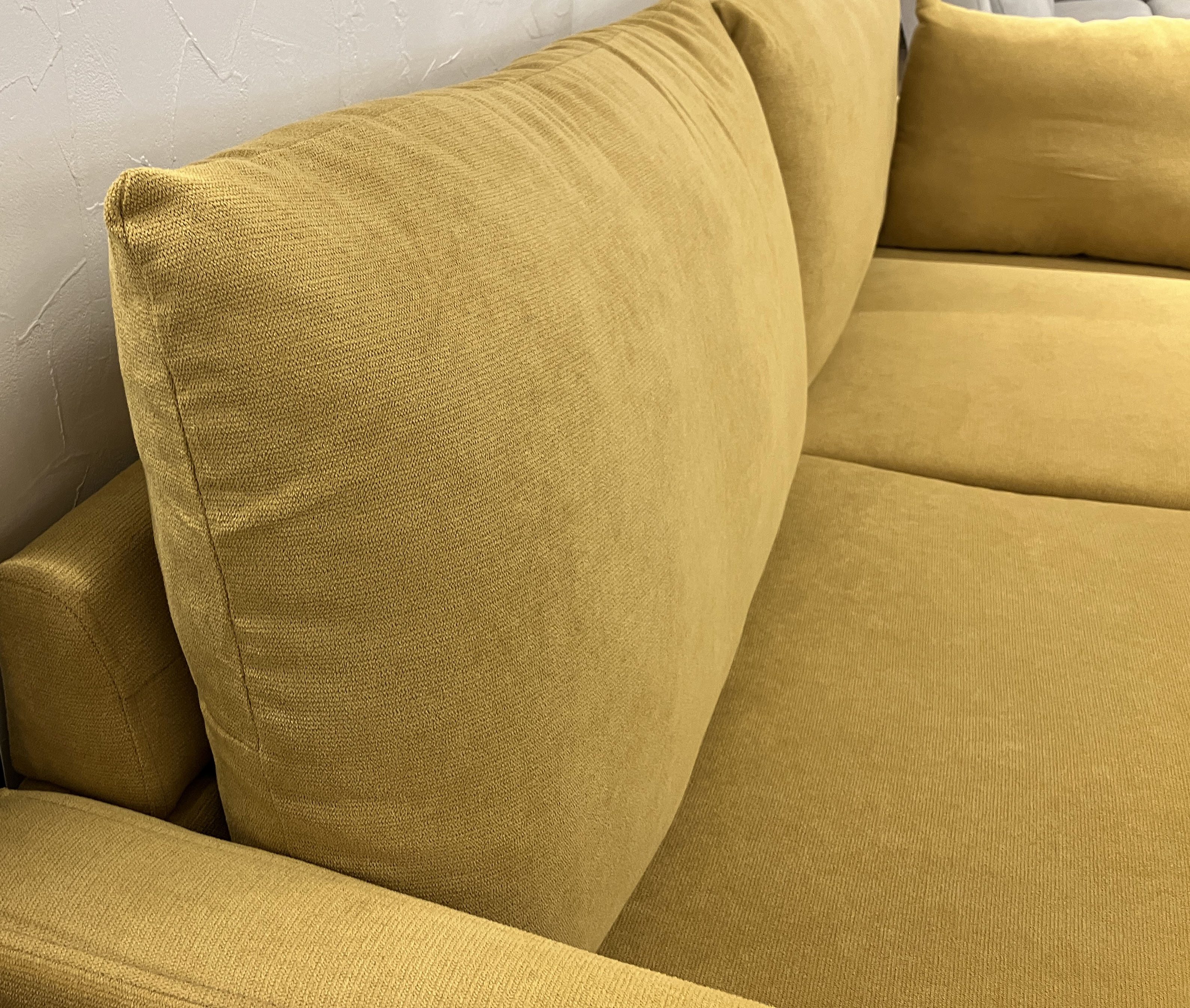 適度な弾力があり、ついゴロッと寝転びたくなる心地よさ◎お部屋がパッとと明るくなるマスタードカラーの #ポケットコイルソファ。座った瞬間に体をしっかり支えてくれるので、長時間座っても疲れにくい!嬉しいクッション2コ付き♪