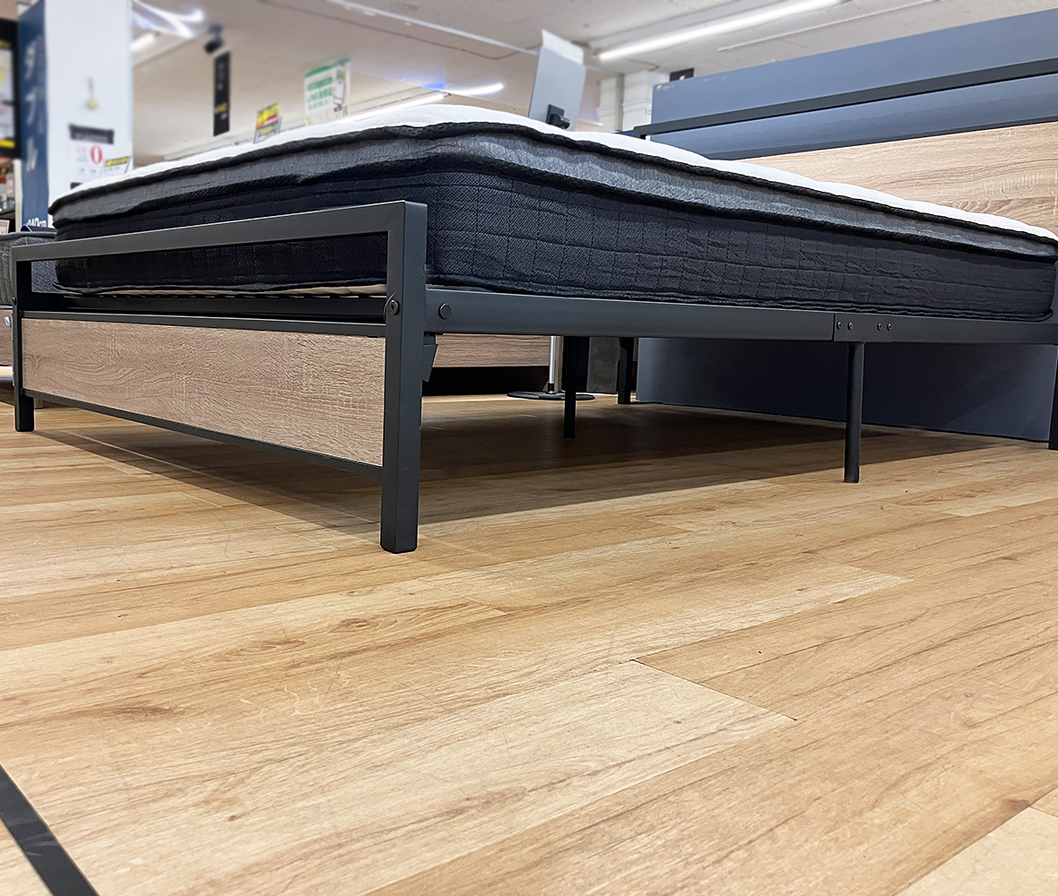 ダブルベッド!OKならポケットコイルマットレス付きのダブルサイズでこの価格!フレームは木目シートをNEWカラーに仕様変更!より木質感のある色合いになってます◎