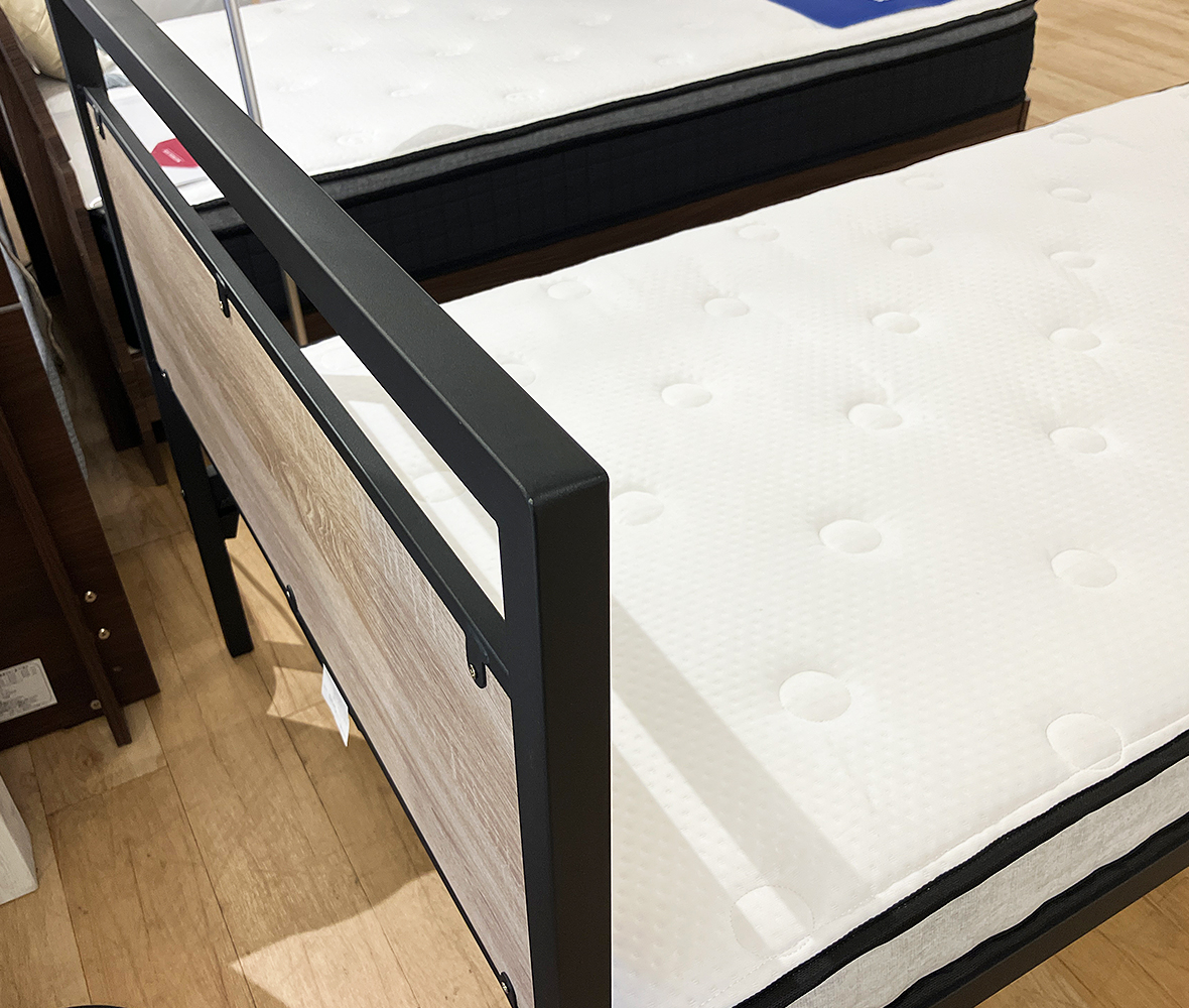 大好評につき再入荷!!15CM厚の薄型マットレス!ポケットコイルを贅沢に使い底つき感もないしっかり弾力のあるマットレスです。薄型軽量なので日頃のシーツ取り換えなどお掃除も楽々です。今ならフレームセットでこの価格です!!