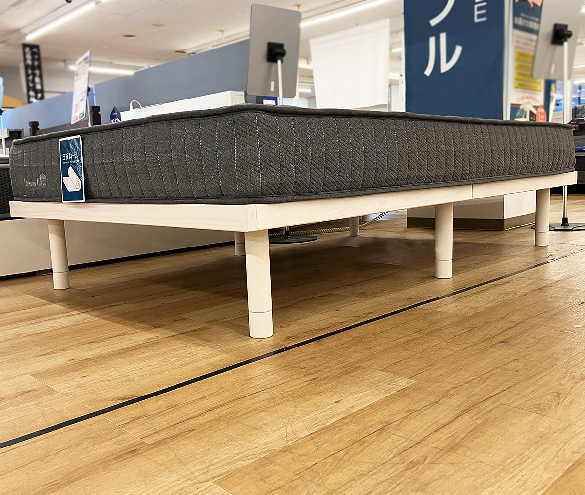 天然木パイン材を使用した見た目以上に頑丈なフレーム!脚部は連結式で3段階に高さが変えれます。ヘッドボード無しで上下を気にせずレイアウトが自由にできてお部屋の圧迫感も少ないシンプルデザインです。