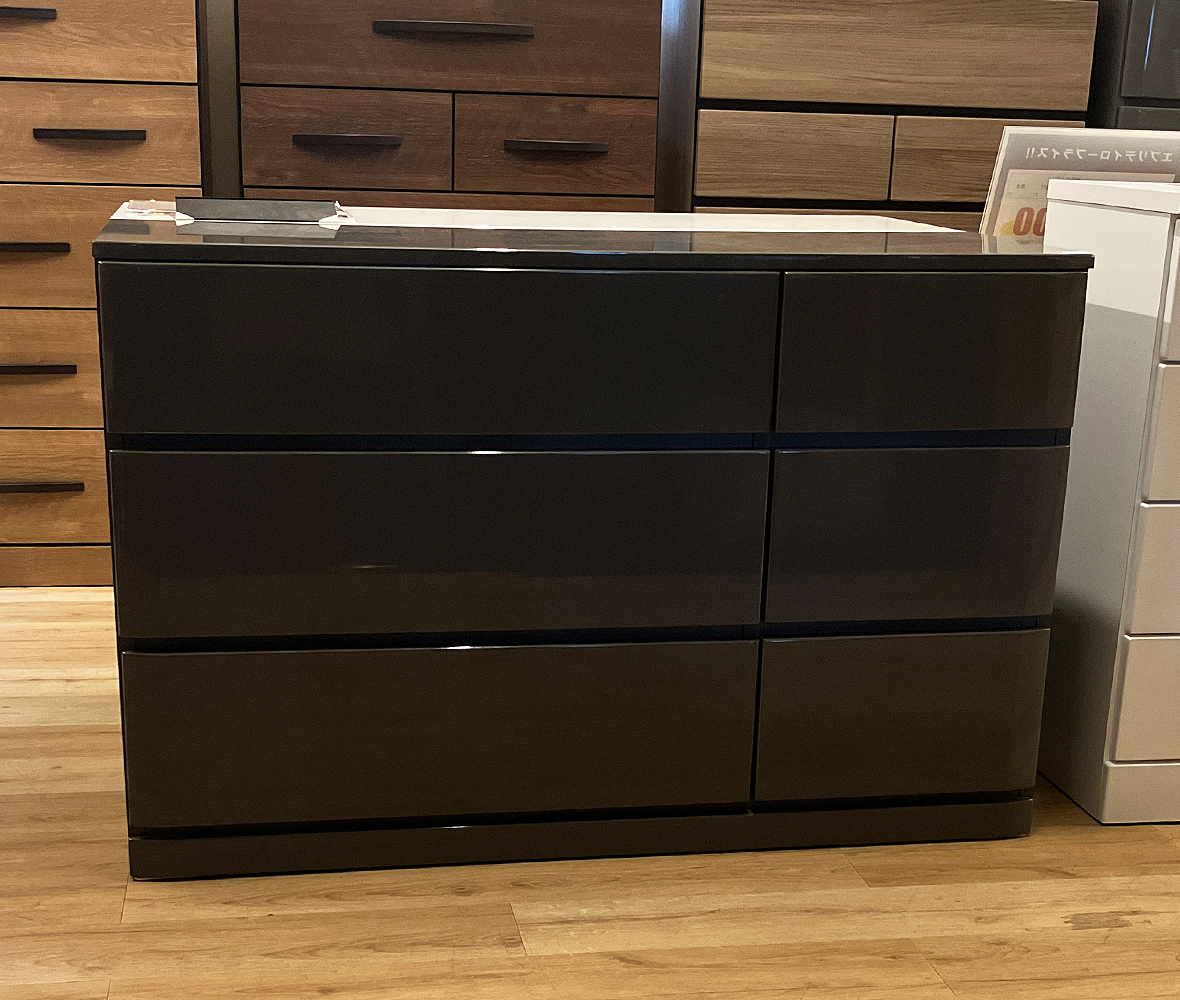 天然木を使った重厚感のある洋タンスです。レールは3段スライドレール仕様で 開閉スムーズで丈夫です。
