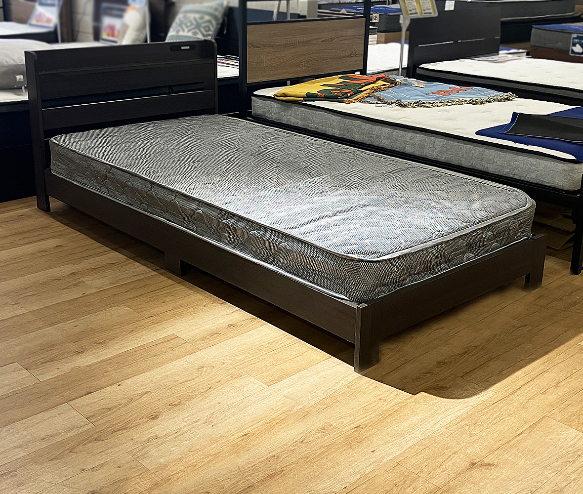 購入後すぐ持ち帰れる!しっかりとした寝心地のボンネルコイル&シンプルなデザインフレームの #シングルベッドセット。フレームは、ライト+USBポート付きでスマホの充電や就寝前のひとときにも便利◎