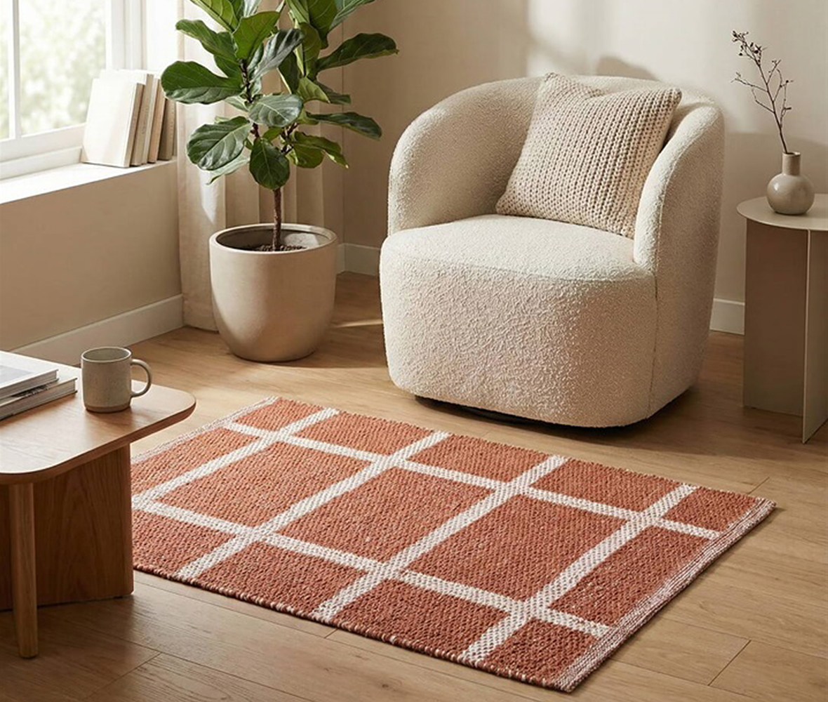 さまざまな場所で使いやすい50×70cmサイズ!一年中快適に使える綿素材と使用した #フロアマット。お部屋の雰囲気をさりげなく垢抜けさせてくれる、オシャレなデザインです。玄関マットとしてはもちろん、姿見の前に敷くのもおすすめ!