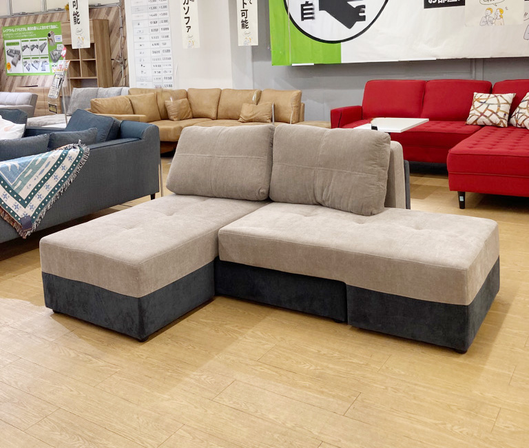 4パターンの組み合わせが可能!変形・レイアウト自在な #カウチソファ。ベッドタイプにすれば、ダブルベッドと同じサイズで寝心地◎お部屋のレイアウトや用途に応じて自由に変えられるから、スペースを有効活用したい方にオススメです。