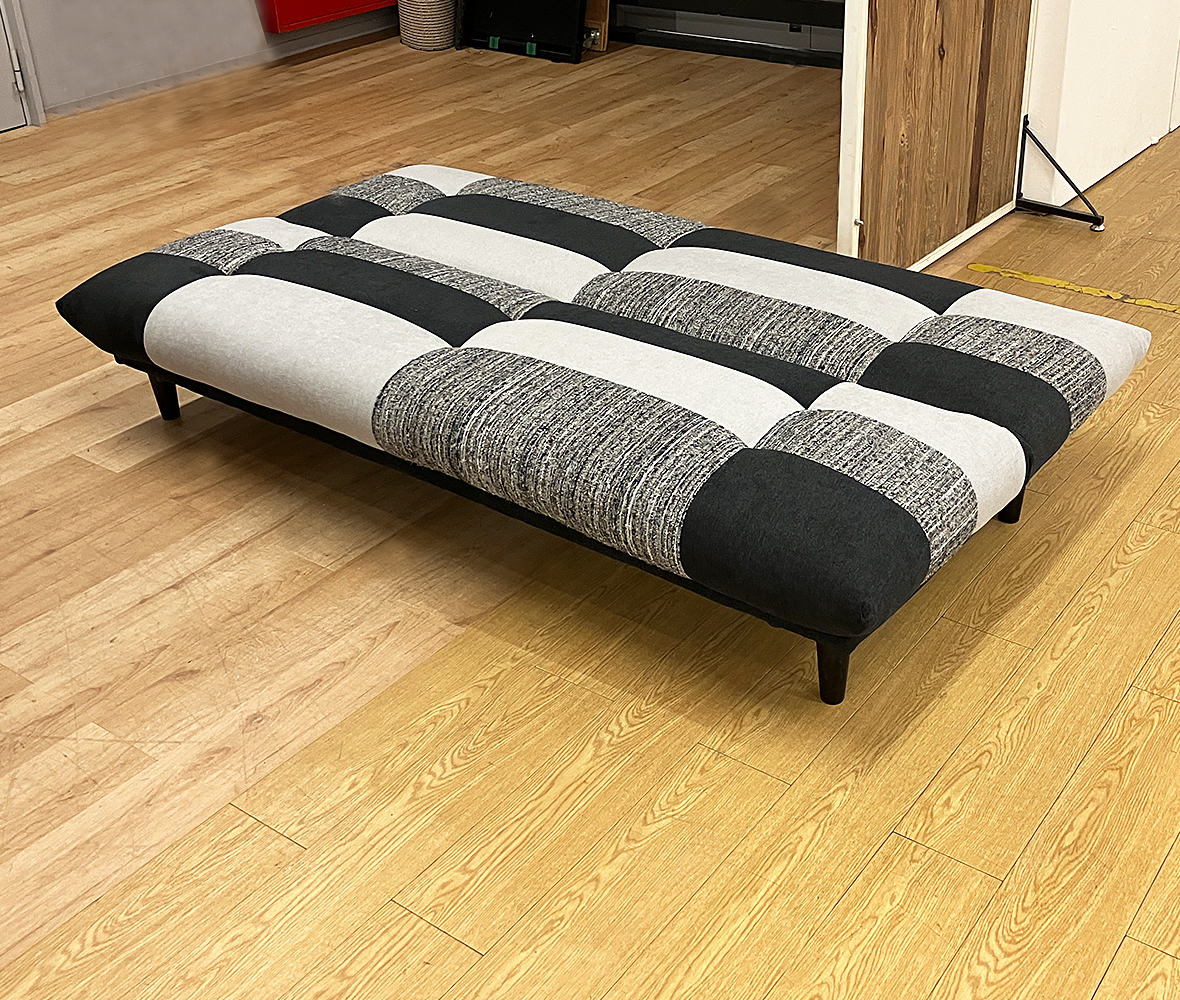 オシャレなパッチワークデザインでお部屋のアクセントに◎普段はくつろぎソファ、来客時やちょっと横になりたいときはベッドとして大活躍の 1台2役ソファベッド。背もたれは3段階調節ができるので、シーンに合わせて快適な姿勢を選べます!