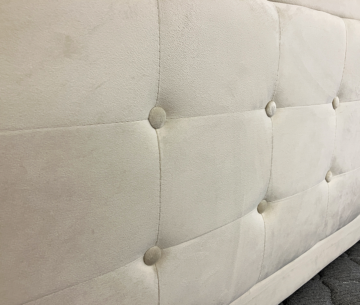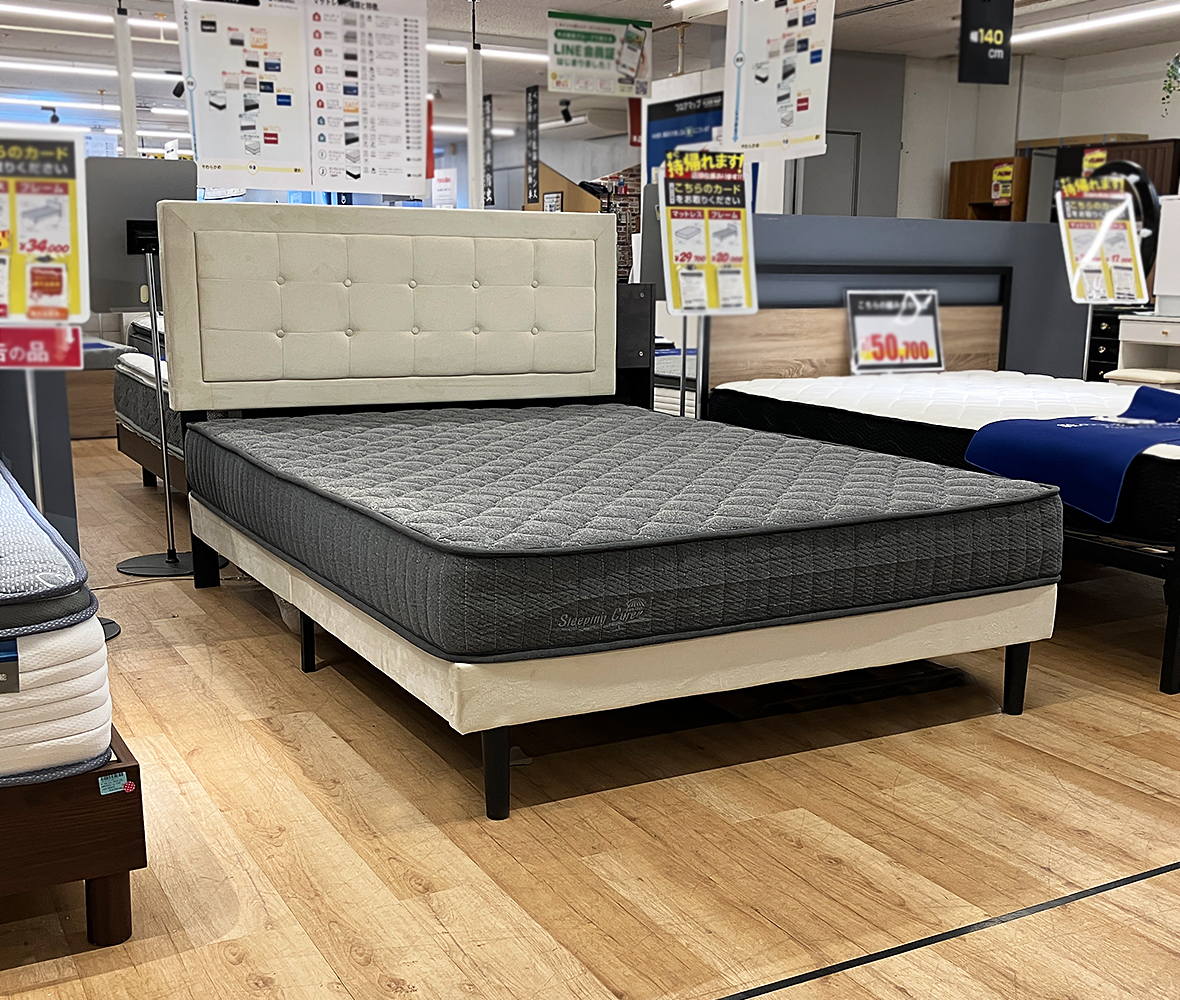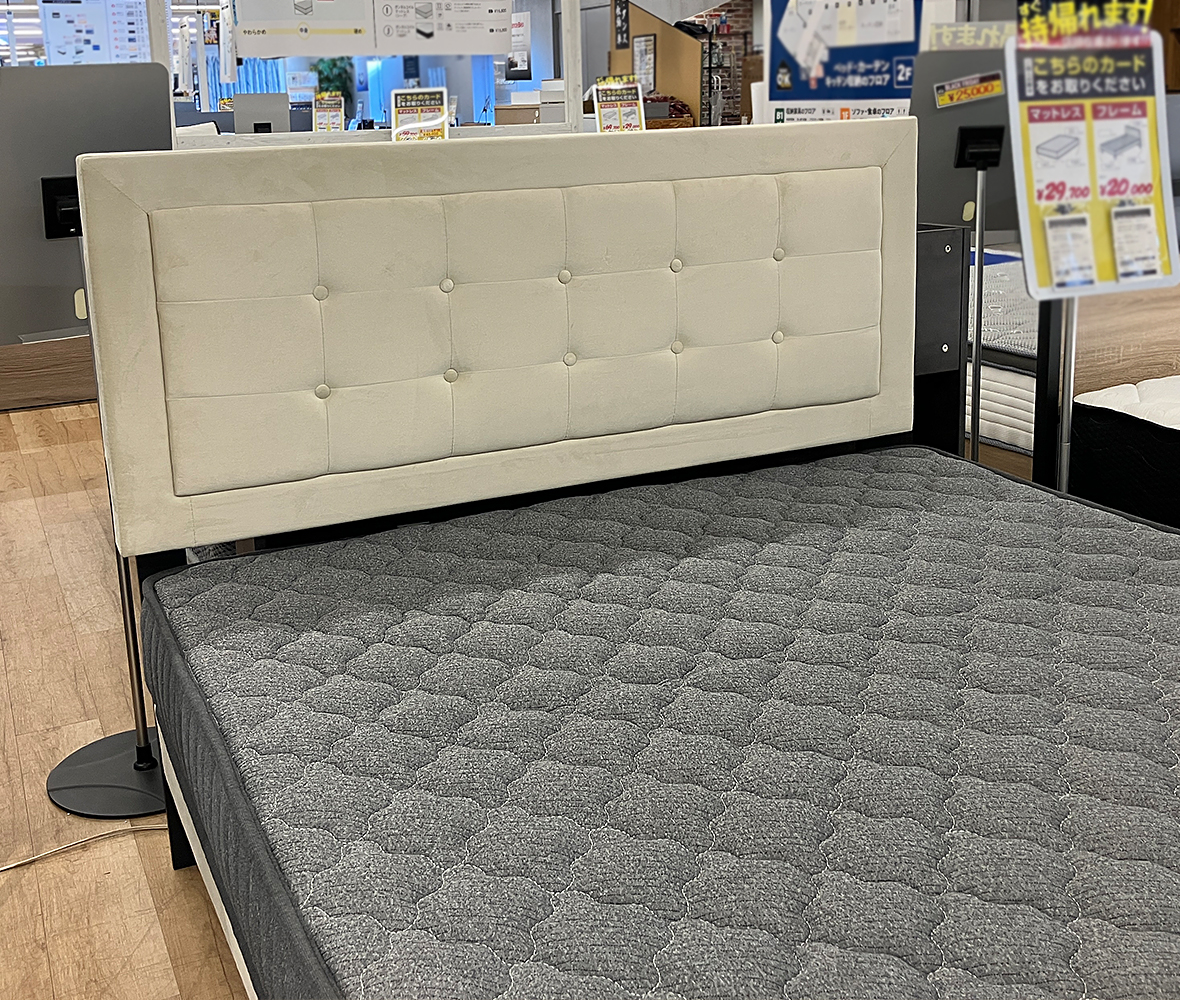 オシャレなベッドボードと体圧分散に優れたポケットコイルマットレスの #ダブルベッドセット。ファブリック素材のヘッドボードは、ソファのように寄りかかって寛げる!体圧分散に優れたポケットコイルマットレスで寝心地◎