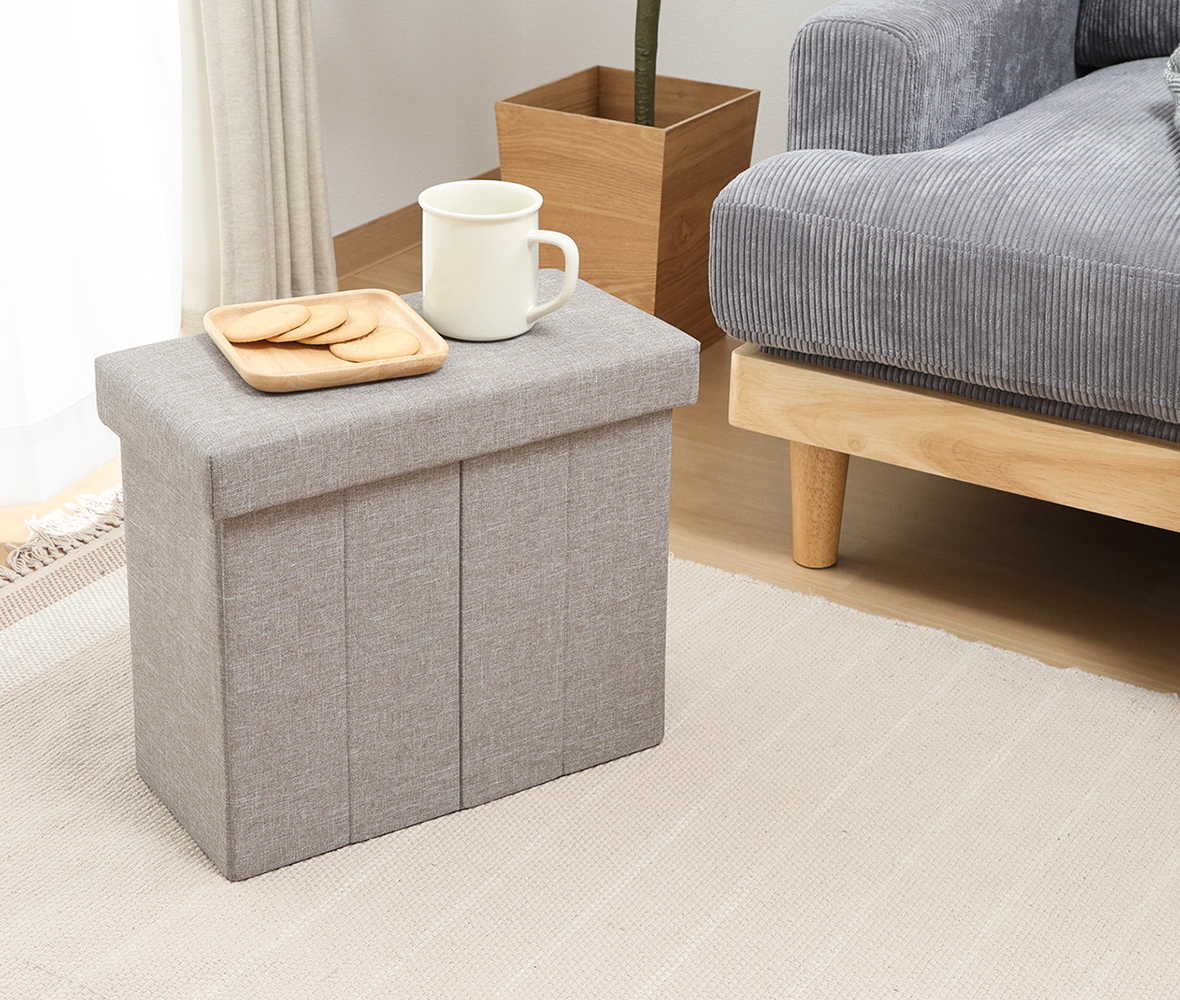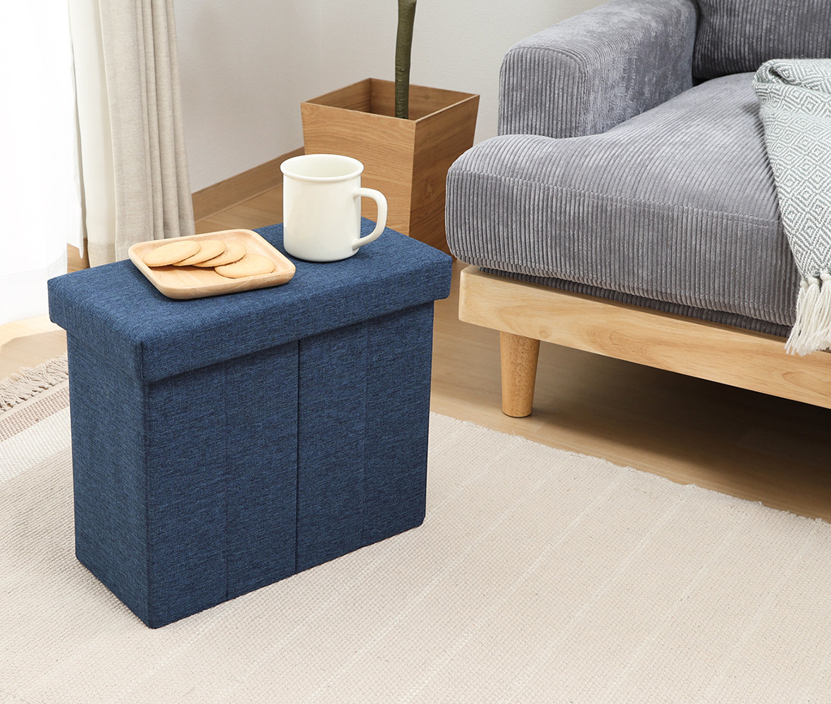 1台あると暮らしがちょっと便利に!スツールとしても、テーブルとしても使える #収納付きスツール。座面を外せばブランケットや小物類がしまえる収納スペース◎スリム設計だから、ソファ横やベッドサイドにも置きやすい♪
