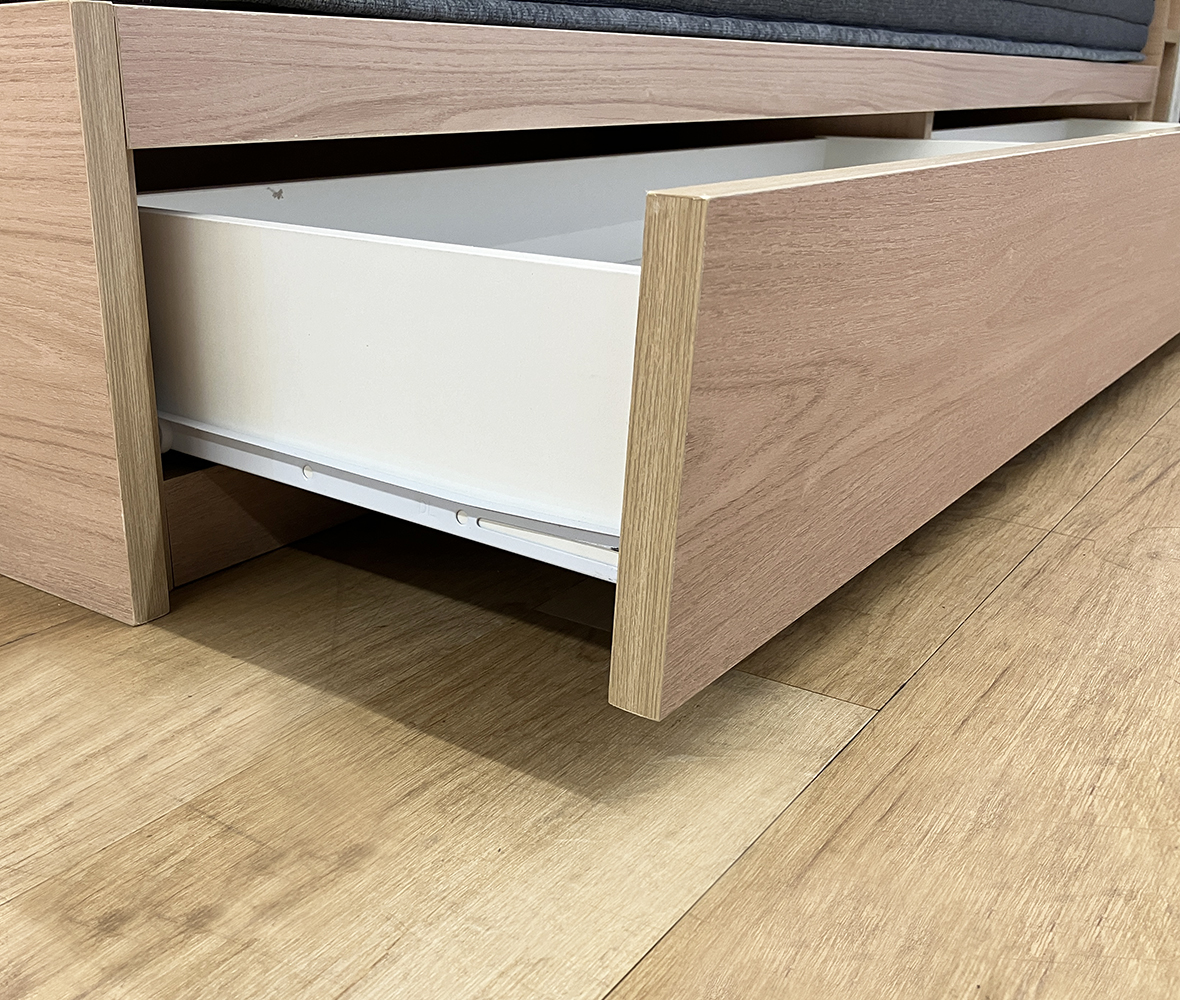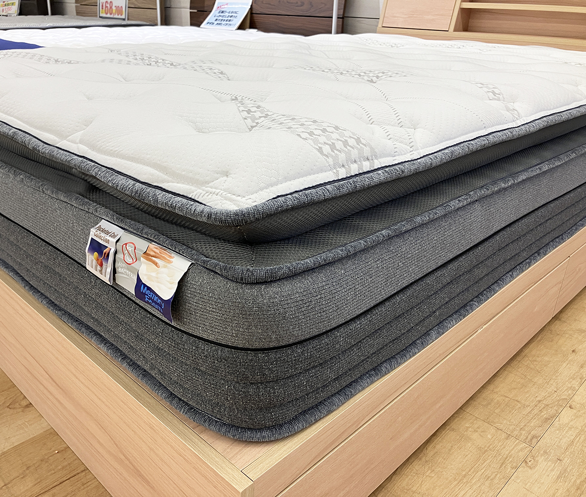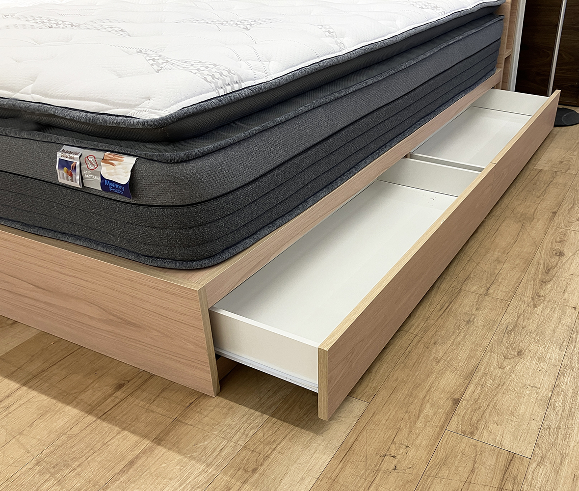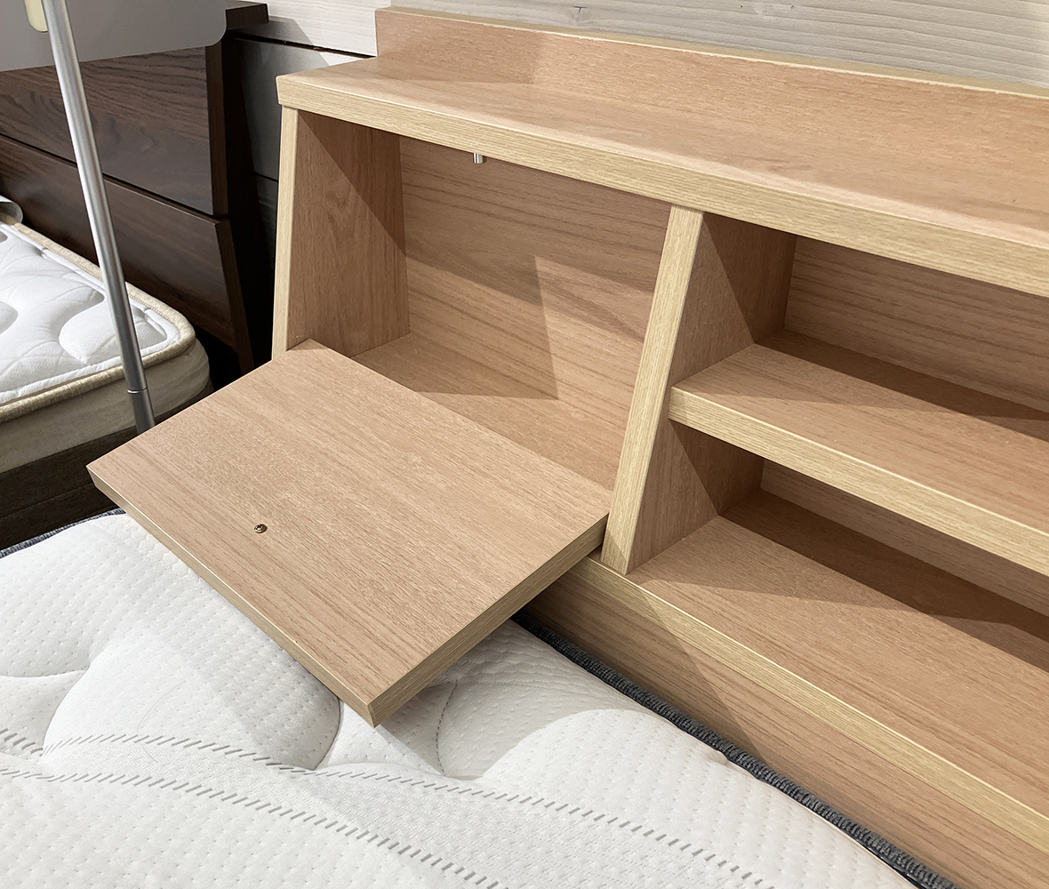 引き出し収納付きで、お部屋もスッキリ!今日持って帰れる #セミダブルベッドセット。ヘッドボードにはコンセント+照明付き。スマホ充電も可能。マットレスは、低反発のやさしさと、ポケットコイルの安定感◎