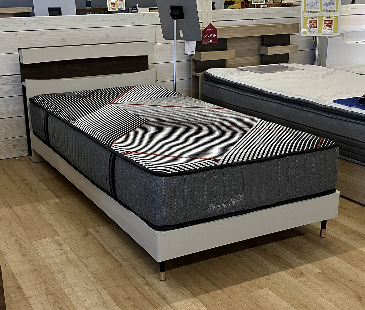 那覇店限定!シンプルデザインに、使いやすさをプラスした #シングルベッドセット。ヘッドボードには2段の小棚に2口コンセント付きだから、寝ながら充電も◎マットレスは、しっかり支える寝心地で、毎日の眠りを快適にサポートしてくれます。