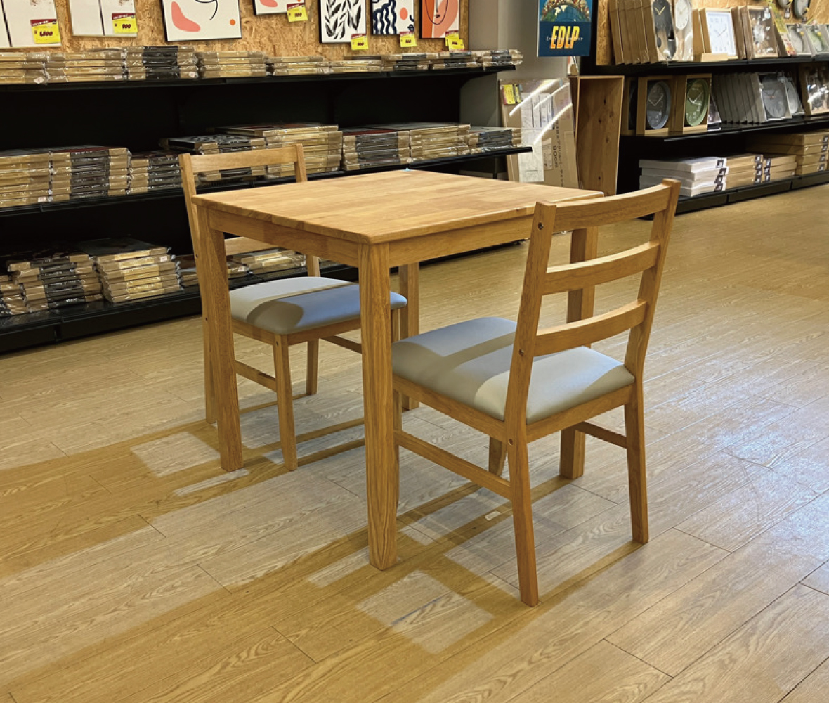 ラバーウッドの天然木を使用したぬくもりのある食卓3点セット!一人暮らしを始める方におすすめのお部屋に圧迫感を与えないコンパクトサイズ♪当日持ち帰り可能なうれしい梱包サイズも魅力!