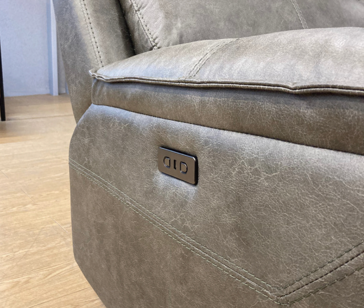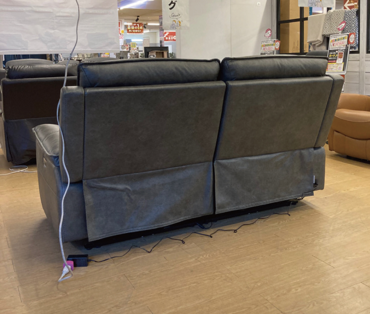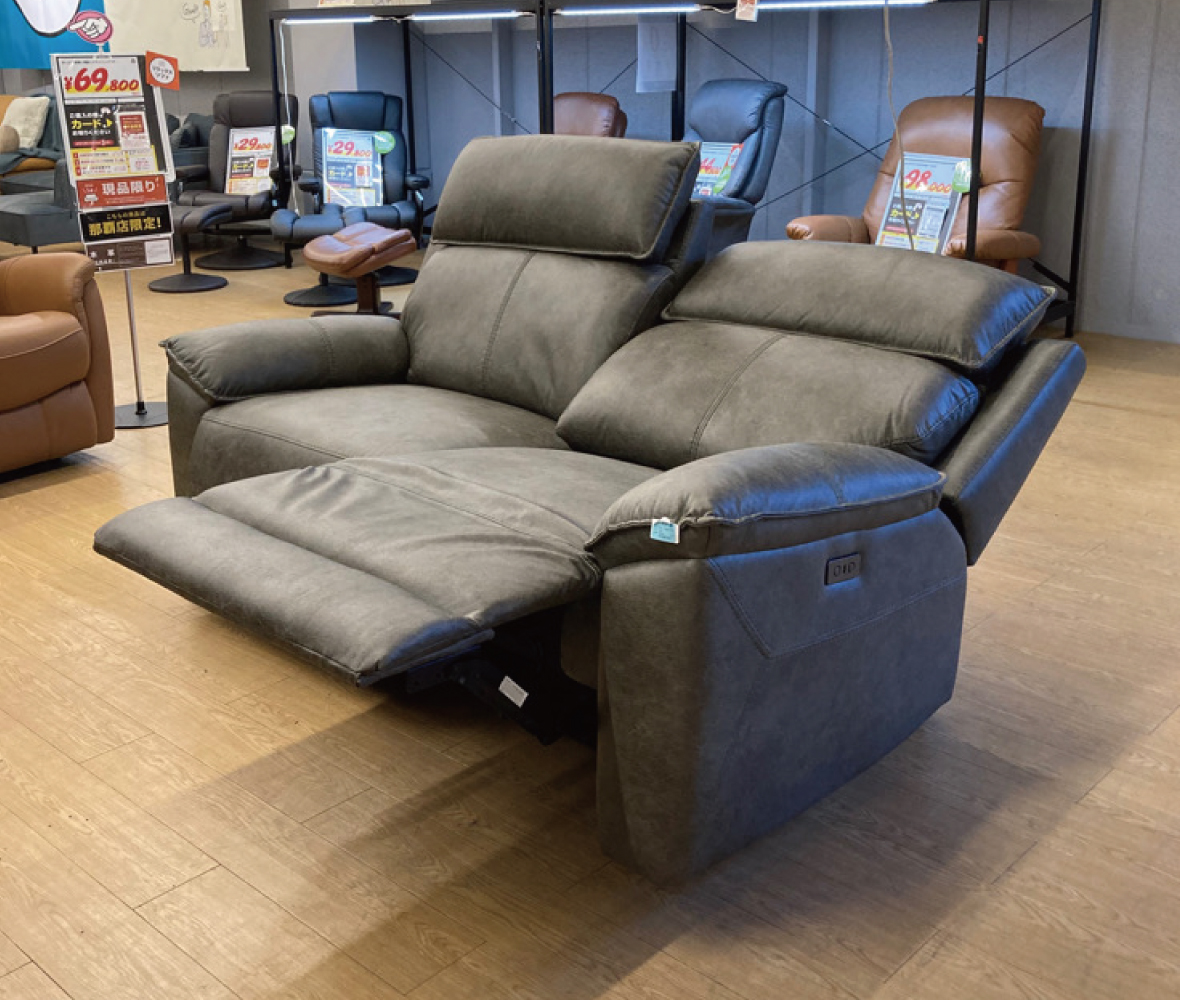 キズ・汚れに強いファブリックレザー仕様の電動ソファ!柔らかい座り心地と肌触りで、リラックス♪2人掛けなのでコンパクトで置き場に困らない!