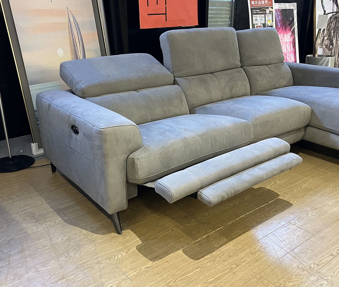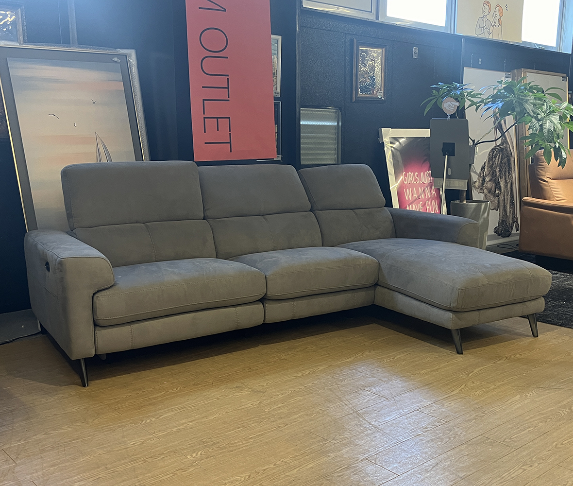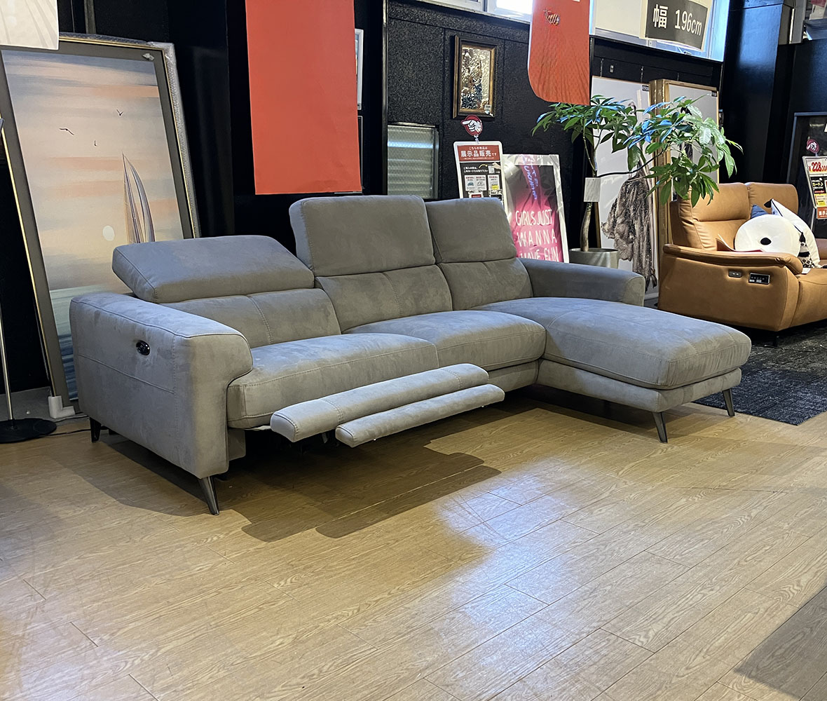 <#プレミアム1点限り>重厚感漂う #電動カウチソファ。角度調整可能なヘッドレストと右側の電動リクライニングで、ゆったりリラックス♪幅256cmの贅沢設計が上質なくつろぎを演出します。