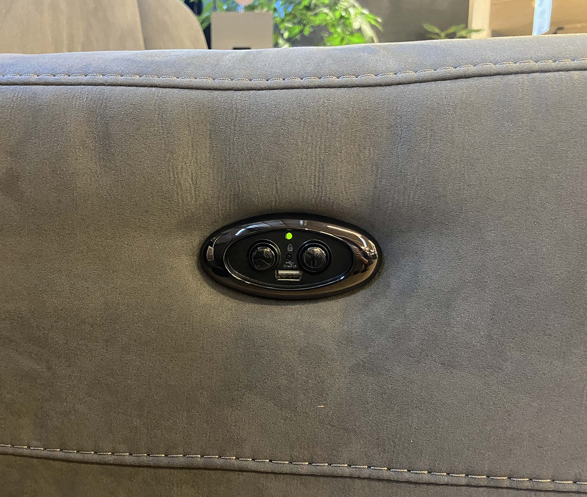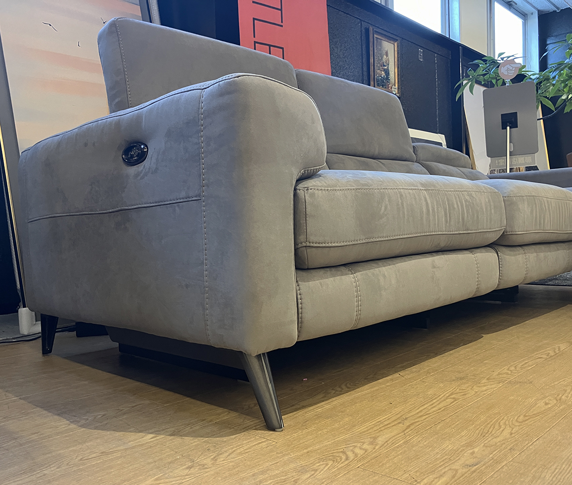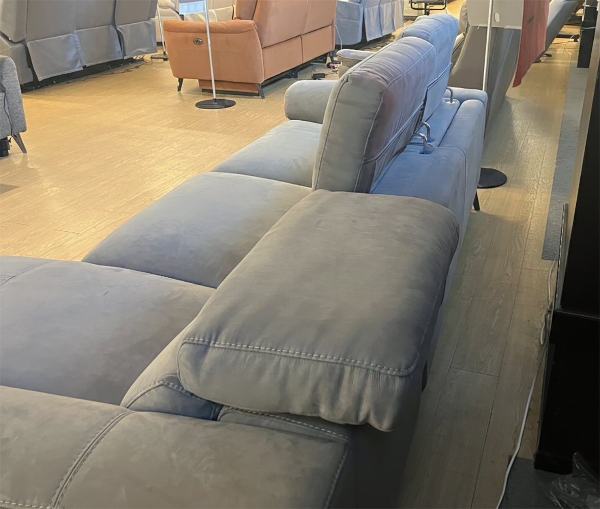 <#プレミアム1点限り>重厚感漂う #電動カウチソファ。角度調整可能なヘッドレストと右側の電動リクライニングで、ゆったりリラックス♪幅256cmの贅沢設計が上質なくつろぎを演出します。