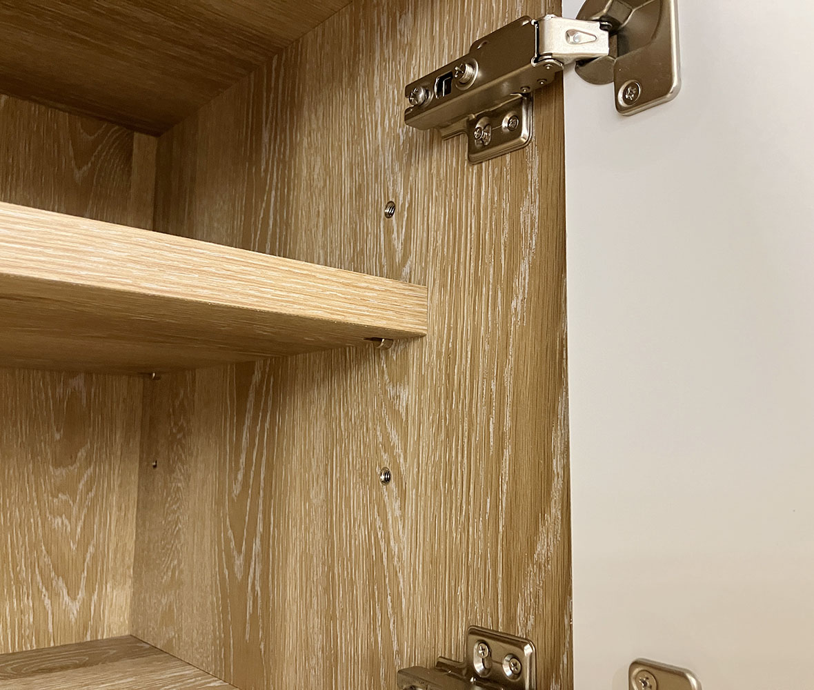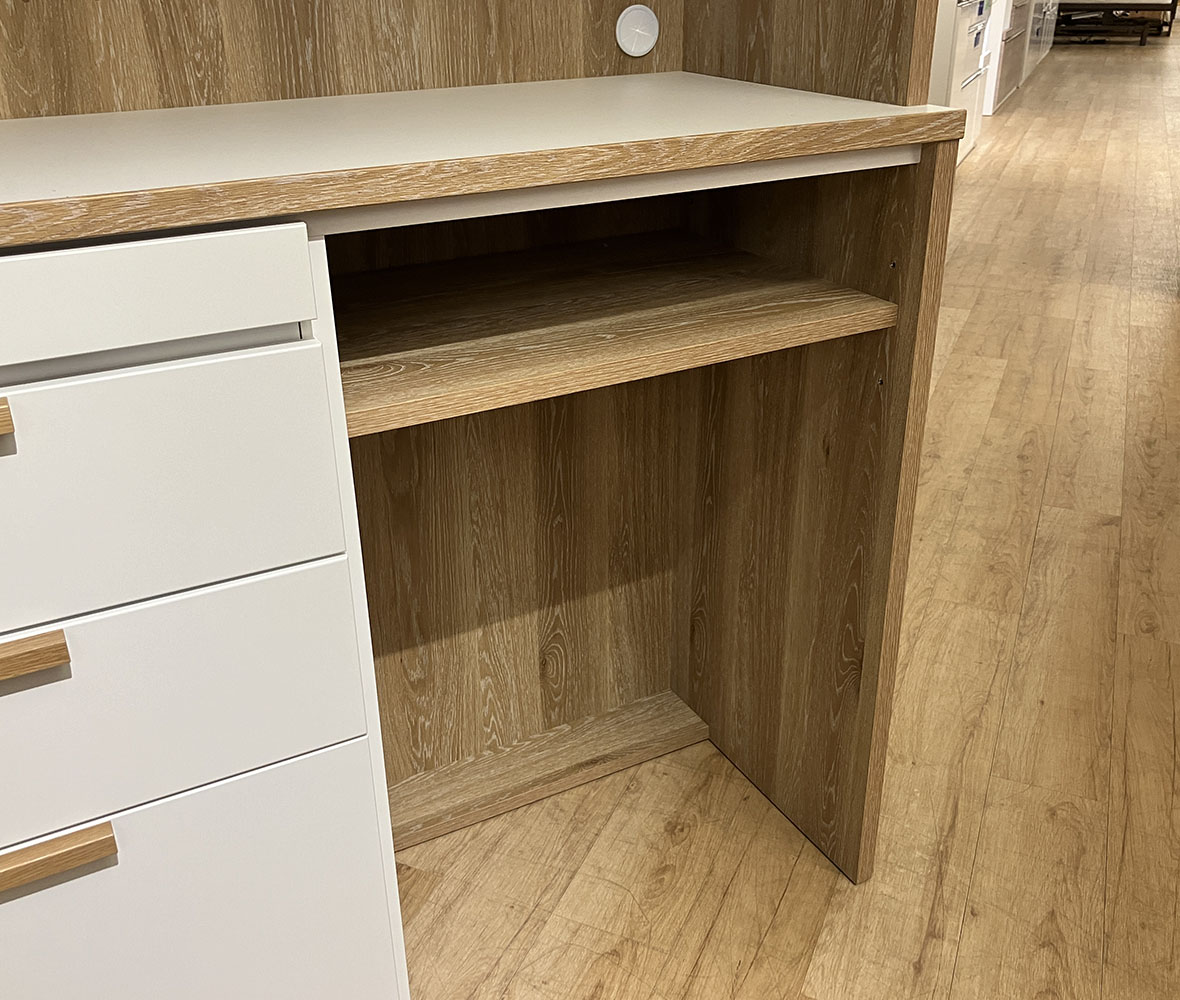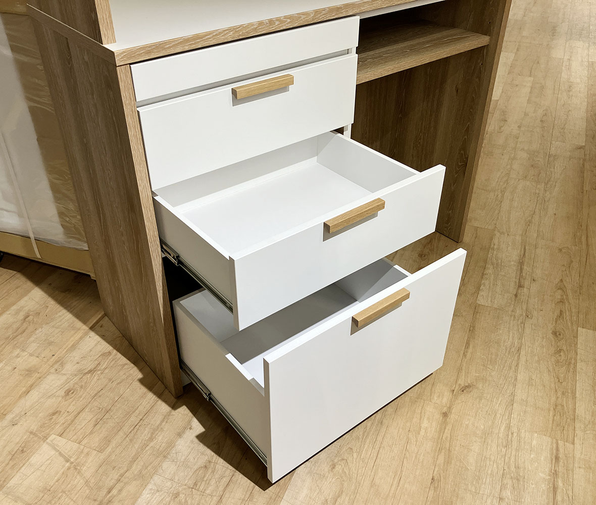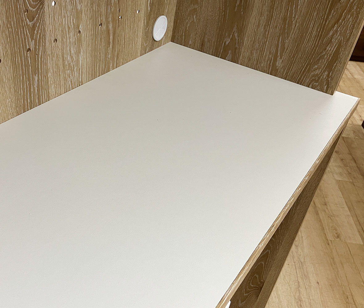 ツートンカラーが特徴のおしゃれな国産 #ダイニングボード。オープンスペースには有孔ボードを採用し、自由にアレンジOK!さらにスライドテーブル付きで、炊飯器や家電の作業スペースとしても便利◎