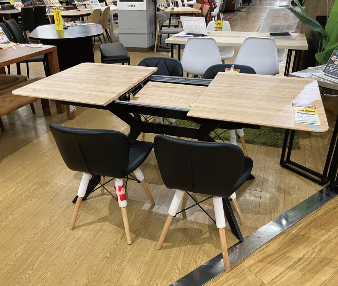 期間限定で値下中!120~160cmに伸びるテーブルが便利な食卓セット!万が一のガタつきも安心のアジャスター付き!合皮座面で汚れにも強い◎