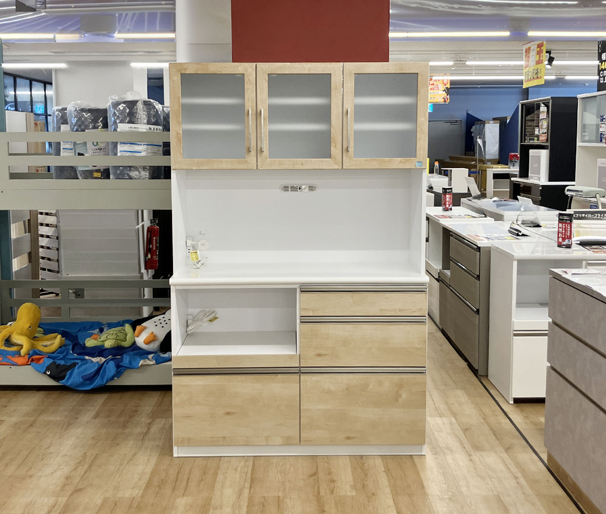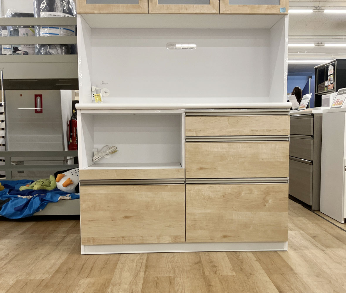 毎日のキッチンをもっと快適にしてくれる、日本製の #ダイニングボード。耐震ラッチ付きで安心して使え、オープン部にはモイス加工を施しているので、スチーム家電の蒸気にも対応◎フルオープンレールの引出しや可動棚も備え、収納力と使いやすさを兼ね備えた頼れる一台です。