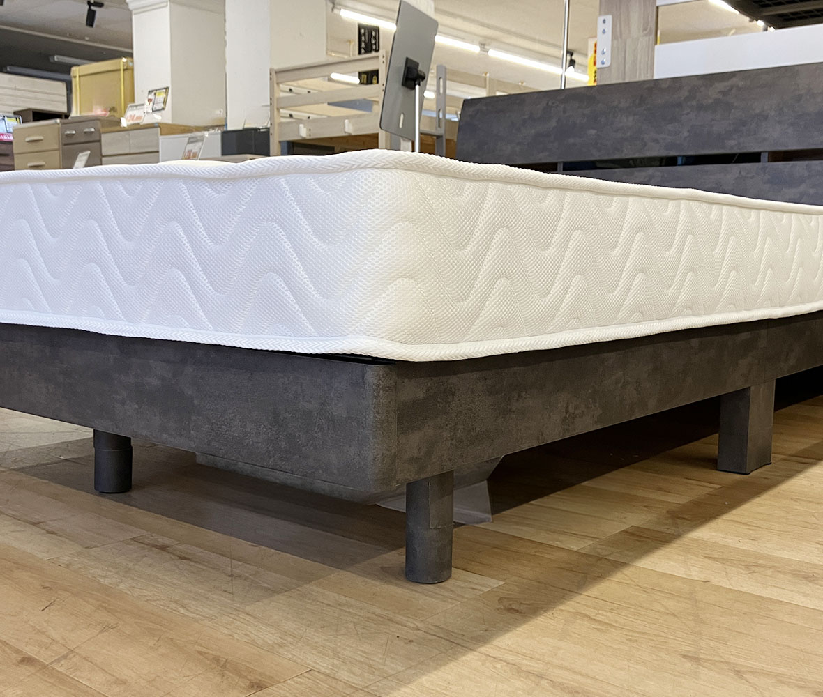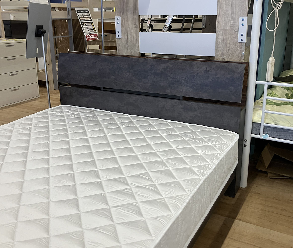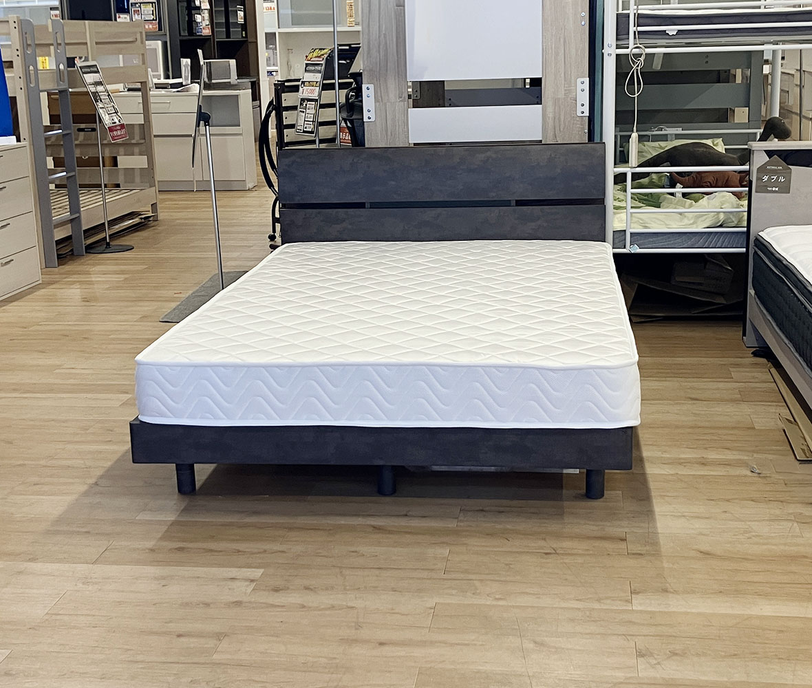 ナチュラルモダンな雰囲気で寝室をオシャレに演出◎落ち着いたグレーカラーと木目の組み合わせがカッコイイ #ダブルベッドセット。2口コンセント付きで充電も便利◎圧縮ポケットコイルマットレスで、持ち帰りやすく快適な寝心地です。
