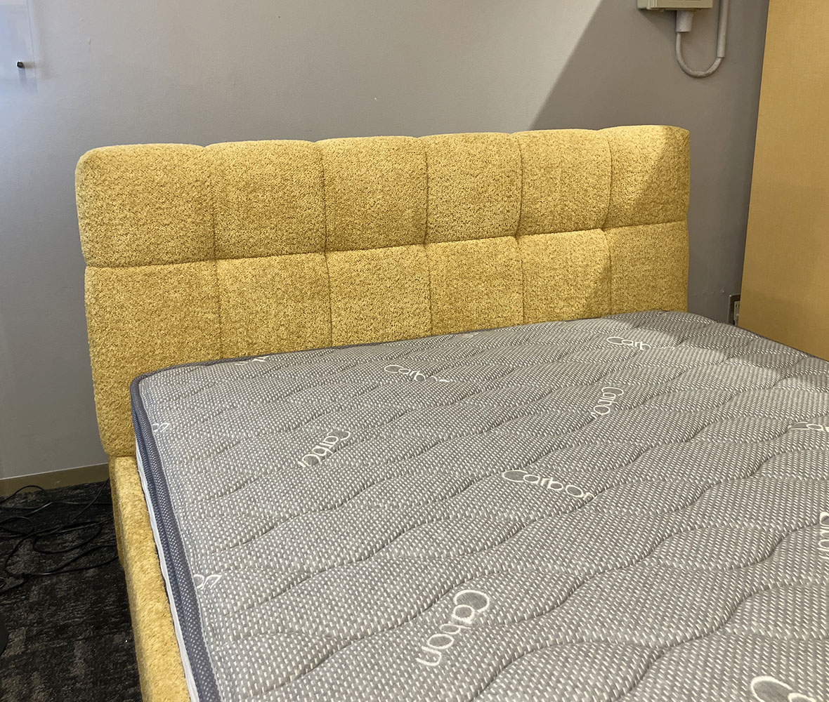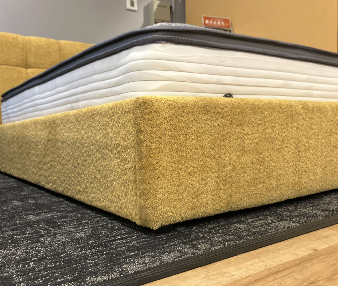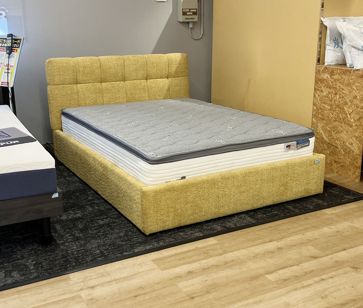 存在感のあるマスタードカラーが可愛い #ダブルベッドセット。お部屋のアクセントになるデザインで、一気におしゃれな空間に◎マットレスは、竹炭素材で消臭・抗菌機能付&全身をバランスよく包む安定感のある寝心地です。