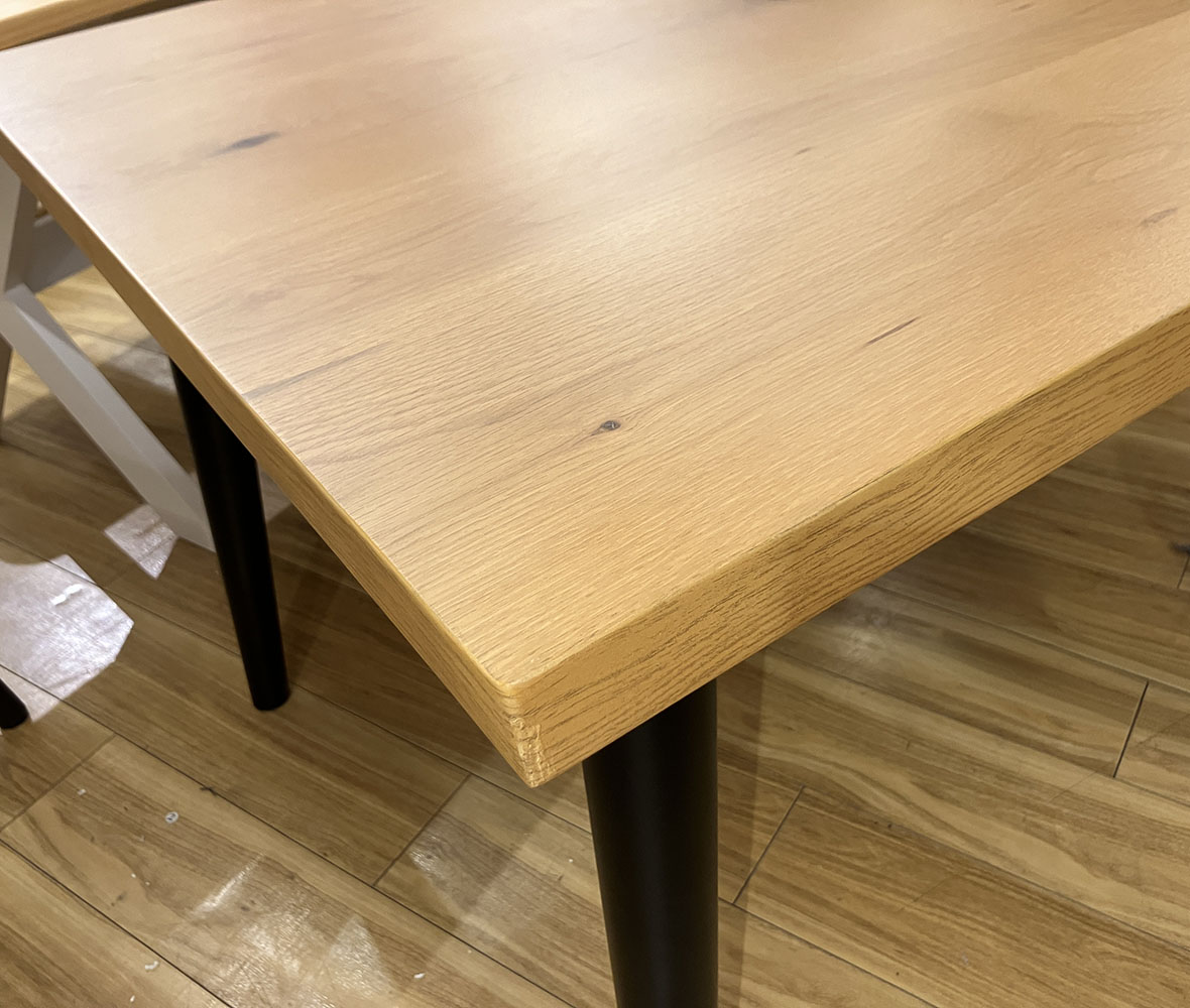 美しい木目の天板と、ブラック脚の組み合わせがGOOD!シンプルな #ダイニングテーブル。どんなお部屋にもなじみやすく、食卓はもちろん作業スペースにもおすすめ◎