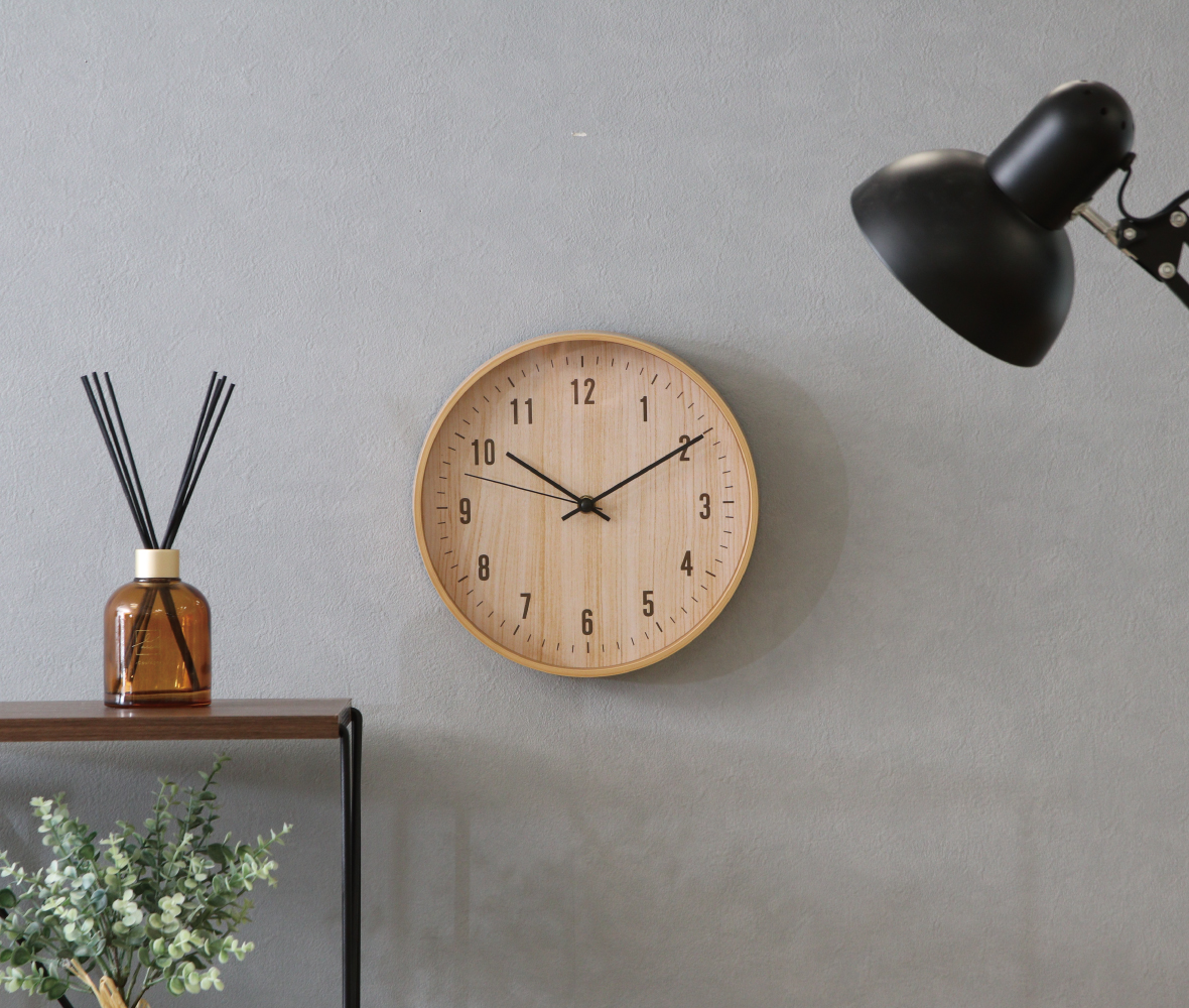 ナチュラルな木目調がお洒落な#壁掛け時計!落ち着いたデザインでどんなお部屋にも馴染みます。リビングや寝室などにぴったり!
