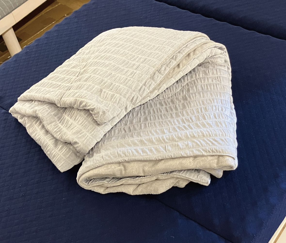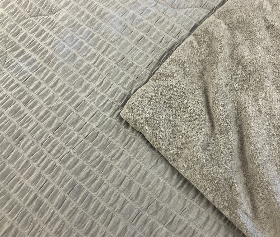 冷感くしゅくしゅリバーシブル#ブランケット!パイル面とくしゅっと面ベタつかずさらさら爽やかな触り心地!その日の気温や気分によって選べる!ひんやり素材で省エネにも◎