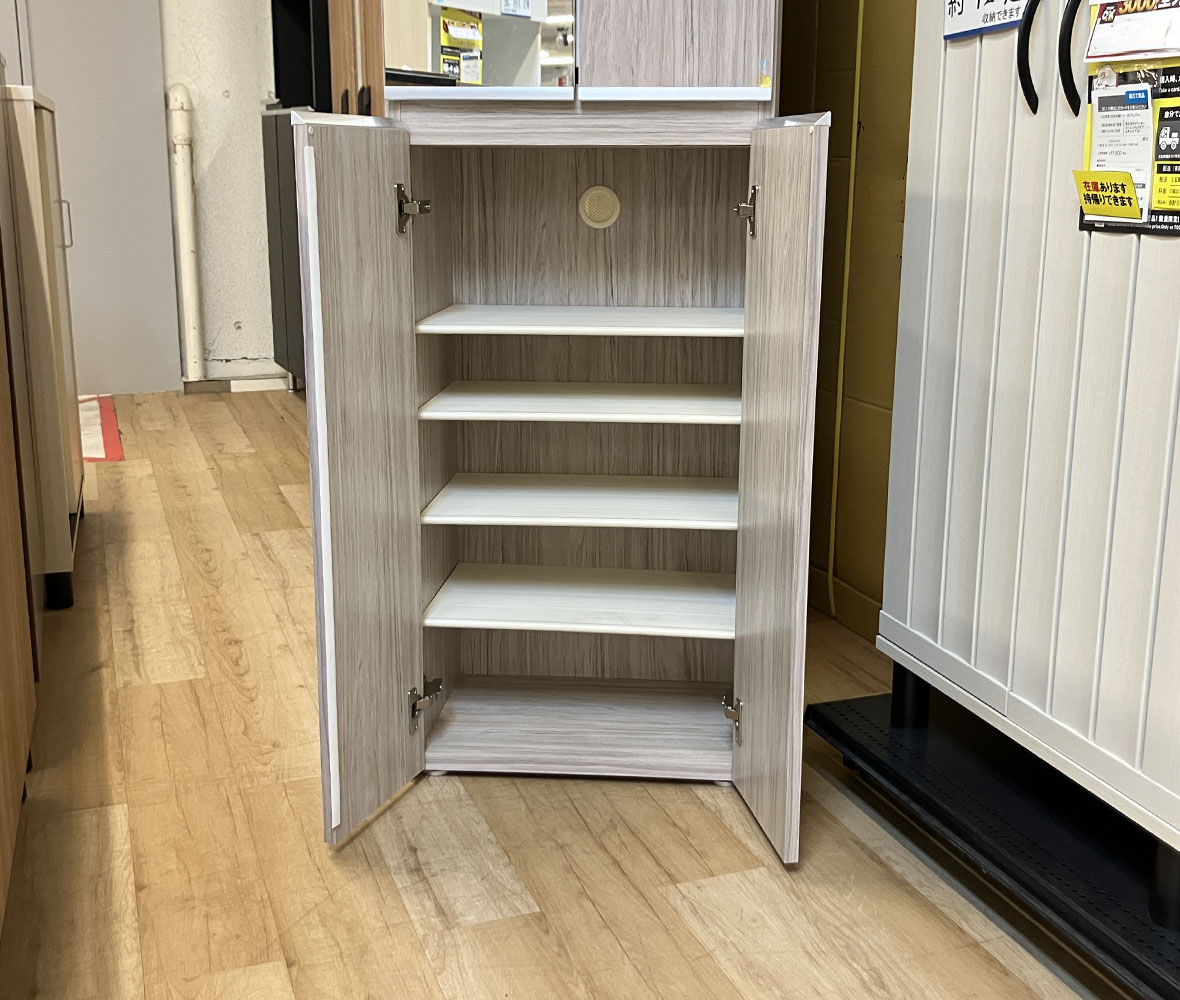玄関のスペースを有効活用できる、ハイタイプの #シューズボックス。高さを活かした設計に加え、ミラーを備えた実用的なつくりがGOOD!湿気や臭いがこもりにくい空気孔に、収納するものに合わせて高さ調節ができる棚板で使い勝手も◎