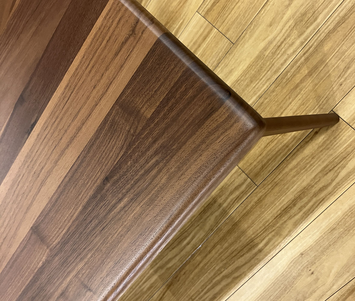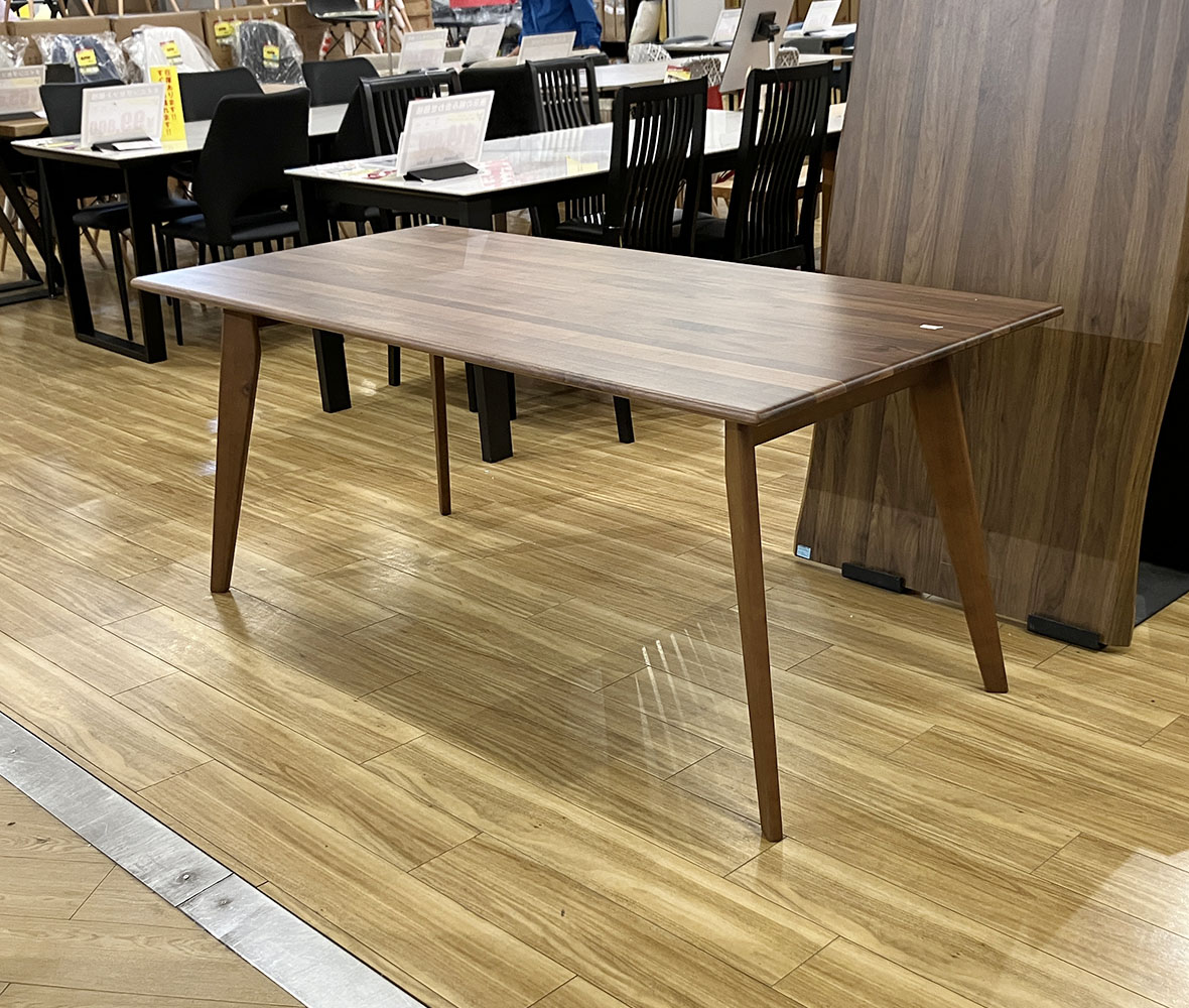 落ち着いた木目とすっきりしたフォルムが魅力の #ダイニングテーブル。細身の脚で空間を広く見せつつ、上品な雰囲気を演出します。天板に小さなキズありですが、日常使いには問題なくお使いいただけます。