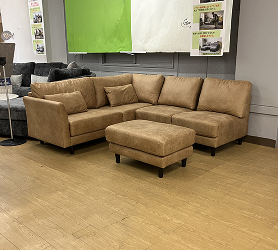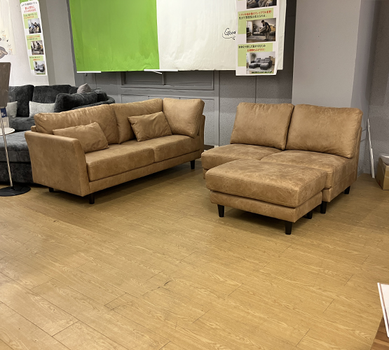 レイアウト自由で模様替えも簡単◎ゆったりくつろげる、組み替え自由な #カウチソファ。温かみのあるヴィンテージ調レザーファブリック使用◎座り心地もやわらかすぎず、しっかり支えるバランス設計です。