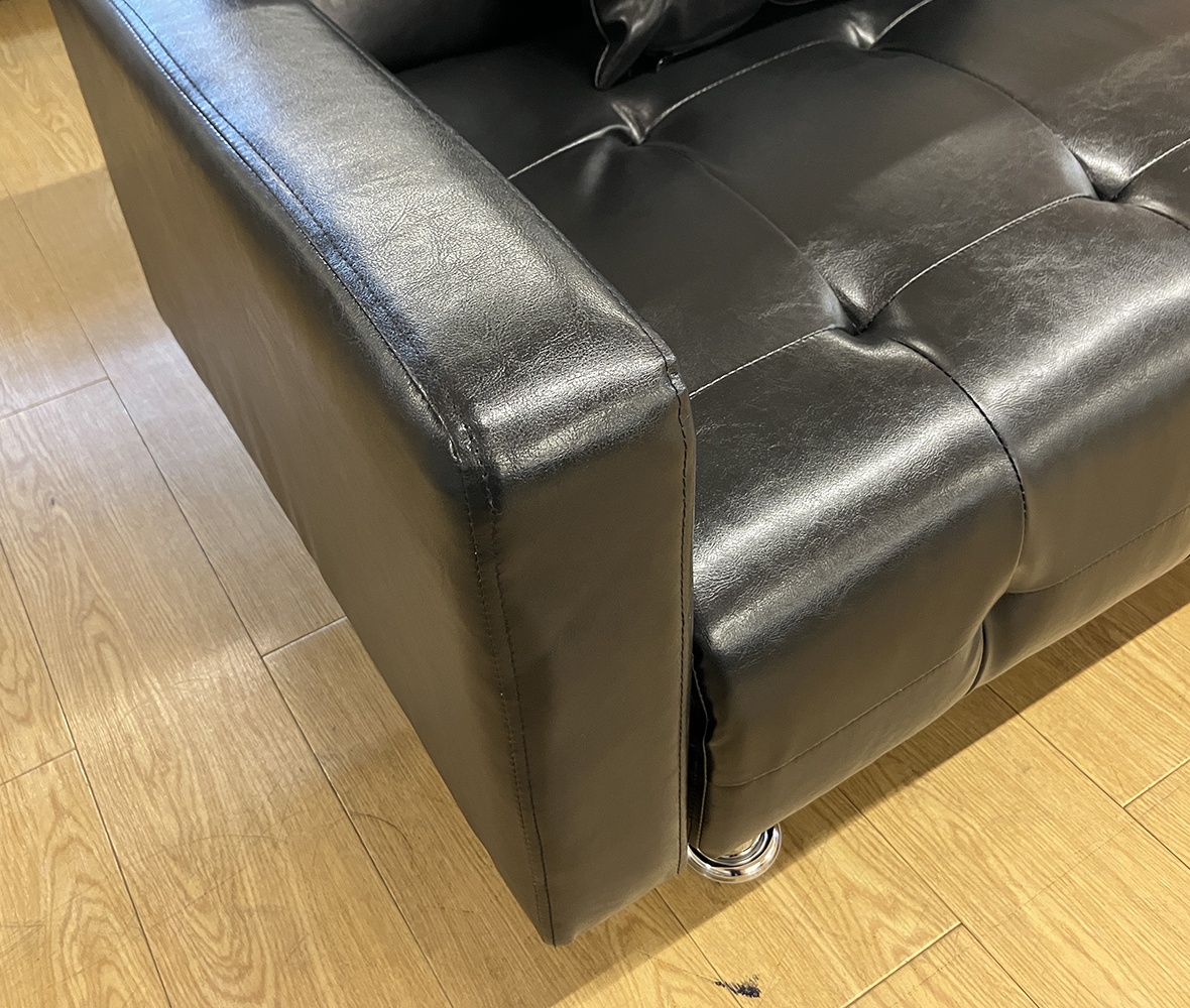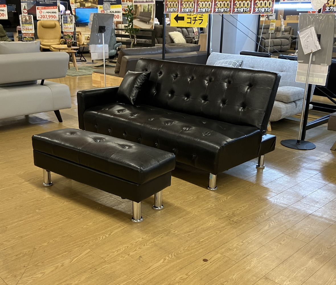 収納付きスツール&クッション付き!ブラック×シルバーの組み合わせがGOODな #モダンソファベッド。背もたれを倒せばベッドとしても使え、日常使いからくつろぎ時間まで幅広く活躍します。