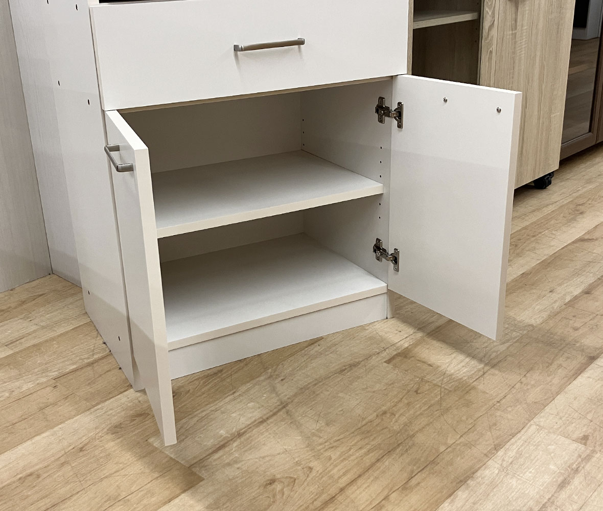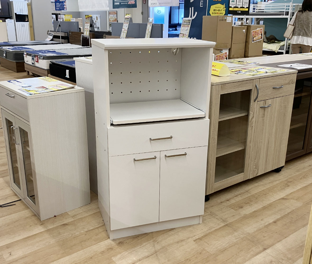 限られたスペースでも使いやすいサイズ感!一人暮らしやサブ収納にもピッタリ!シンプルで清潔感のあるホワイトカラーの #レンジ台。コンパクトながらスライド棚付きで、炊飯器や家電も使いやすい◎収納スペースもついているので、キッチン周りがスッキリです。