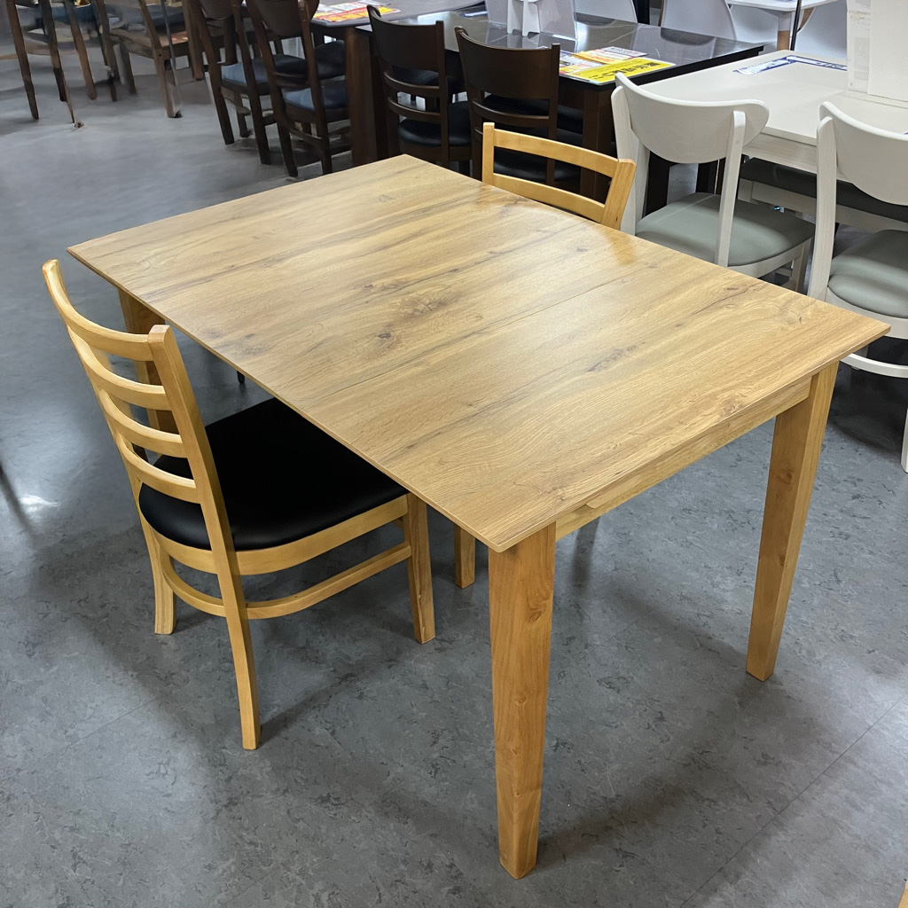 80cm~120cmまで天板を大きくできるダイニング3点セット!テーブルの片方を伸長できる◎コンパクトサイズだと80cmの天板で1人暮らしにはぴったり!
