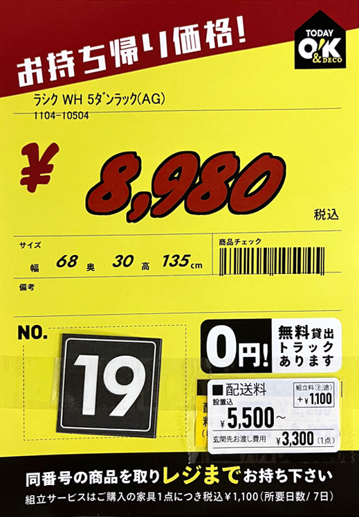 セルフサービス化を進めることで店舗のコストを掛けない代わりに、商品の最低価格を目指しています。もちろん、配送サービスや組み立て代行、知識豊富なスタッフも常駐していますので、お困りの際はお気軽にお声がけください。