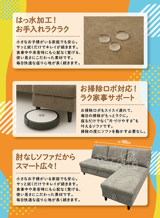 毎日の片づけをもっとカンタンに。片づけるストレスをゼロに。しまった瞬間、気分があがる収納ソファ。